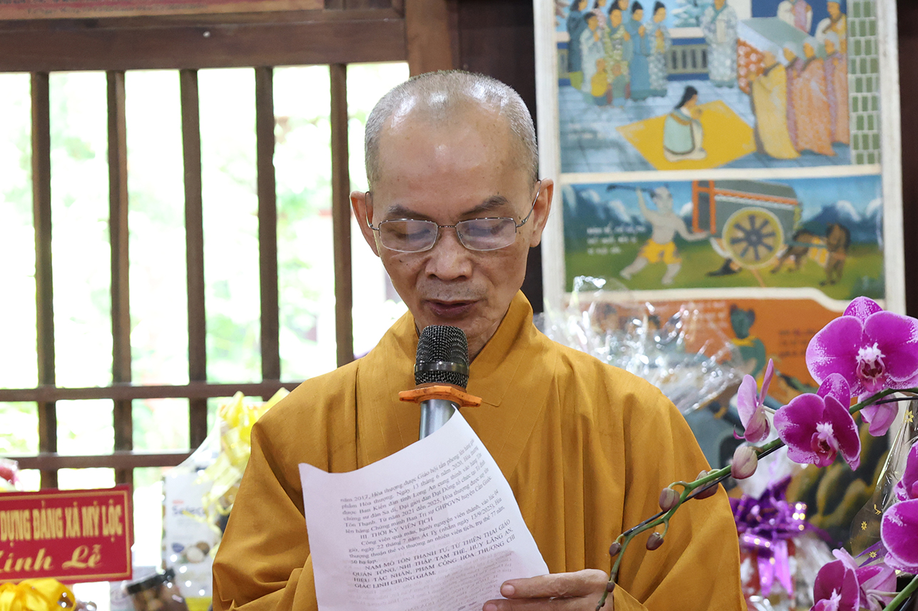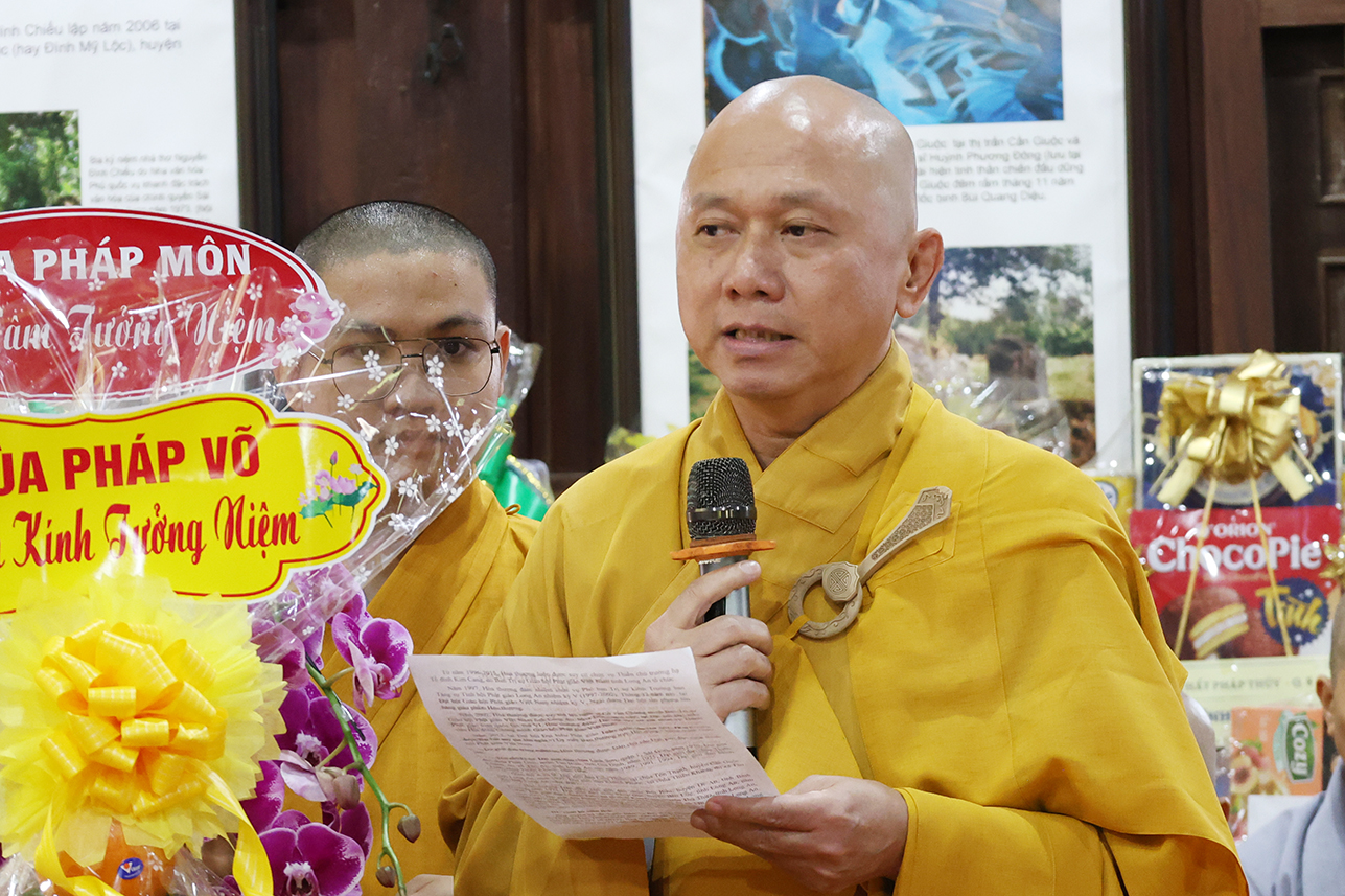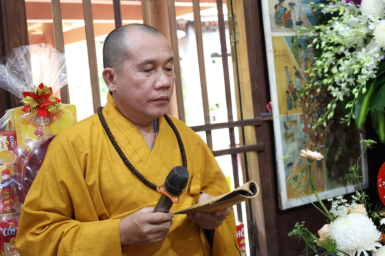 Tại lễ tưởng niệm, TT. Thích Tắc Bạch- Chánh thư ký Ban Điều hành Thiên Thai Giáo Quán tông, thành kính cung tuyên Tiểu sử Trưởng lão Hòa thượng thượng Đạt hạ Đồng.