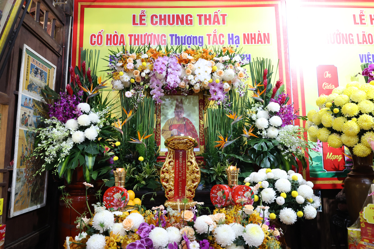 Theo chương trình đã định, sau các phần nghi lễ tụng kinh, cúng ngọ, cung tiến Giác linh, TT. Thích Tắc Hòa đại lao pháp quyến, dâng lời bạch thỉnh chư Tôn đức Tăng Ni thân lâm Giác linh đường chứng dự Lễ Tưởng niệm Trưởng lão Hòa thượng và thắp hương tưởng niệm Tuần chung thất của HT. Thích Tắc Nhàn.