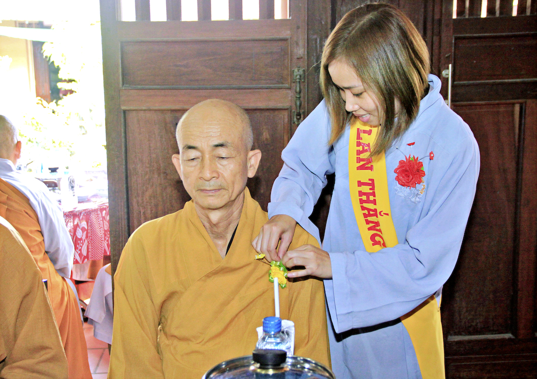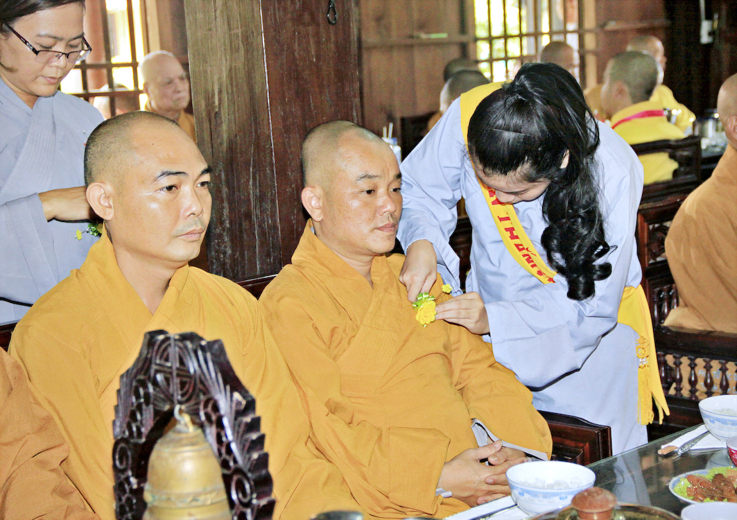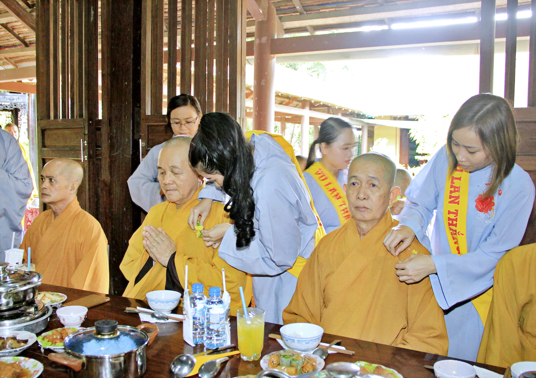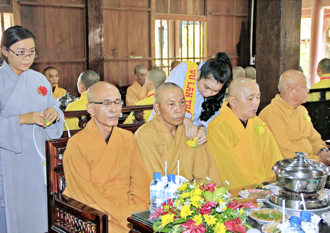 Sau các phần nghi thức Phóng sanh, tụng kinh Vu Lan, Cúng ngọ, Tiến linh, hồi hướng phước lành đến các tín chủ và Phật tử tại đạo tràng, Ban tổ chức cung thỉnh chư Tôn đức Giáo phẩm tỉnh Long An, chư Tôn đức Thường trực Ban Trị sự Phật giáo huyện Cần Giuộc, chư Tăng Ni trụ trì các cơ sở tự viện thân lâm trai đường chứng dự nghi thức Cài hoa hồng, cảm niệm Vu Lan.