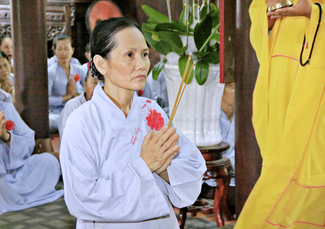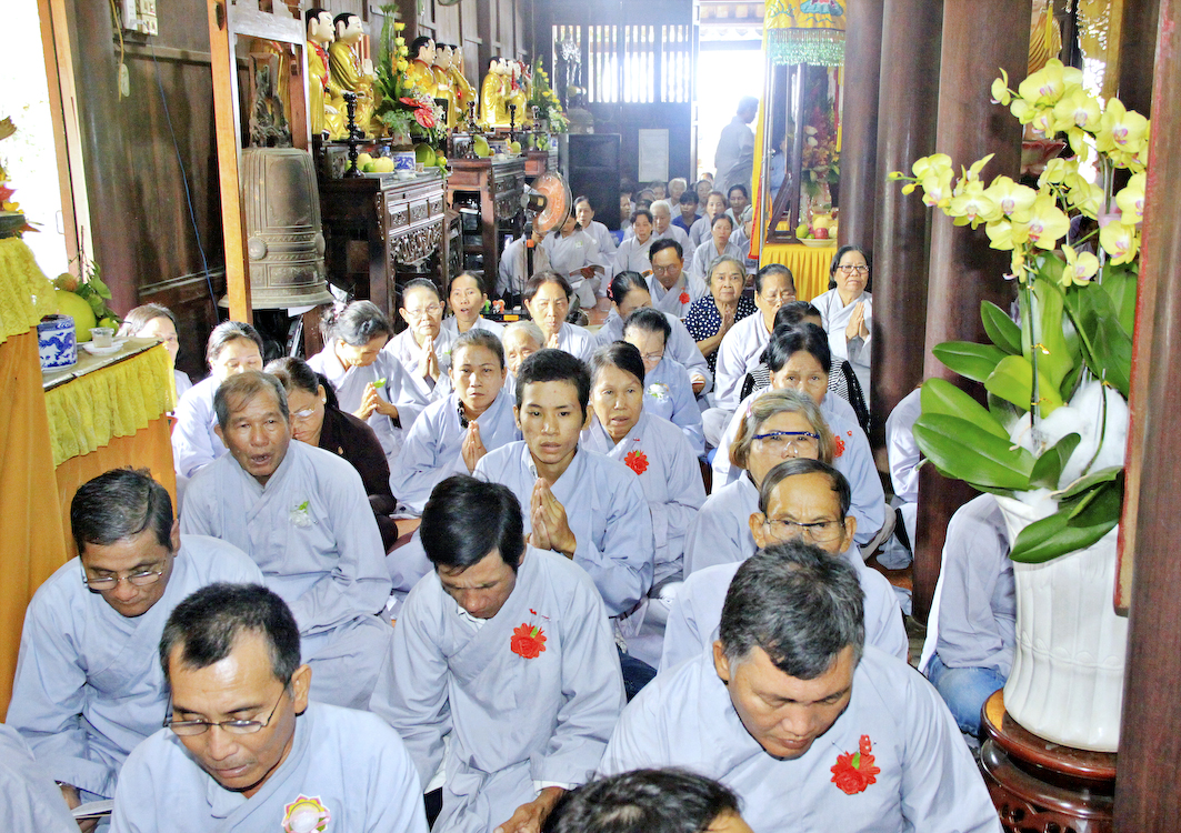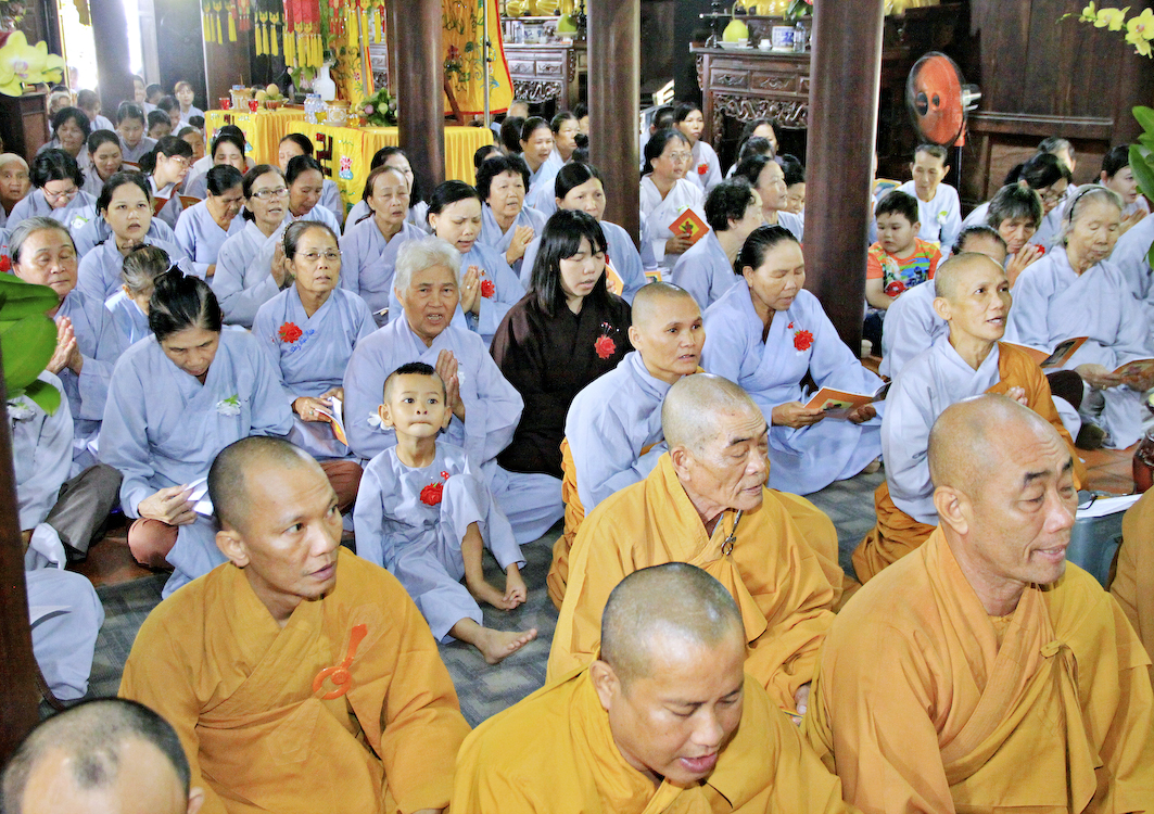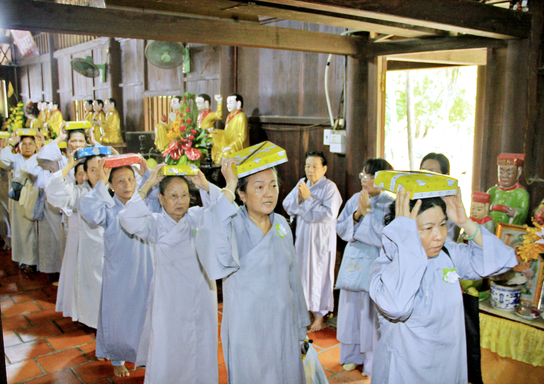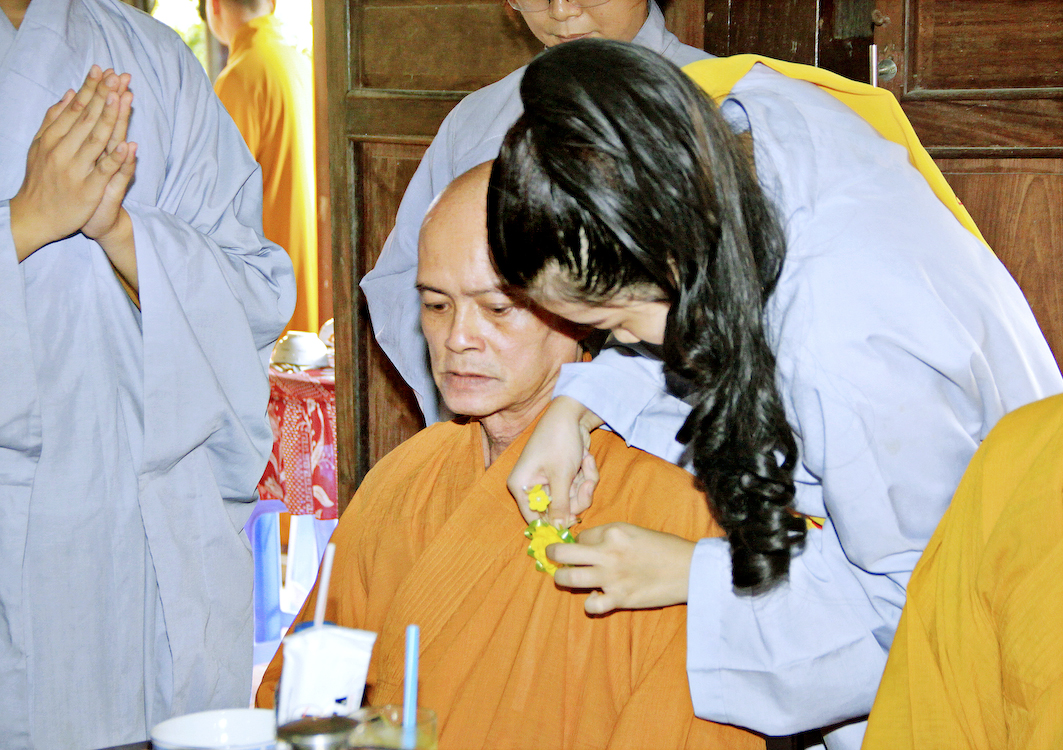 Sau các phần nghi thức Phóng sanh, tụng kinh Vu Lan, Cúng ngọ, Tiến linh, hồi hướng phước lành đến các tín chủ và Phật tử tại đạo tràng, Ban tổ chức cung thỉnh chư Tôn đức Giáo phẩm tỉnh Long An, chư Tôn đức Thường trực Ban Trị sự Phật giáo huyện Cần Giuộc, chư Tăng Ni trụ trì các cơ sở tự viện thân lâm trai đường chứng dự nghi thức Cài hoa hồng, cảm niệm Vu Lan.