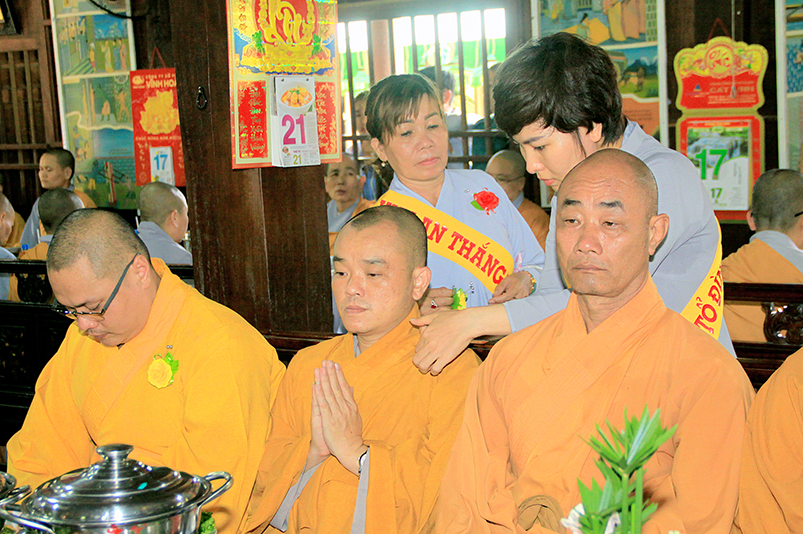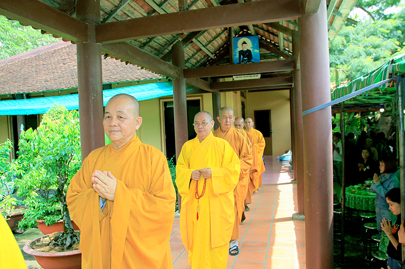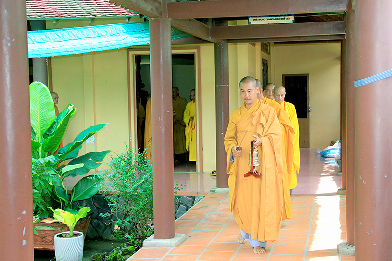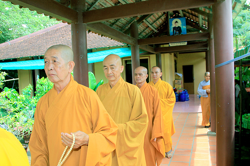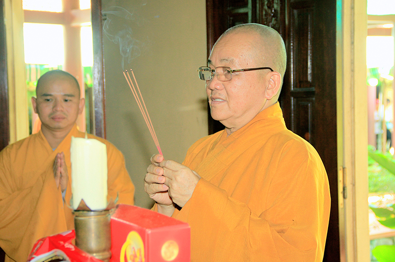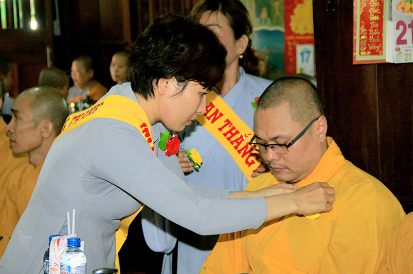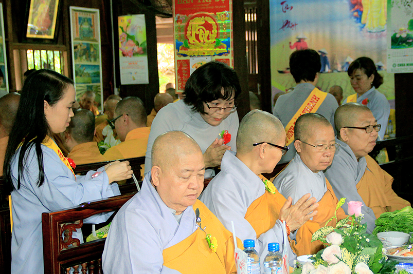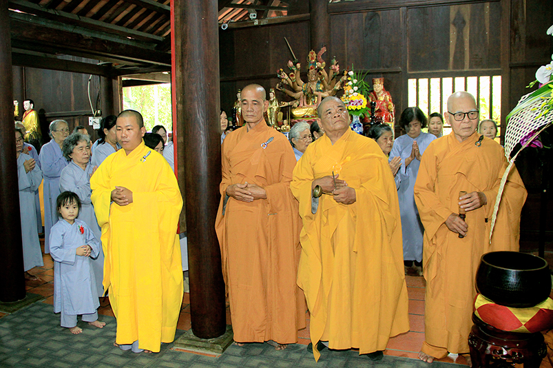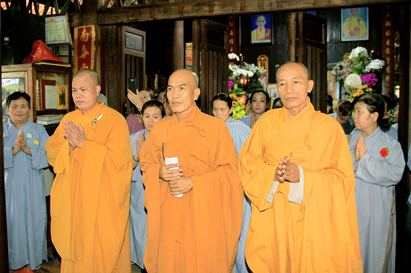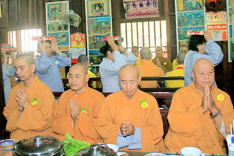 Sau phần nghi thức, chư Tăng tác bạch cung nghinh chư Tôn đức giáo phẩm: Hòa thượng Thích Minh Thiện – UV HĐ TS, Phó Trưởng ban Hoằng pháp TW, Trưởng ban Trị sự GHPGVN tỉnh Long An; Hòa thượng Thích Thiện Tài – Trưởng Ban Nghi lễ Phật giáo tỉnh Long An, v.v.; Hòa thượng Thích Huệ Bạch – Trưởng ban Trị sự GHPGVN huyện Cần Giuộc v.v., cùng chư Tôn đức Tăng Ni Thường trực các Ban Trị sự huyện thị, chư Tôn đức Tăng Ni trụ trì các tự viện thân lâm trai đường, chứng minh buổi lễ.
