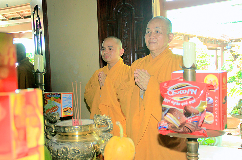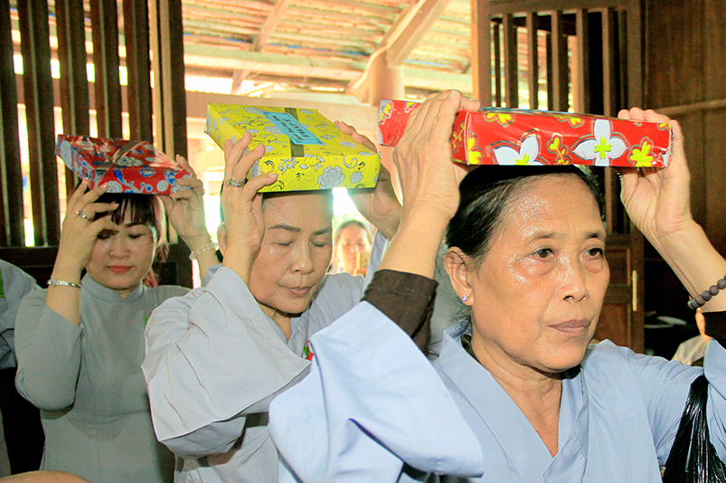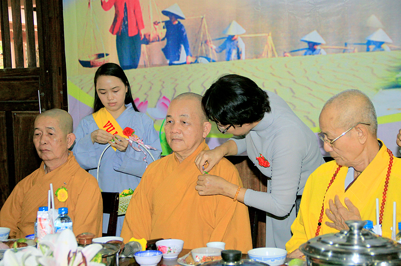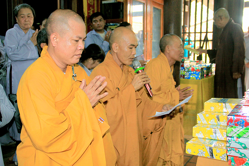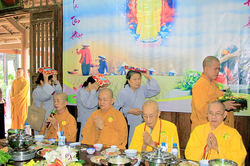 Buổi phát quà từ thiện diễn ra vào lúc 7g30 có sự chứng minh của HT. Thích Nhàn và sự hiện diện của lãnh đạo chính quyền địa phương xã Mỹ Lộc. Tiếp đó, các Phật tử tập trung về trước chánh điện cùng chư Tăng thực hiện nghi thức phóng sanh, và tham dự tụng kinh Báo hiếu Phụ Mẫu, thượng phan cúng ngọ do chư Tôn đức Ban kinh sư huyện Cần Giuộc đảm nhiệm.