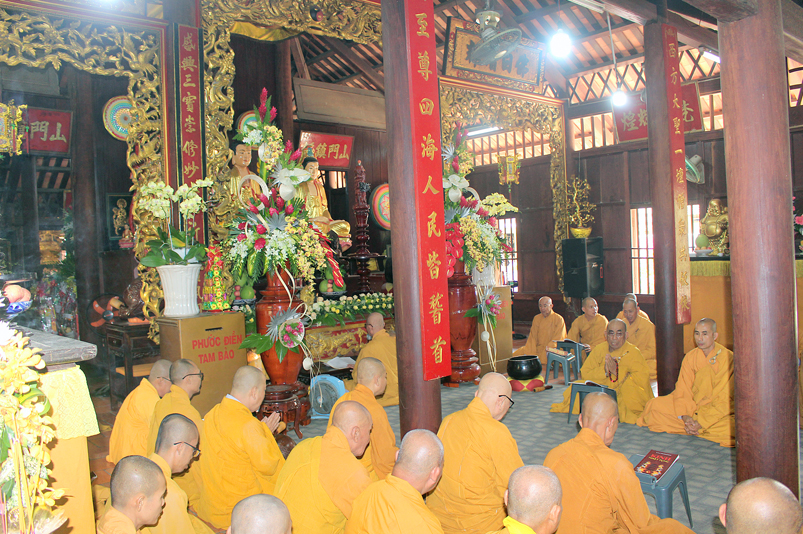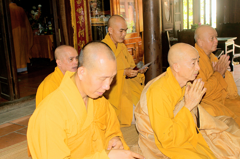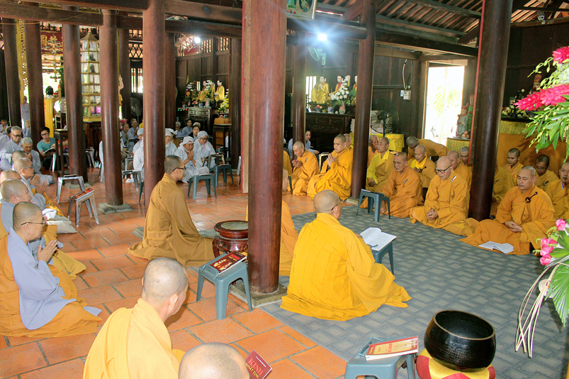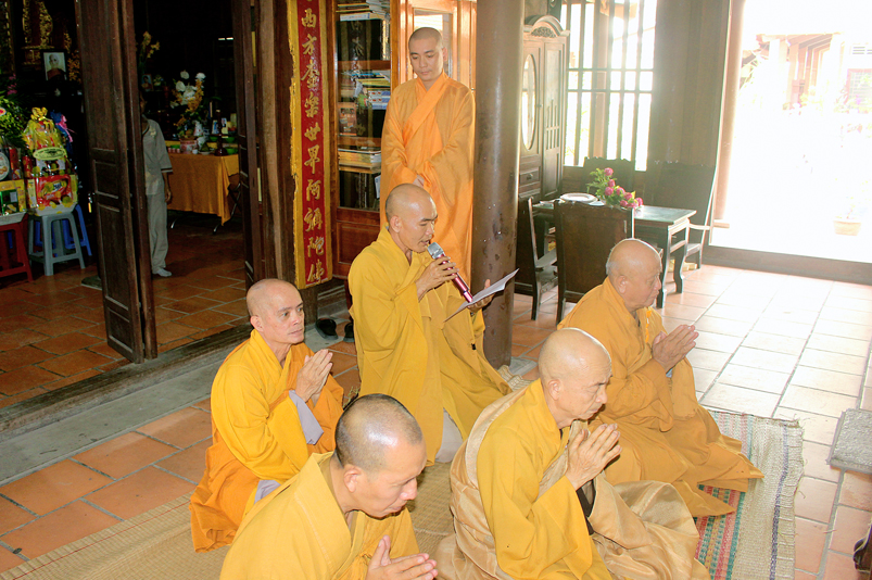 Vào lúc 8g30, khóa lễ tụng kinh kỳ nguyện được cử hành tại chánh điện do Hòa thượng Thích Chơn Đạo, Giáo thọ trường Trung Cấp Phật học Long An đương vi sám chủ. Tiếp theo, nghi thức Tiến Sư do HT. Thích Thiện Tài, Trưởng ban Nghi lễ GHPGVN tỉnh Long An đảm nhiệm.
