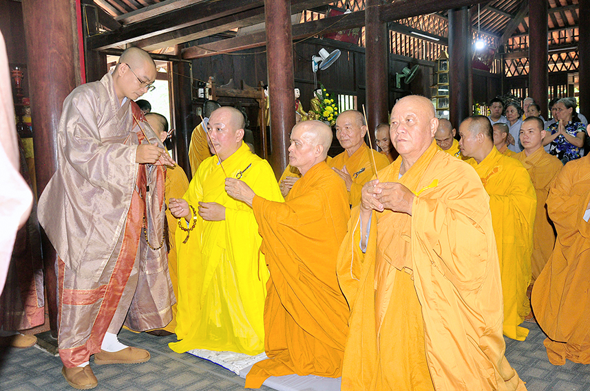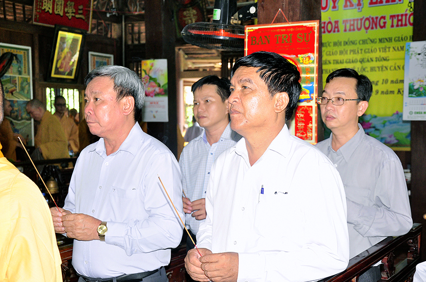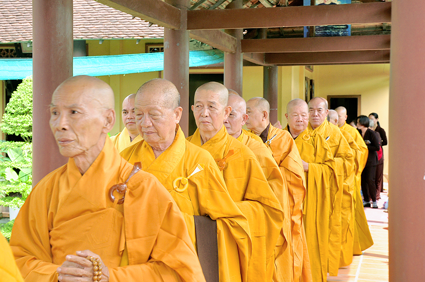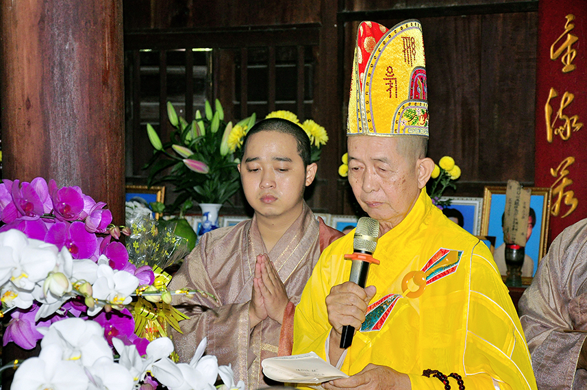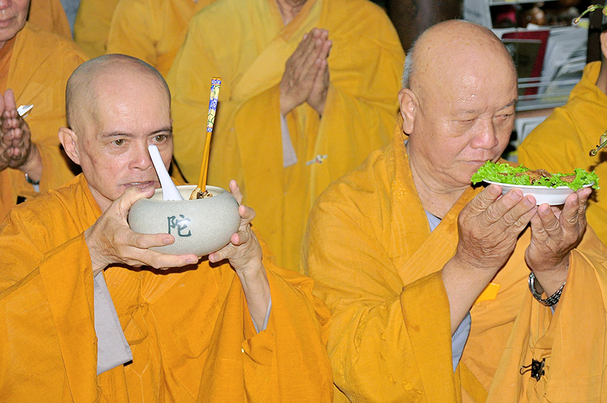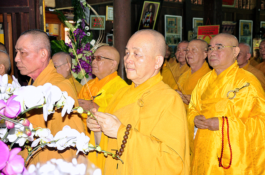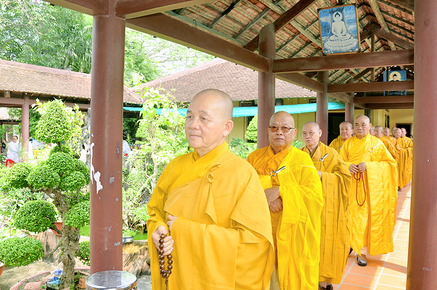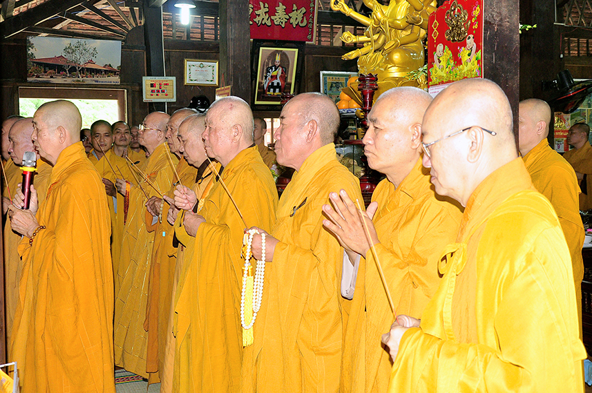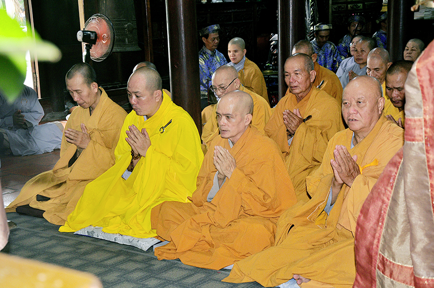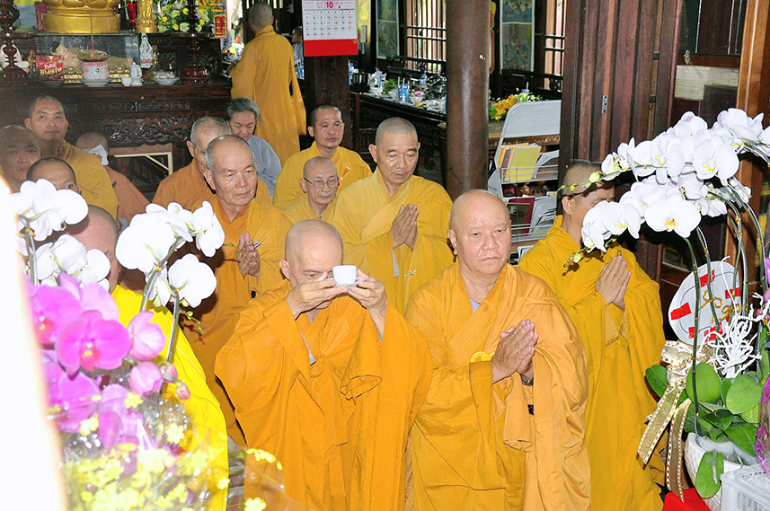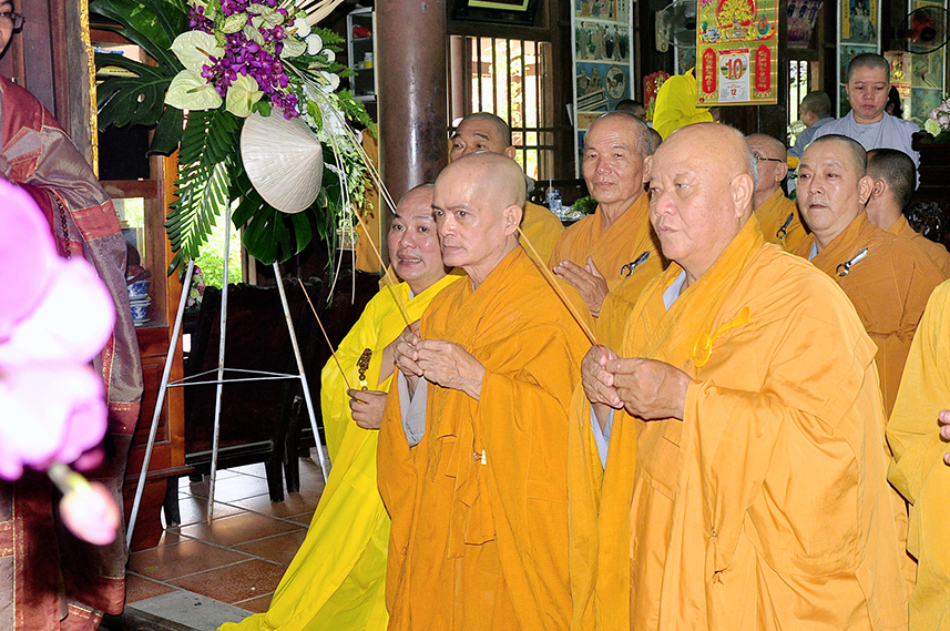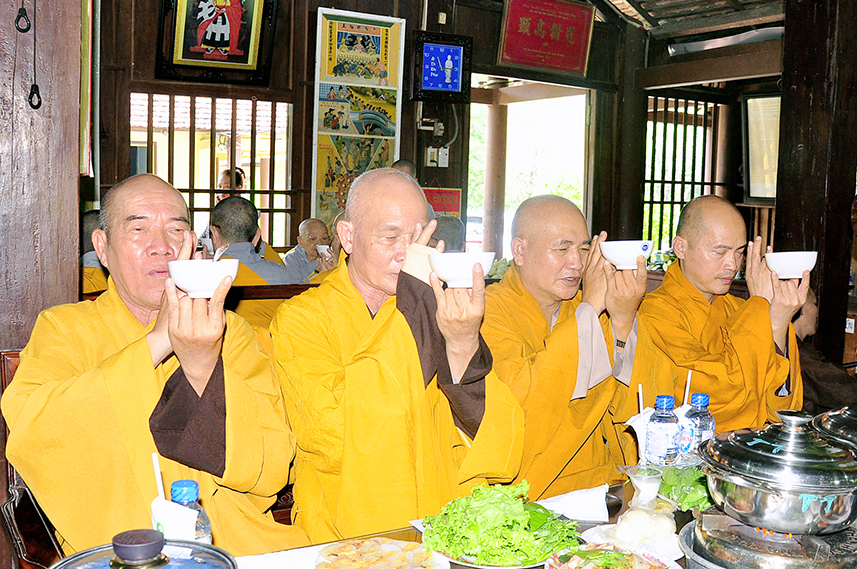 Tiếp theo là nghi thức trai đường, pháp sự chí thành, môn nhân phụng cúng. Đãi lao chư Tôn đức Tăng-già nhị bộ, Hòa thượng Thích Thiện Tài – Phó Ban Trị sự kiêm Trưởng Ban Nghi lễ Phật giáo tỉnh Long An chủ trì pháp lễ, khởi niệm cúng dường.