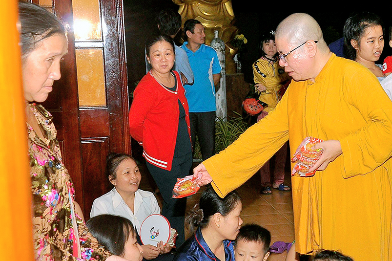 Phát biểu tại đêm hội, ĐĐ.Thích Huệ Quang nhắc đến truyền thống văn hóa của Dân tộc, cũng ôn lại lời dạy của Bác Hồ dành tình thương yêu cho các em thiếu nhi. Đây cũng là dịp để con cháu tỏ lòng hiếu kính với ông bà, bố mẹ của mình. Cũng chính vì thế Trung thu còn được gọi là Tết đoàn viên trong lòng người dân Việt. Mỗi người con dù đi ngược về xuôi thì vẫn luôn cố gắng về đoàn tụ cùng gia đình vào mỗi dịp trung thu về. Sau cùng, Đại đức chúc các cháu thiếu nhi có một mùa Trung thu vui vẻ, cố gắng học tập để trở thành những người con ngoan trò giỏi của gia đình và xã hội.