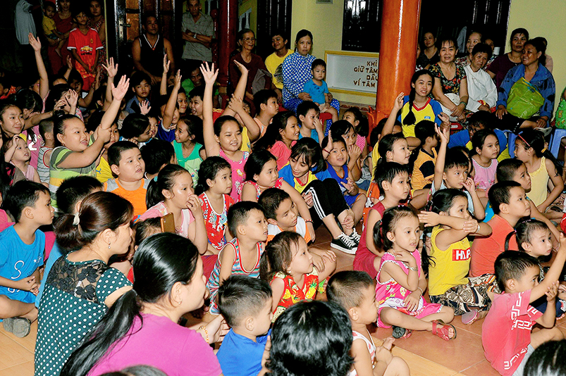 Chương trình “Đêm hội Trung thu” diễn ra trong không khí ấm áp vui tươi với nhiều tiết mục sôi động hấp dẫn: Có chị Hằng, chú Cuội, múa lân và các bài hát trẻ thơ do các em thiếu nhi…