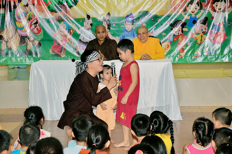Phát biểu khai mạc Đêm hội, Sư cô Liên Trang đã gửi lời chúc mừng đến các học sinh, có một mùa Trung thu tràn đầy tình thương bên bạn bè và gia đình, hy vọng các em cố gắng học tập để trở thành con ngoan trò giỏi, những anh tài tương lai của đất nước. thông qua đêm hội các hoạt động vui chơi vào dịp cho các em đến gieo duyên với Phật pháp.