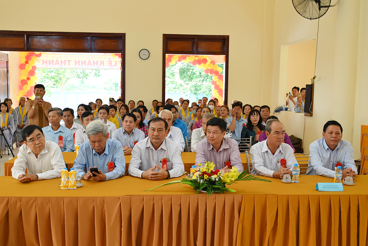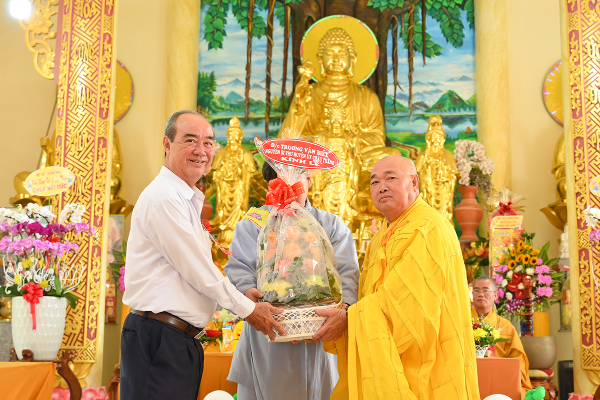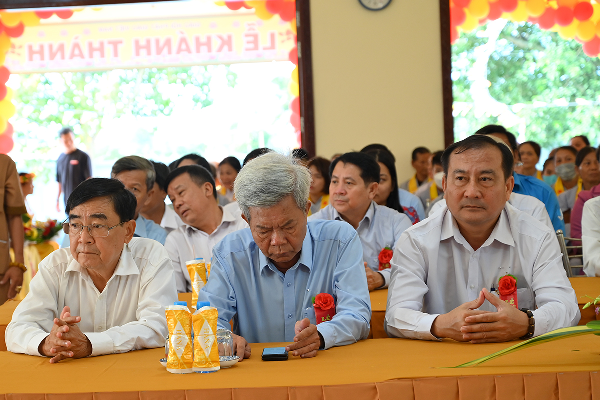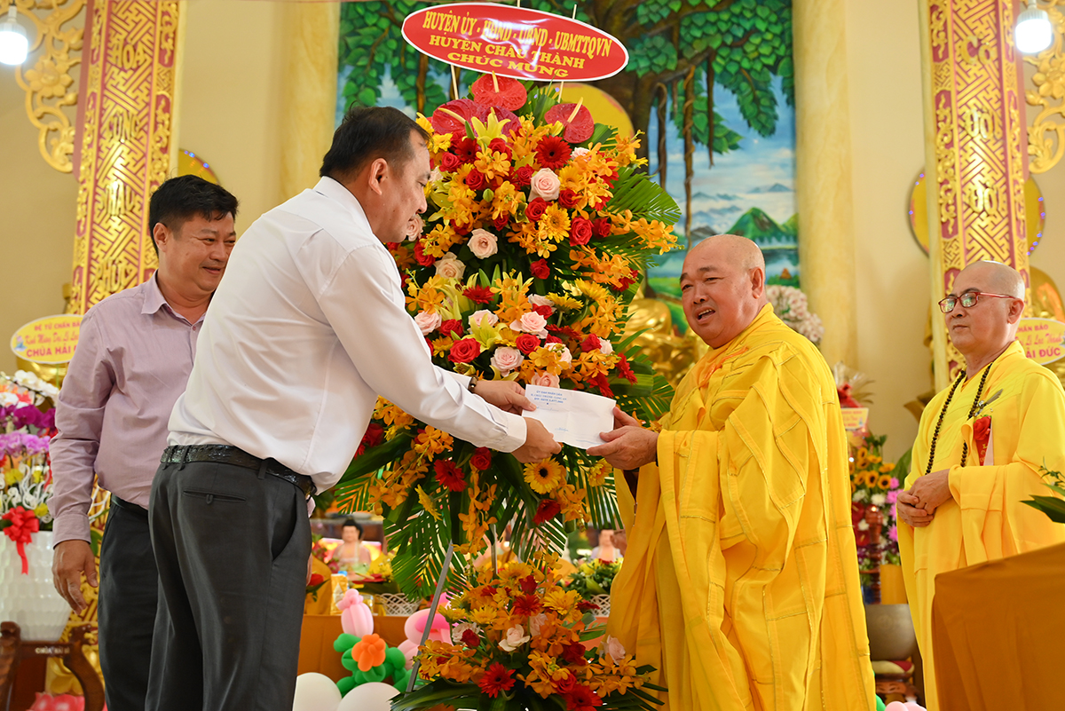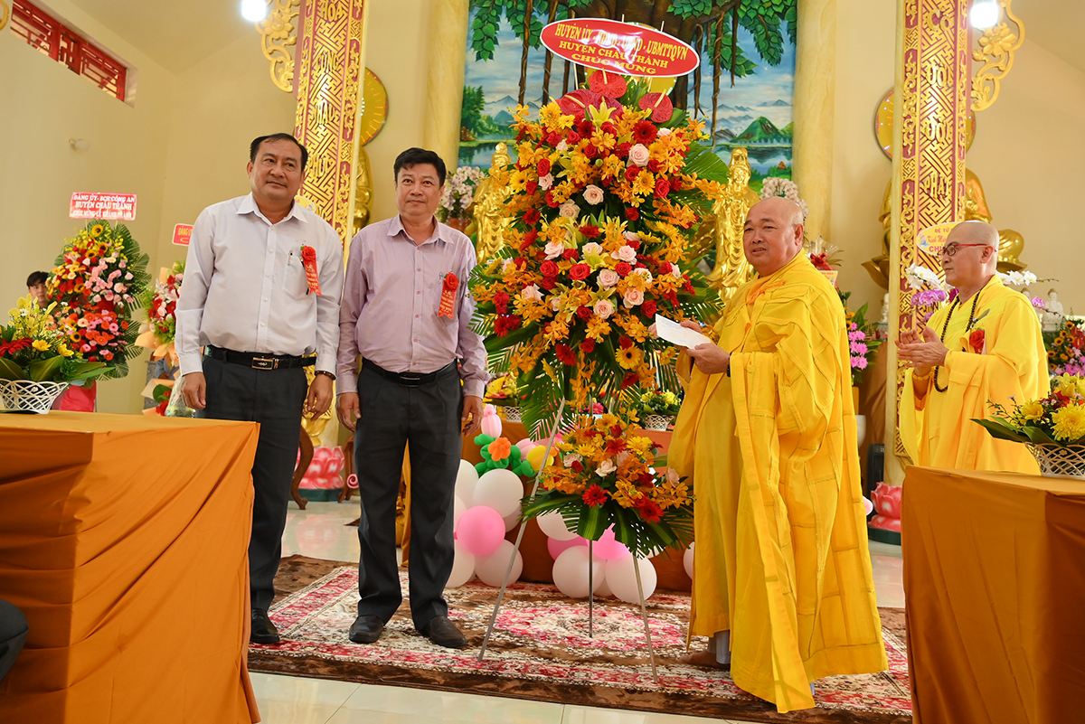 Buổi lễ hân hoan được cung nghinh sự quang lâm chứng minh của HT. Thích Minh Thiện- Uỷ viên HĐTS TW GHPGVN, Phó trưởng Ban Hoằng pháp TW, Trưởng Ban Trị Sự GHPGVN tỉnh Long An; HT. Thích Đức Thông- Chứng minh Ban trị sự GHPGVN thị xã Cai Lậy tỉnh Tiền Giang; TT. Thích Minh Thọ- Uỷ viên HĐTSTW GHPGVN, Phó Ban Trị sự kiêm Trưởng Ban Pháp Chế GHPGVN tỉnh Long An; TT. Thích Đức Hoàng- Phó Ban Trị sự GHPGVN tỉnh Long An; ĐĐ. Thích Lệ Ngôn- Phó Ban Trị sự kiêm Trưởng ban Hoằng pháp GHPGVN tỉnh Long An. ĐĐ. Thích Huệ Quang- Uỷ viên Ban Trị sự GHPGVN tỉnh Long An, Trưởng Ban Trị sự GHPGVN huyện Châu Thành, cùng Chư tôn đức trong Ban Trị sự GHPGVN huyện Châu Thành và các huyện lân cận, quý chư tôn đức trụ trì các tòng lâm tự viện trong huyện Châu Thành trở về tham dự.