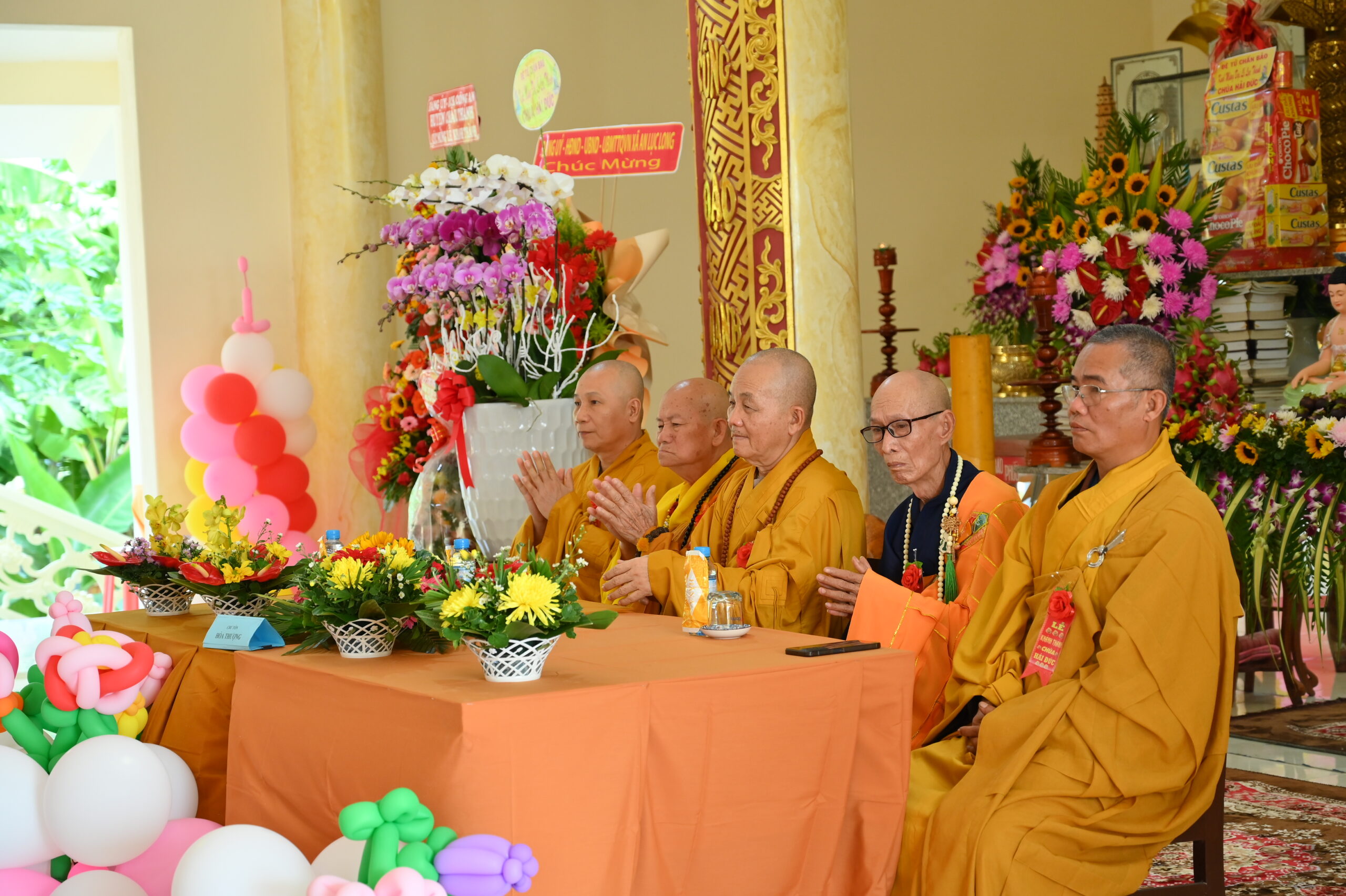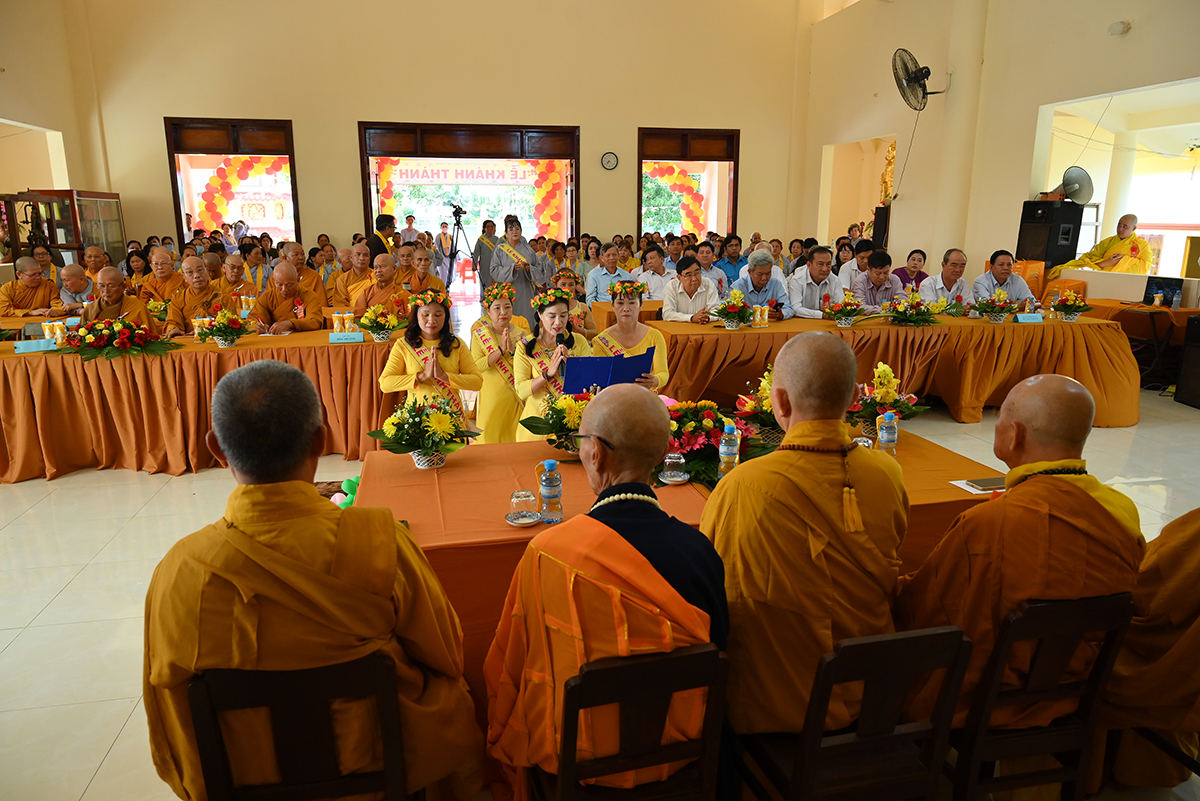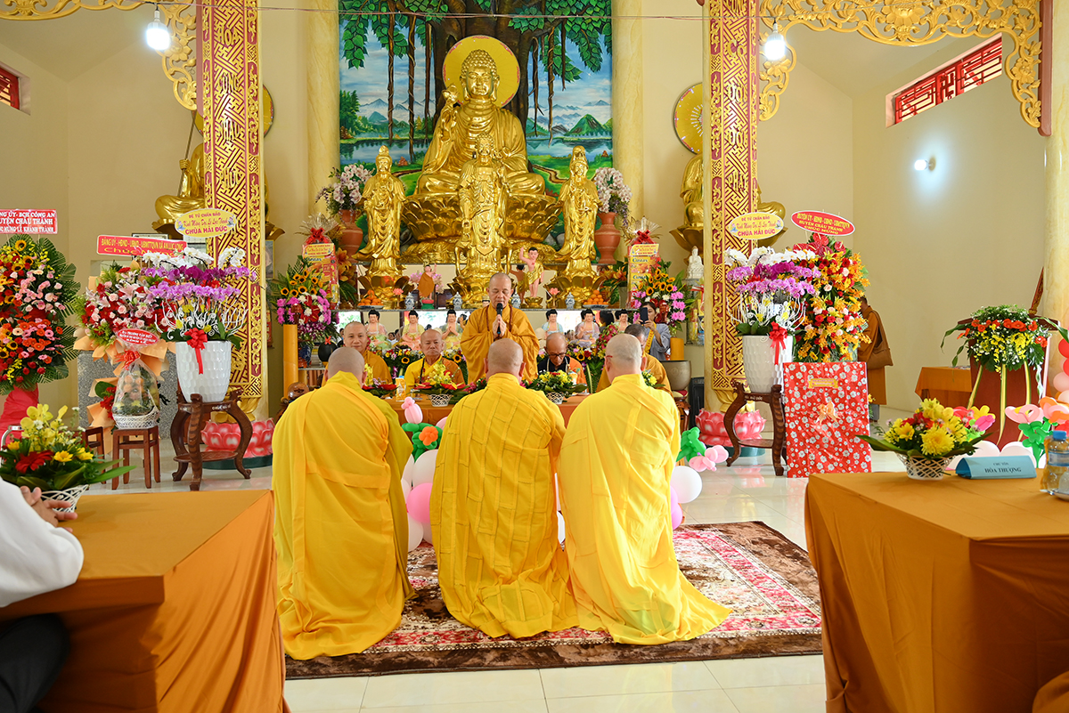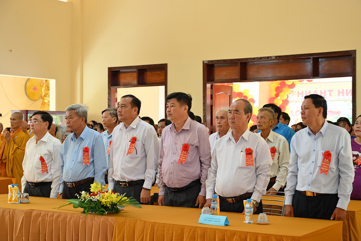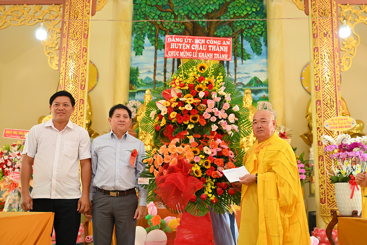 Buổi lễ hân hoan được cung nghinh sự quang lâm chứng minh của HT. Thích Minh Thiện- Uỷ viên HĐTS TW GHPGVN, Phó trưởng Ban Hoằng pháp TW, Trưởng Ban Trị Sự GHPGVN tỉnh Long An; HT. Thích Đức Thông- Chứng minh Ban trị sự GHPGVN thị xã Cai Lậy tỉnh Tiền Giang; TT. Thích Minh Thọ- Uỷ viên HĐTSTW GHPGVN, Phó Ban Trị sự kiêm Trưởng Ban Pháp Chế GHPGVN tỉnh Long An; TT. Thích Đức Hoàng- Phó Ban Trị sự GHPGVN tỉnh Long An; ĐĐ. Thích Lệ Ngôn- Phó Ban Trị sự kiêm Trưởng ban Hoằng pháp GHPGVN tỉnh Long An. ĐĐ. Thích Huệ Quang- Uỷ viên Ban Trị sự GHPGVN tỉnh Long An, Trưởng Ban Trị sự GHPGVN huyện Châu Thành, cùng Chư tôn đức trong Ban Trị sự GHPGVN huyện Châu Thành và các huyện lân cận, quý chư tôn đức trụ trì các tòng lâm tự viện trong huyện Châu Thành trở về tham dự.