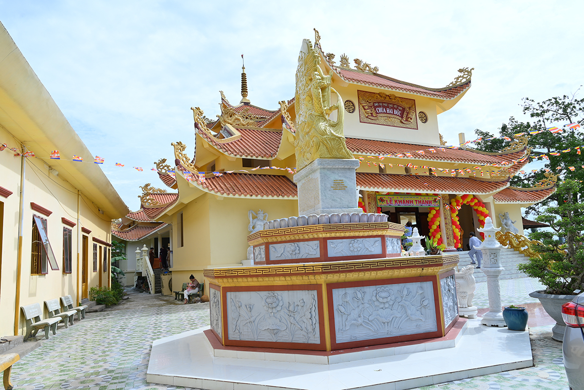 Trong buổi lễ ĐĐ. Thích Thiện Hùng thay mặt TT. Thích Minh Hạnh- Chứng Minh Ban Trị sự GHPGVN huyện Châu Thành, Trụ trì Chùa đã báo cáo khái quát quá trình trùng tu tái thiết ngôi già lam Hải Đức. Sau hơn 10 năm trùng tu và tái thiết ngôi Tam Bảo đã hoàn thành.