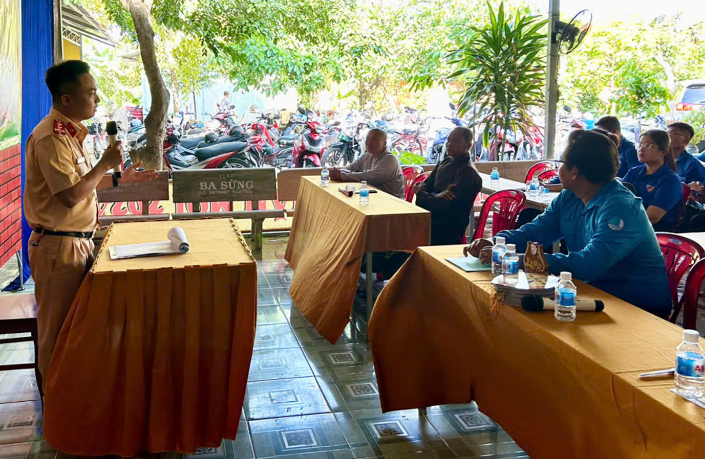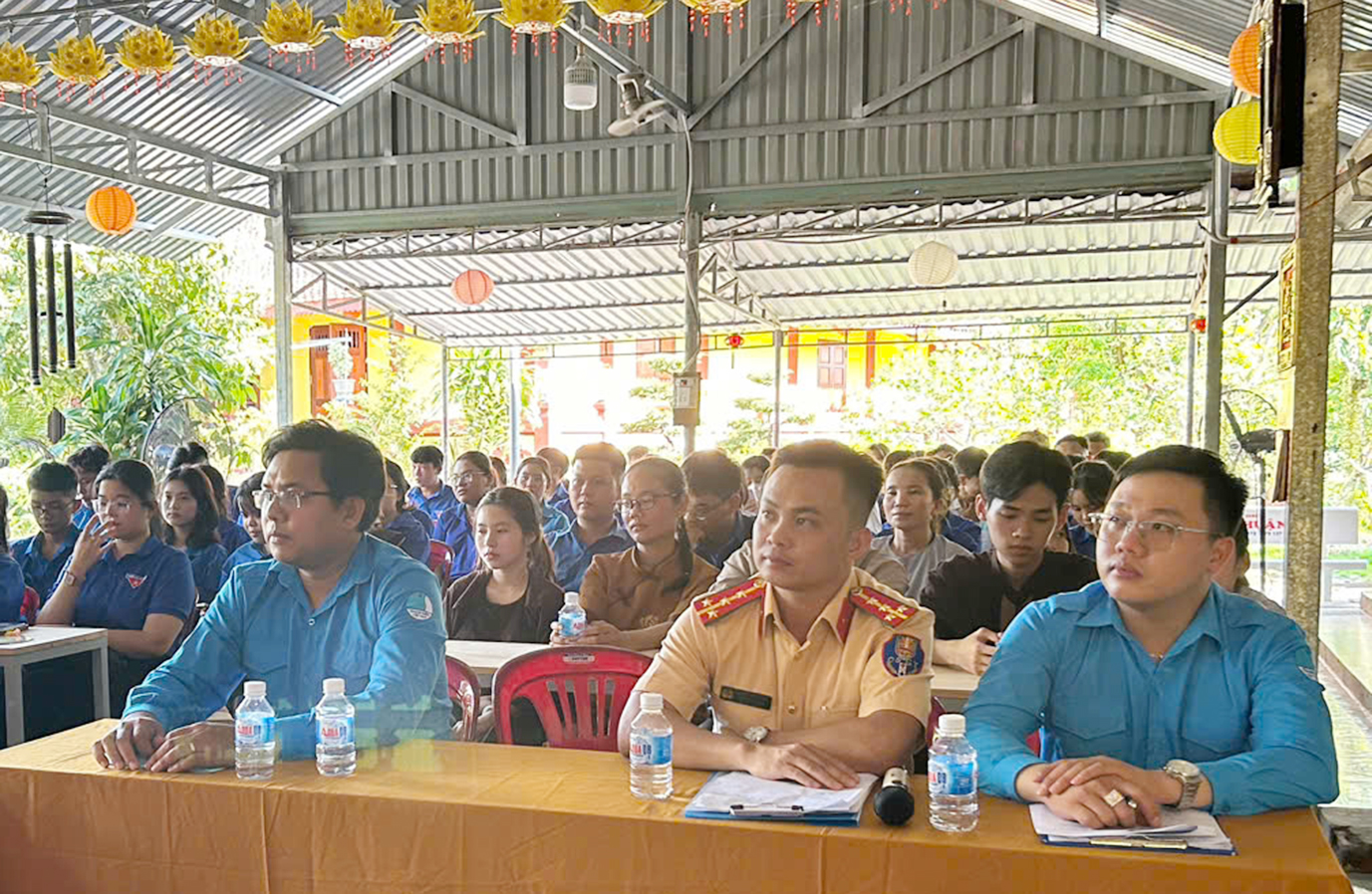 Trong phần chia sẽ của Đại úy Huỳnh Thiện Tâm, Công An CSGT huyện Châu Thành, Đại úy đã nhắc tất cả mọi người tuân thủ luật giao thông, không giao xe cho các em khi chưa đủ điều kiện tham gia giao thông, đảm bảo an toàn cho người và cho mình. Các bạn thanh niên sôi nổi cùng giao lưu và trả lời những kiến thức về luật an toàn giao thông. Với lứa tuổi còn trẻ, việc xây dựng kiến thức an toàn cho mình và cộng đồng là góp phần xây dựng một tương lai tốt đẹp. Các bạn được Đại úy công an trao tặng những chiếc mũ bảo hiểm khi trả lời đúng các câu hỏi và không khí nhiệt huyết, tình yêu quê hương đất nước, trân trọng những thành quả của Cha Anh đã được Ô Nguyễn Trung Rỡ, bí thư huyện Đoàn gửi đến các bạn Đoàn viên, thanh niên Tôn giáo với tinh thần rèn luyện nhân cách đạo đức của thế hệ Thanh niên con cháu Bác Hồ trên tinh thần 3 rèn luyện: Tâm trong, Trí Sáng và Rèn Chí Lớn. Với vai trò lãnh đạo trong Công tác Đoàn, Ông đã luôn kêu gọi thanh niên tôn giáo tăng cường, đẩy mạnh công tác đoàn kết, tập hợp thanh niên tôn giáo trên địa bàn xã, thị trấn; tạo môi trường giao lưu, học hỏi và gắn kết các thanh niên giữa các đơn vị với nhau, phát huy sức mạnh, sự đồng lòng của thanh niên toàn huyện đối với sự lãnh đạo, chỉ đạo các chủ trương đường lối của Đảng, pháp luật của Nhà nước.