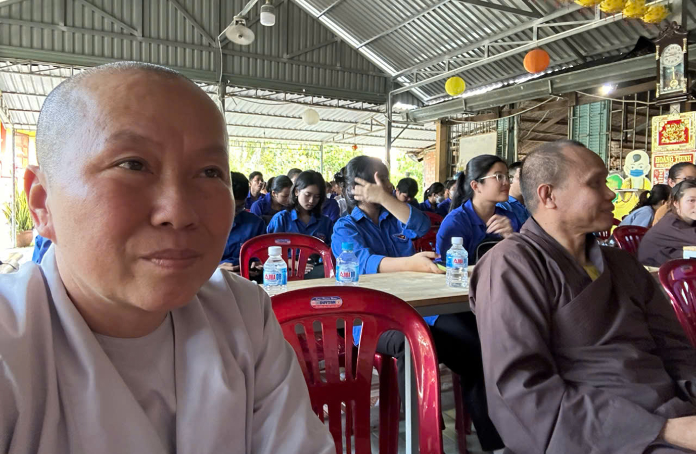 Không khí giao lưu sôi nổi với những phần quà khích lệ và thông điệp mà Thượng tọa gửi đến các bạn Thanh niên tham dự là hãy cùng nhau nuôi dưỡng nếp sống đạo đức, tiếp nối truyền thống tốt đẹp của Cha Ông, cùng nhau bảo vệ môi trường, trao dồi tri thức và nghề nghiệp lành mạnh để xây dựng một cuộc sống tương lai tốt đẹp. Tại buổi gặp gỡ nầy, Thượng tọa cũng chia sẽ niềm hoan hỉ của Phật giáo Việt Nam được đăng cai tổ chức Đại Lễ Vesak Liên Hiệp Quốc tại TP HCM và Ban Văn Hóa Phật giáo Trung ương để chào mừng sự kiện trọng thể nầy đã tổ chức những hoạt động Văn nghệ Phật Giáo chào mừng diễn ra khắp 3 miền Nam Trung Bắc.