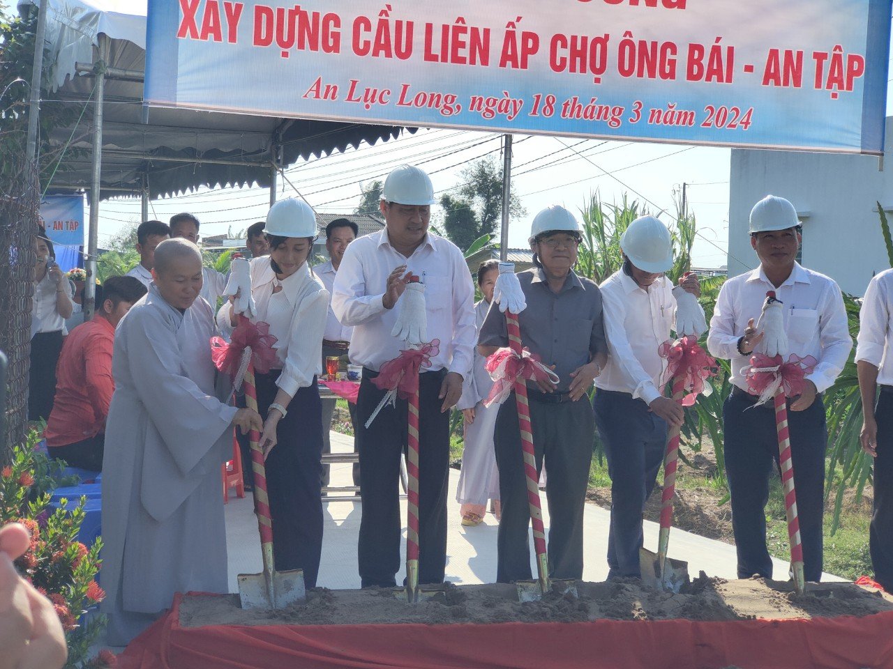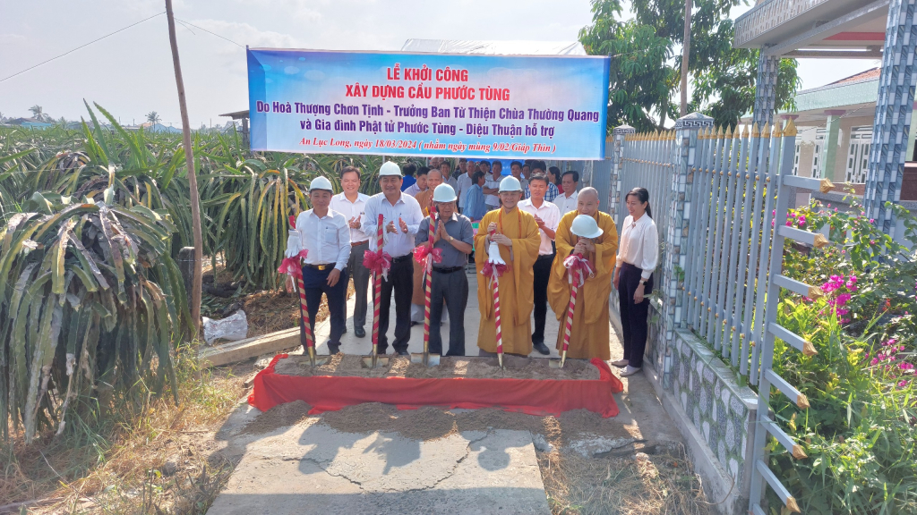 Buổi Lễ Khởi Công xây dựng Cầu Phước Tùng. Về phía Phật giáo có Hòa thượng Thích Minh Thiện, Ủy viên HĐTS, Phó Ban Hoằng Pháp TWGH.GHPGVN, Trưởng Ban Trị Sự GHPGVN tỉnh Long An; Thượng Tọa Thích Đức Hoàng, Phó Ban Trị Sự GHPGVN Tỉnh Long An; Đại Đức Thích Huệ Quang, ủy viên BTSGHPGVN tỉnh Long An, Trưởng Ban Trị Sự GHPGVN huyện Châu Thành; Ni sư Thích nữ Diệu Huệ, ủy viên thường trực GHPGVN tỉnh Long An, Phó Ban Trị Sự kiêm Trưởng Ban Hoằng Pháp GHPGVN huyện Châu Thành, cùng Chư Tôn Đức thường trực BTS. GHPGVN huyện Châu thành.