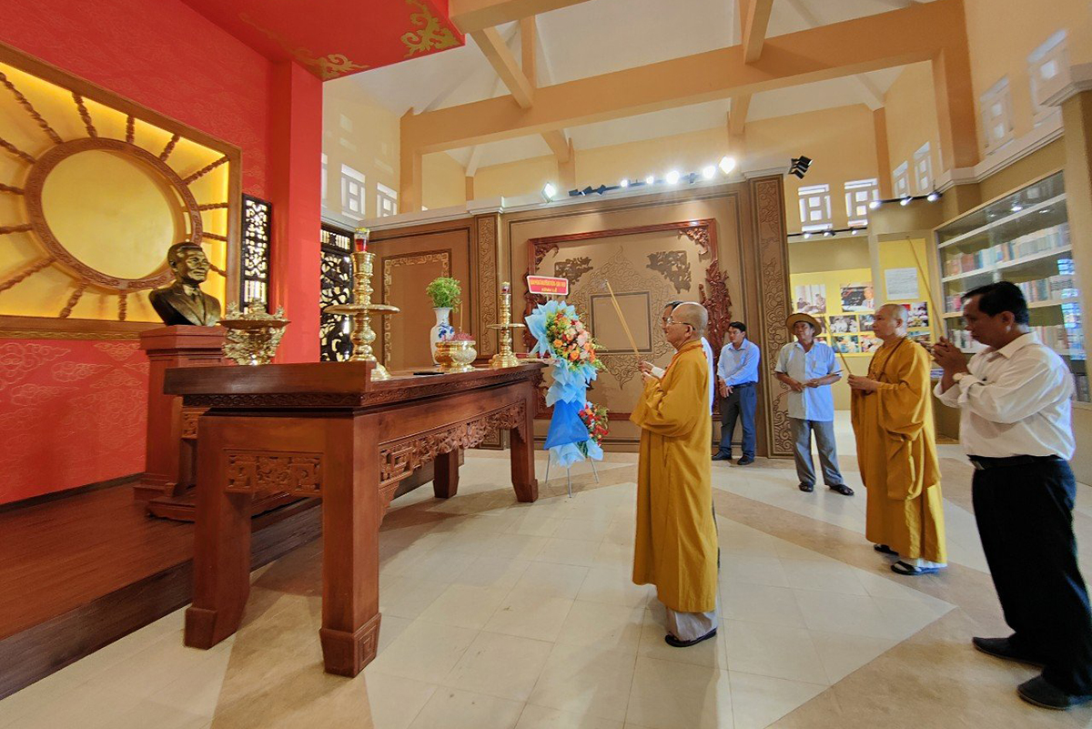 Nghi thức động thổ khởi công với những tràng pháo tay tràn đầy niềm xúc động tri ân của người dân địa phương tham dự . Sau khi buổi Lễ khởi công xây dựng cầu Phước Tùng, HT Thích Minh Thiện được các vị lãnh đạo huyện hướng dẫn đến Nhà tưởng niệm Giáo sư Trần Văn Giàu, thắp hương tưởng niệm Giáo Sư – Một nhà Khoa học, một nhà nghiên cứu lịch sử, triết học, một nhà Cách Mạng lão thành là người con lỗi lạc tài ba của huyện Châu Thành, tỉnh Long An.
