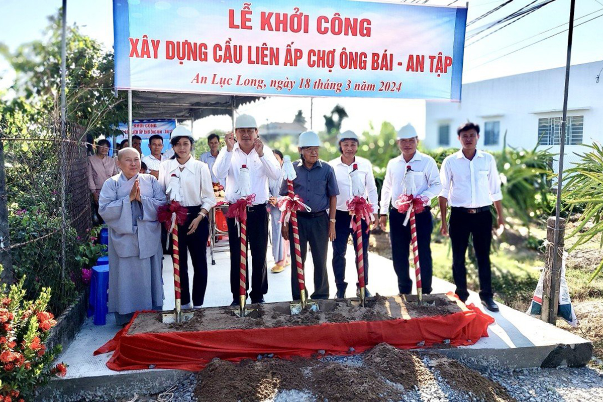 Được biết, chiều cùng ngày 18/3/2024. Tại ấp Chợ Ông Bái, gần Chùa An Châu cũng diễn ra Lễ Khởi Công Xây Dựng Cầu Liên Ấp Chợ Ông Bái và An Tập thuộc xã An Lục Long do Ông Đỗ Hữu Lâm, đại diện cho nhà tài trợ để giúp người dân địa phương đi lại dễ dàng, các cháu học sinh đến trường an toàn, người người an cư lạc nghiệp. Có thể nói hôm nay là ngày vui của người dân xã An Lục Long khi Phật giáo luôn đồng hành cùng Dân Tộc, khi chính quyền luôn quan tâm chăm lo cho dân, khi người dân có được 2 cây cầu giao thông nông thôn Phước Tùng và Liên ấp theo tiêu chí nông thôn mới.