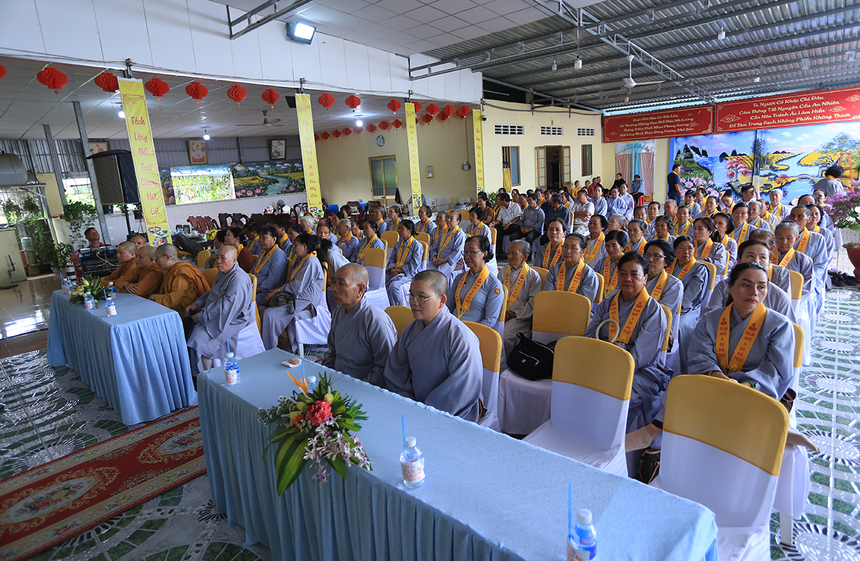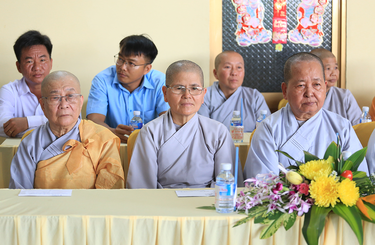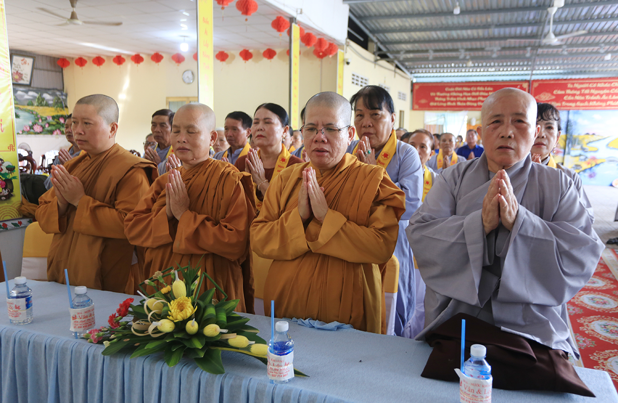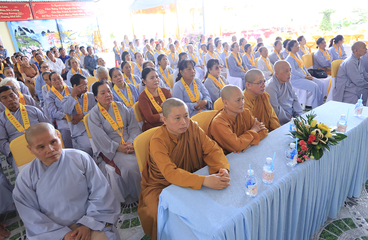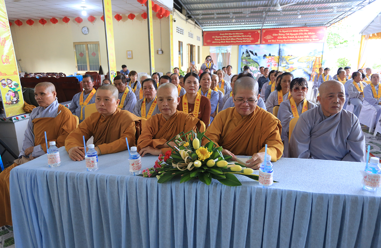 Quang lâm chứng minh buổi lễ có sự hiện diện của: TLHT. Thích Thiện Huệ – Thành viên Hội đồng Chứng minh TƯ, Chứng minh BTS GHPGVN tỉnh Long An; HT. Thích Minh Thiện – UV HĐTS, Phó Trưởng Ban Hoằng pháp TƯ, Trưởng BTS GHPGVN tỉnh Long An; HT. Thích Tắc Phi – Phó Trưởng BTS GHPGVN tỉnh; TT. Thích Quảng Tâm – UV HĐTS, Phó Trưởng Ban TTXH TƯ, Phó Trưởng BTS GHPGVN tỉnh; TT. Thích Lệ Trí – UV HĐTS, Phó Trưởng Ban Văn hoá TƯ, Phó Trưởng BTS GHPGVN tỉnh; TT. Thích Đức Hoàng – Phó Trưởng BTS GHPGVN tỉnh; ĐĐ. Thích Lệ Duyên – Phó Trưởng ban kiêm Chánh Thư ký BTS GHPGVN tỉnh, Trưởng BTS GHPGVN huyện Đức Hoà; cùng Chư Tôn đức thường trực BTS Phật giáo tỉnh Long An, các huyện thị thành; Chư Tôn đức Tăng Ni đồng về tham dự.