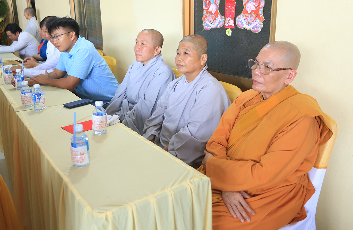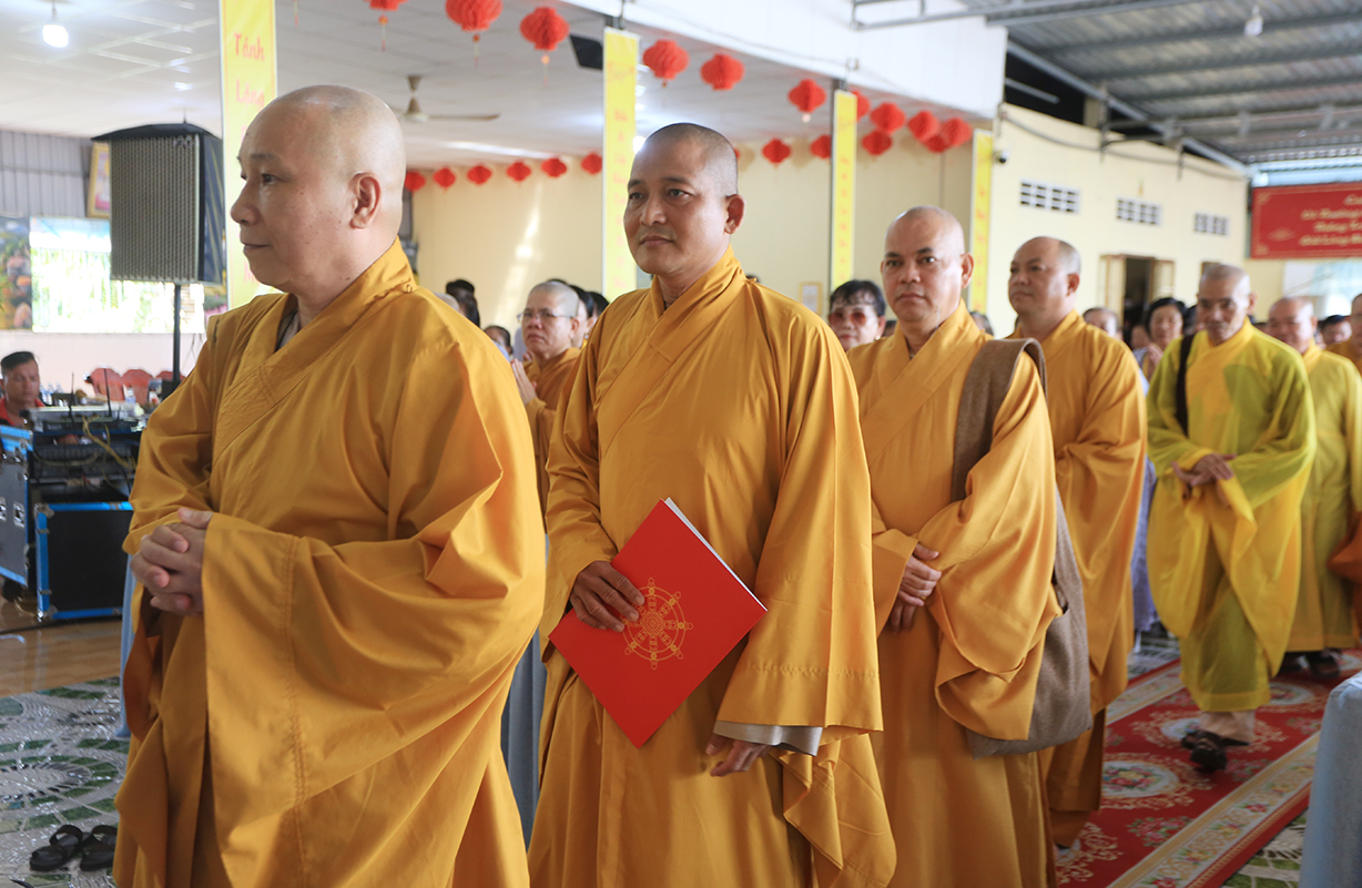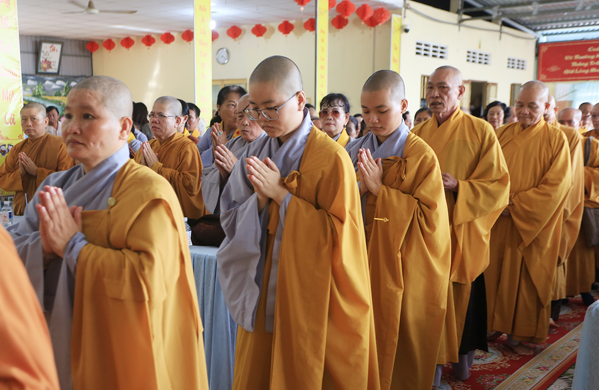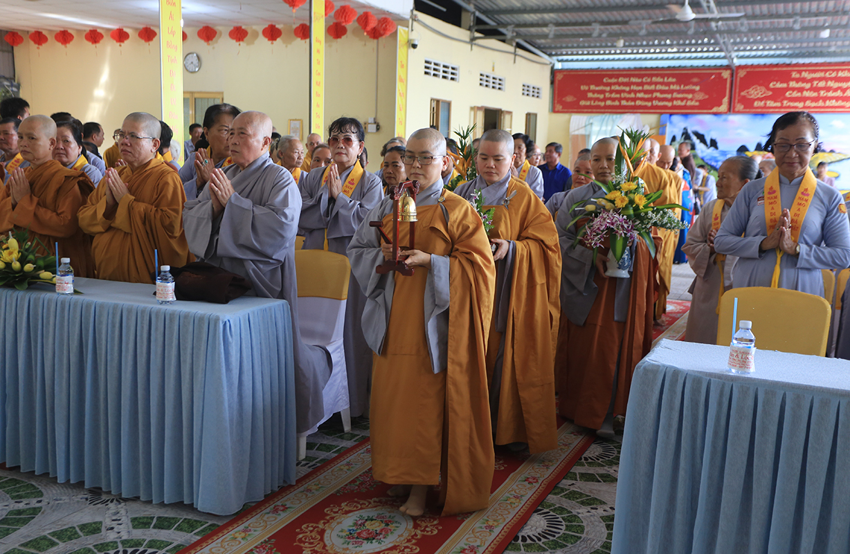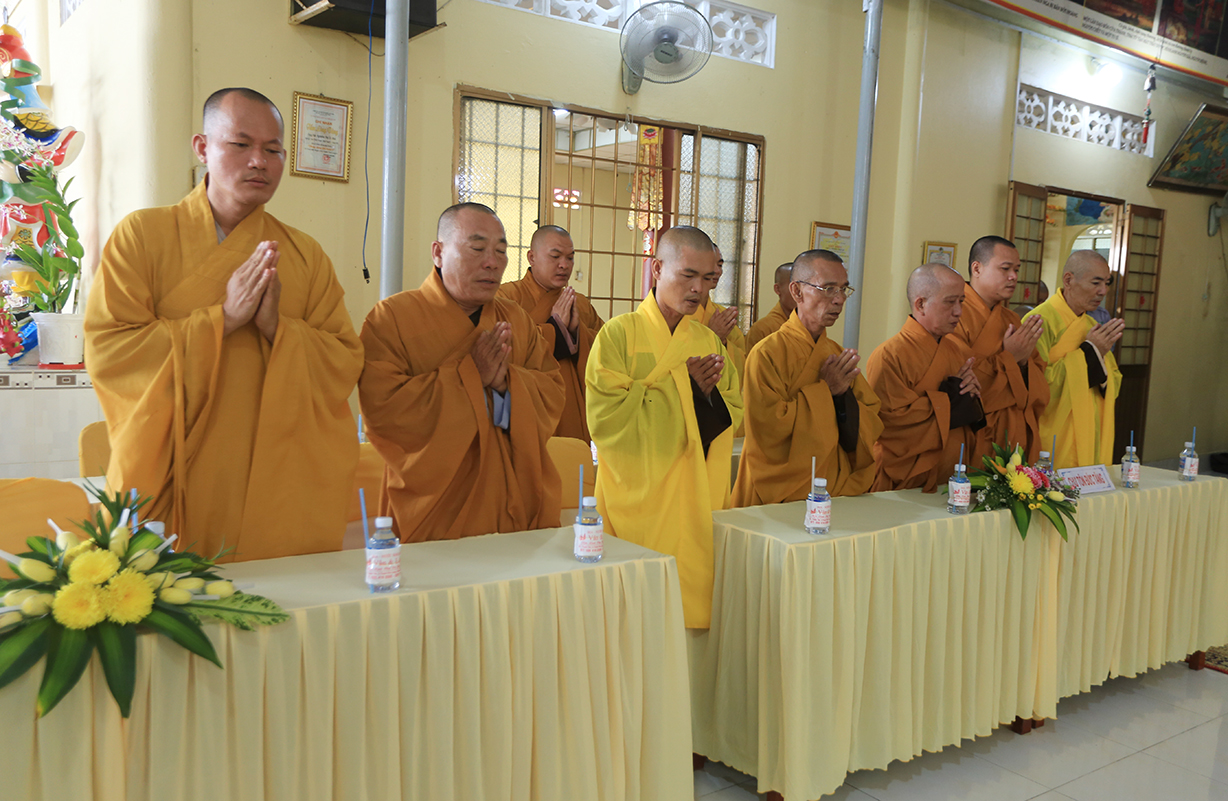 Quang lâm chứng minh buổi lễ có sự hiện diện của: TLHT. Thích Thiện Huệ – Thành viên Hội đồng Chứng minh TƯ, Chứng minh BTS GHPGVN tỉnh Long An; HT. Thích Minh Thiện – UV HĐTS, Phó Trưởng Ban Hoằng pháp TƯ, Trưởng BTS GHPGVN tỉnh Long An; HT. Thích Tắc Phi – Phó Trưởng BTS GHPGVN tỉnh; TT. Thích Quảng Tâm – UV HĐTS, Phó Trưởng Ban TTXH TƯ, Phó Trưởng BTS GHPGVN tỉnh; TT. Thích Lệ Trí – UV HĐTS, Phó Trưởng Ban Văn hoá TƯ, Phó Trưởng BTS GHPGVN tỉnh; TT. Thích Đức Hoàng – Phó Trưởng BTS GHPGVN tỉnh; ĐĐ. Thích Lệ Duyên – Phó Trưởng ban kiêm Chánh Thư ký BTS GHPGVN tỉnh, Trưởng BTS GHPGVN huyện Đức Hoà; cùng Chư Tôn đức thường trực BTS Phật giáo tỉnh Long An, các huyện thị thành; Chư Tôn đức Tăng Ni đồng về tham dự.