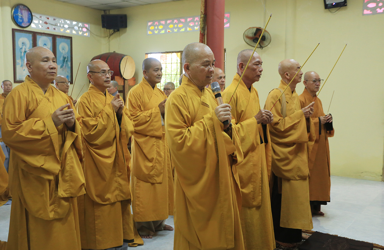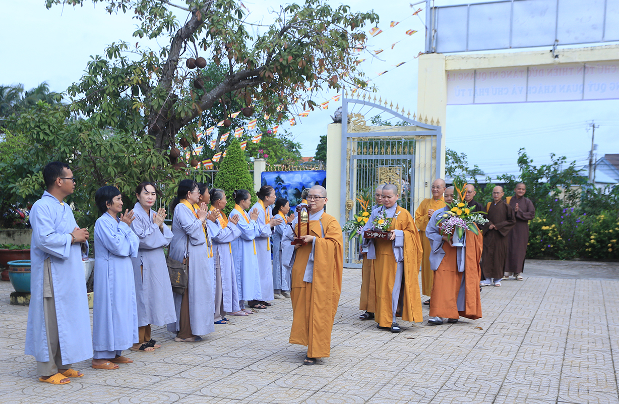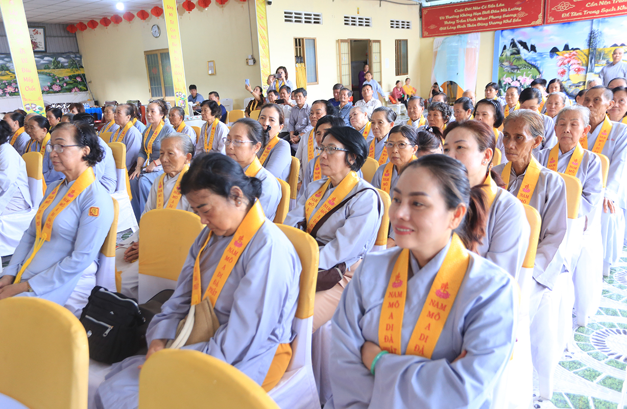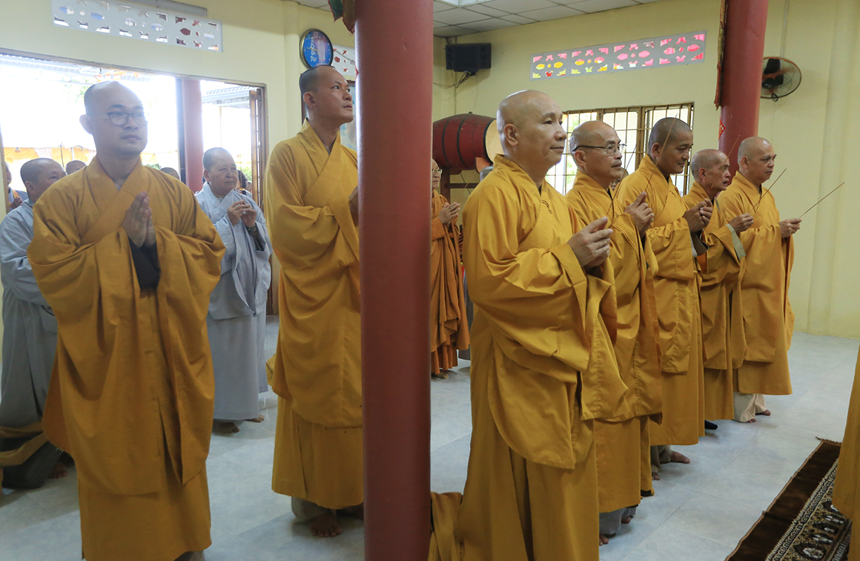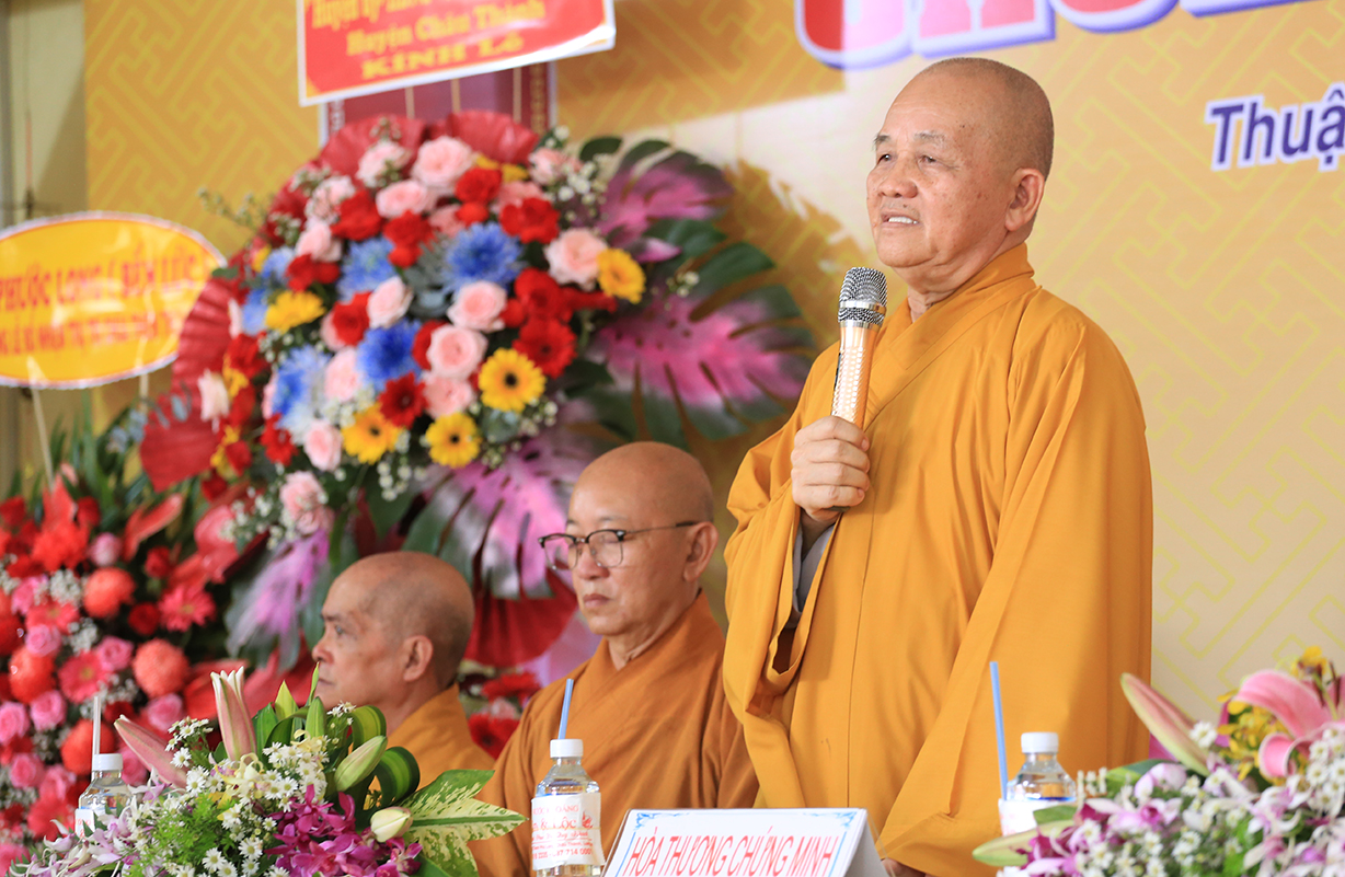 Quang lâm chứng minh buổi lễ có sự hiện diện của: TLHT. Thích Thiện Huệ – Thành viên Hội đồng Chứng minh TƯ, Chứng minh BTS GHPGVN tỉnh Long An; HT. Thích Minh Thiện – UV HĐTS, Phó Trưởng Ban Hoằng pháp TƯ, Trưởng BTS GHPGVN tỉnh Long An; HT. Thích Tắc Phi – Phó Trưởng BTS GHPGVN tỉnh; TT. Thích Quảng Tâm – UV HĐTS, Phó Trưởng Ban TTXH TƯ, Phó Trưởng BTS GHPGVN tỉnh; TT. Thích Lệ Trí – UV HĐTS, Phó Trưởng Ban Văn hoá TƯ, Phó Trưởng BTS GHPGVN tỉnh; TT. Thích Đức Hoàng – Phó Trưởng BTS GHPGVN tỉnh; ĐĐ. Thích Lệ Duyên – Phó Trưởng ban kiêm Chánh Thư ký BTS GHPGVN tỉnh, Trưởng BTS GHPGVN huyện Đức Hoà; cùng Chư Tôn đức thường trực BTS Phật giáo tỉnh Long An, các huyện thị thành; Chư Tôn đức Tăng Ni đồng về tham dự.