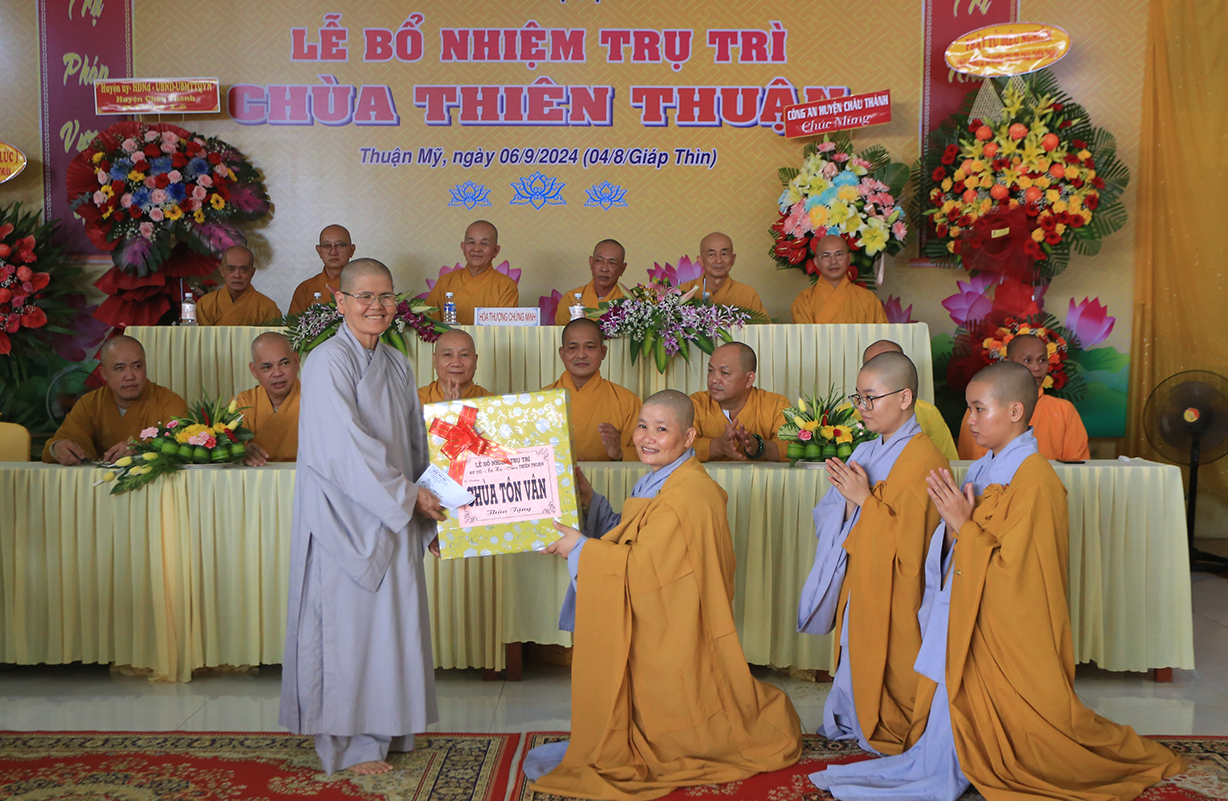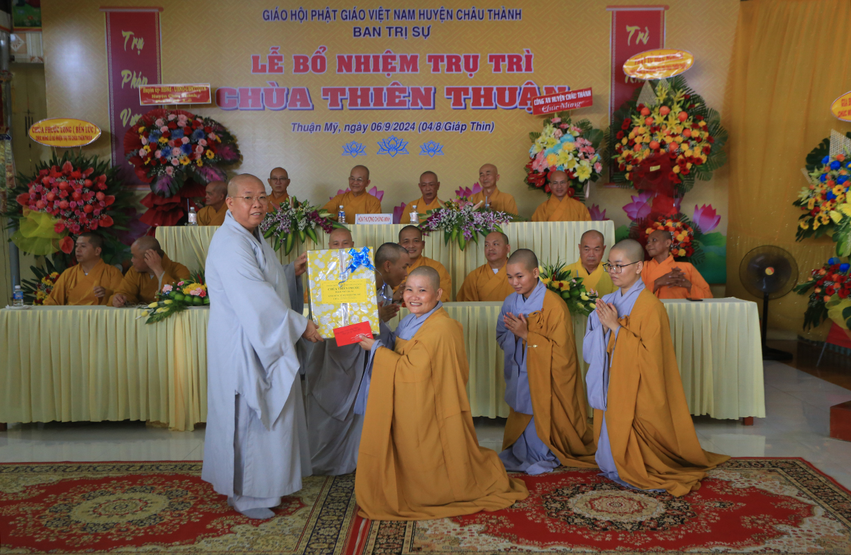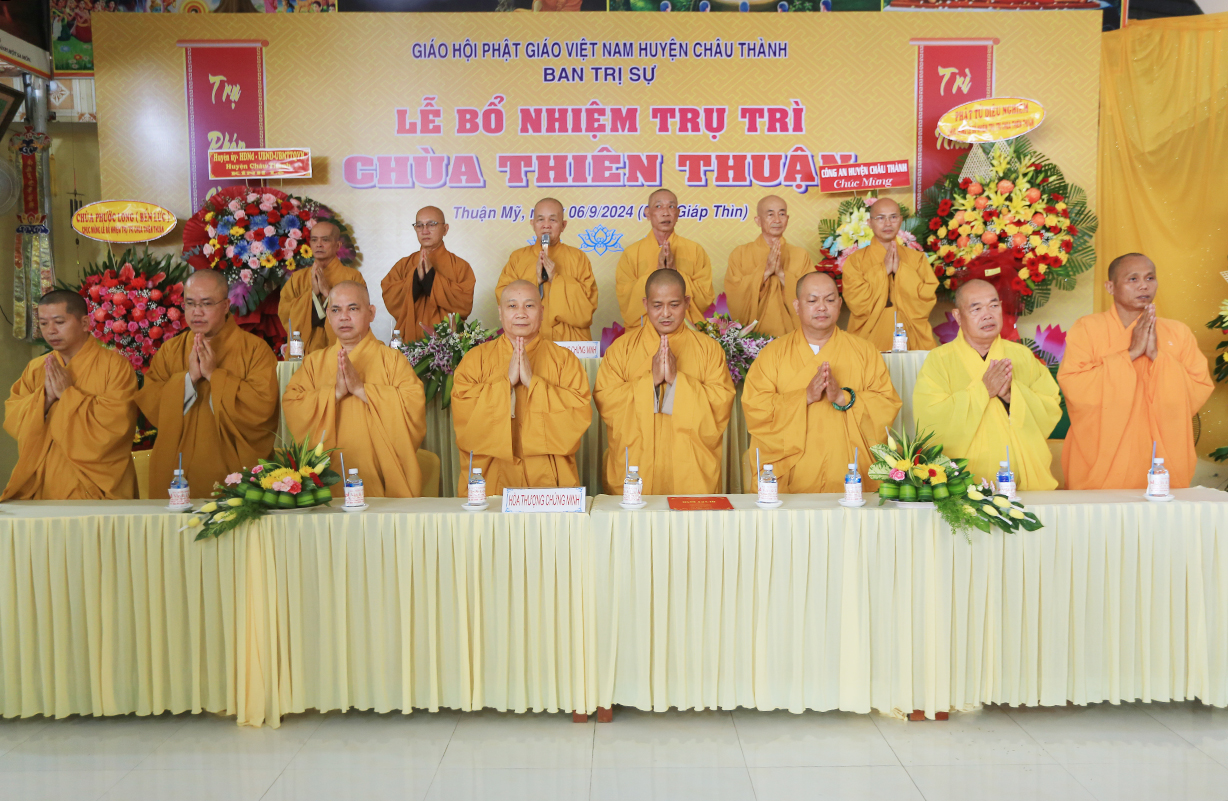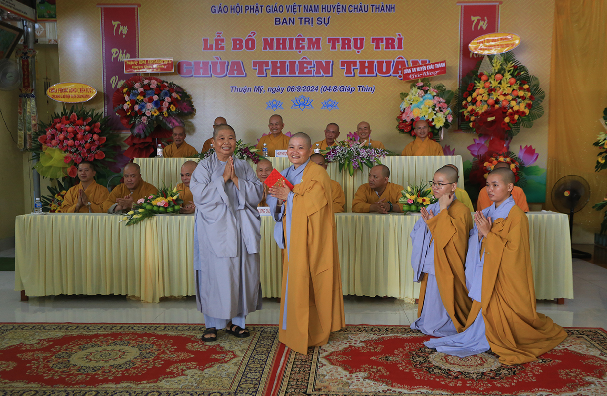 Sáng ngày 06/9/2024 (nhằm ngày 04/8/Giáp Thìn), tại chùa Thiên Thuận, xã Thuận Mỹ, huyện Châu Thành, tỉnh Long An đã trang nghiêm diễn ra Lễ công bố quyết định trụ trì và bổ nhiệm Sư cô Thích nữ An Hà làm trụ trì chùa.