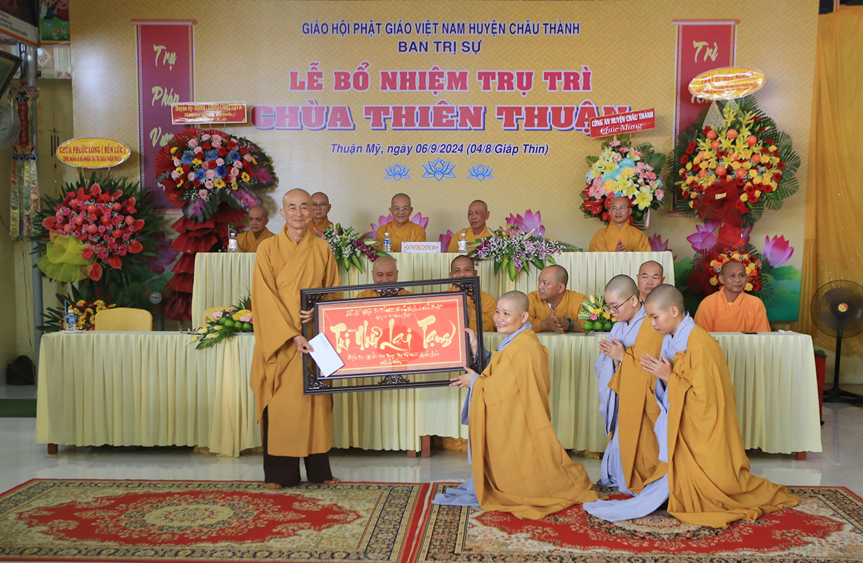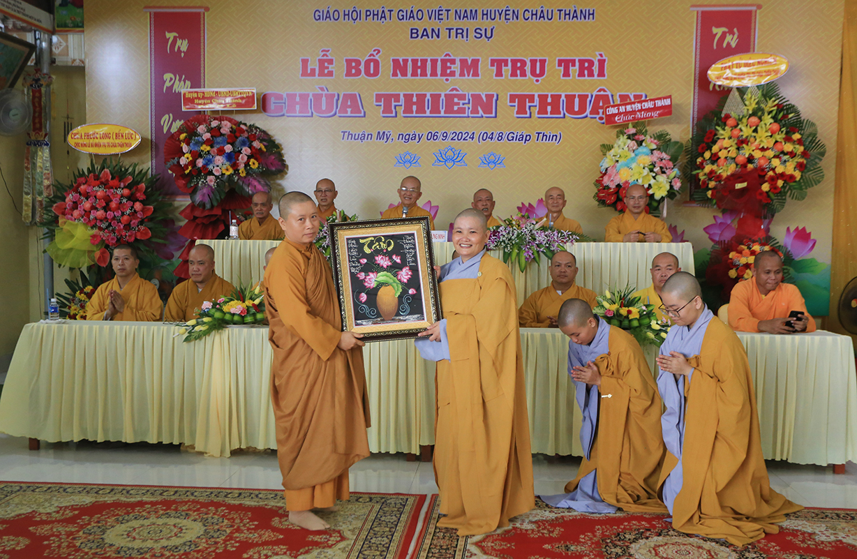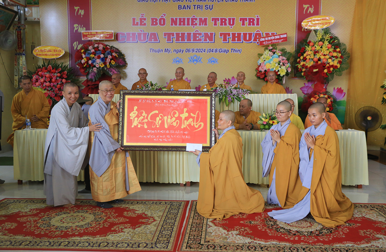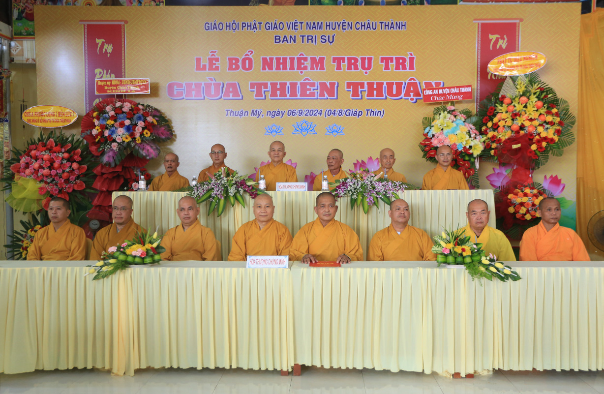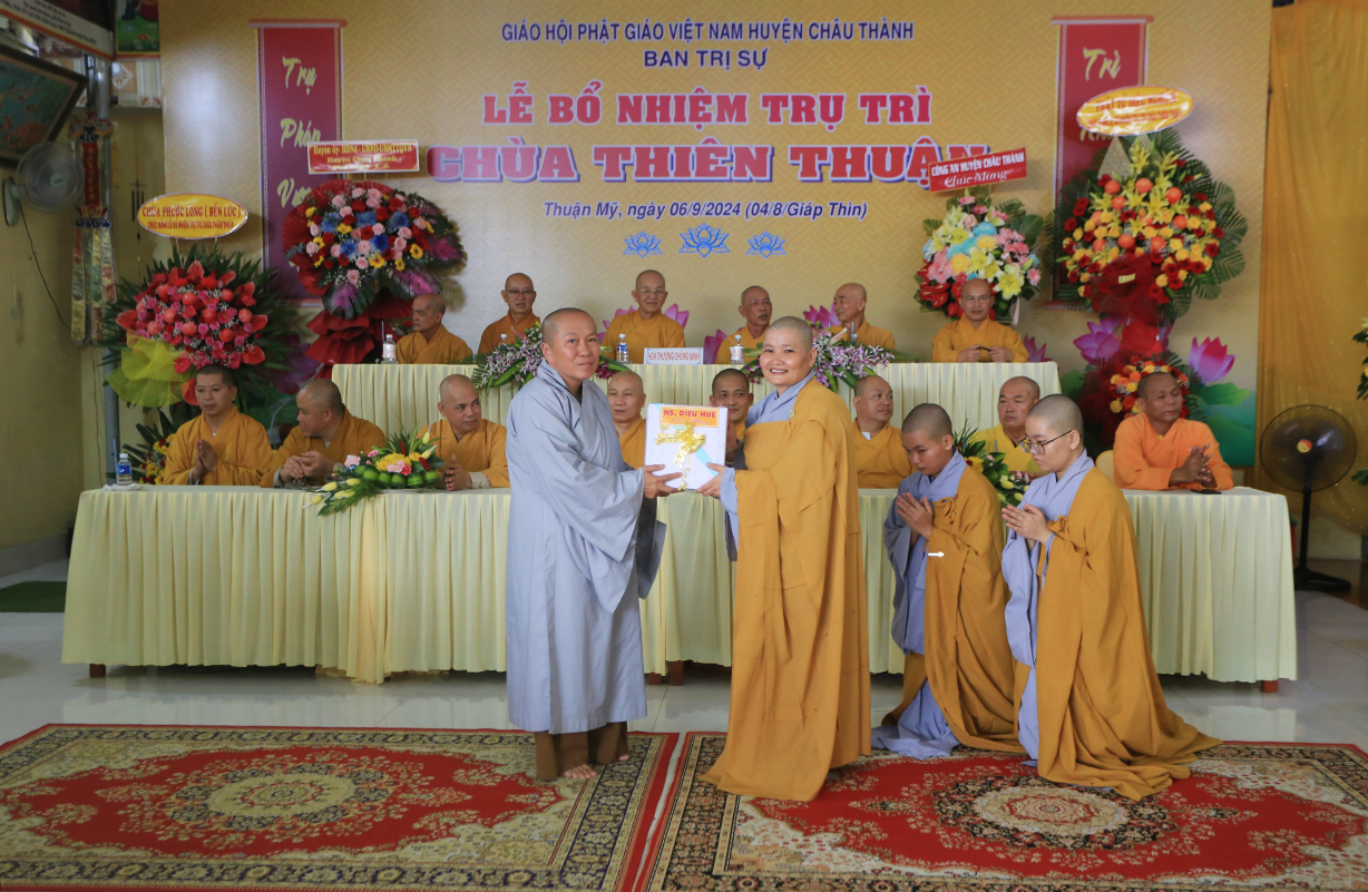 Sáng ngày 06/9/2024 (nhằm ngày 04/8/Giáp Thìn), tại chùa Thiên Thuận, xã Thuận Mỹ, huyện Châu Thành, tỉnh Long An đã trang nghiêm diễn ra Lễ công bố quyết định trụ trì và bổ nhiệm Sư cô Thích nữ An Hà làm trụ trì chùa.