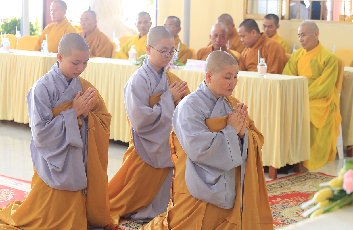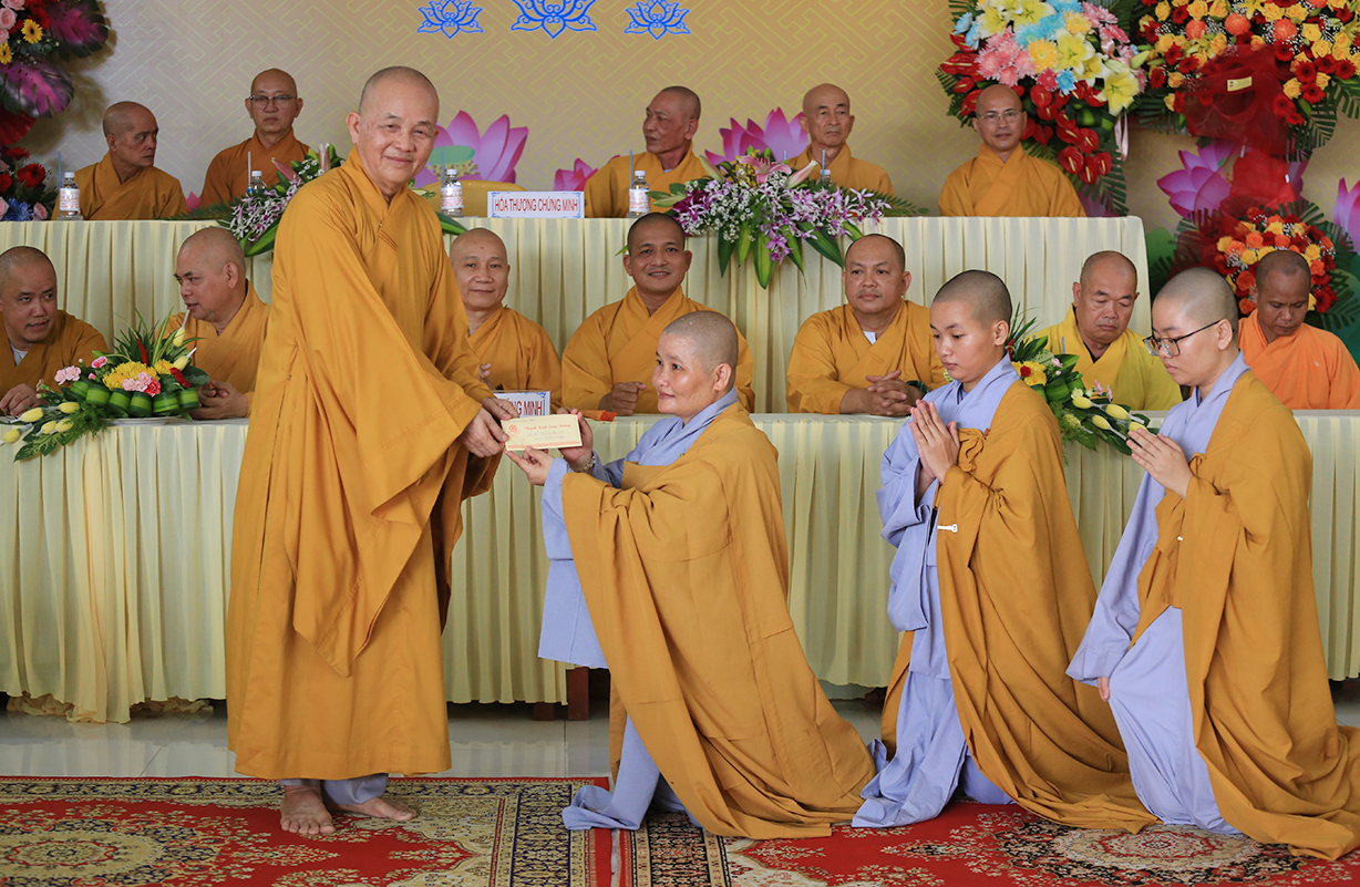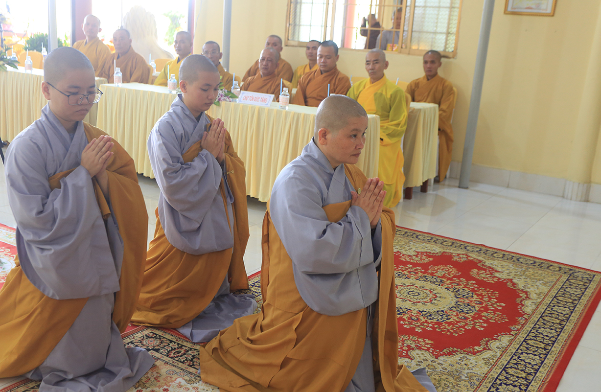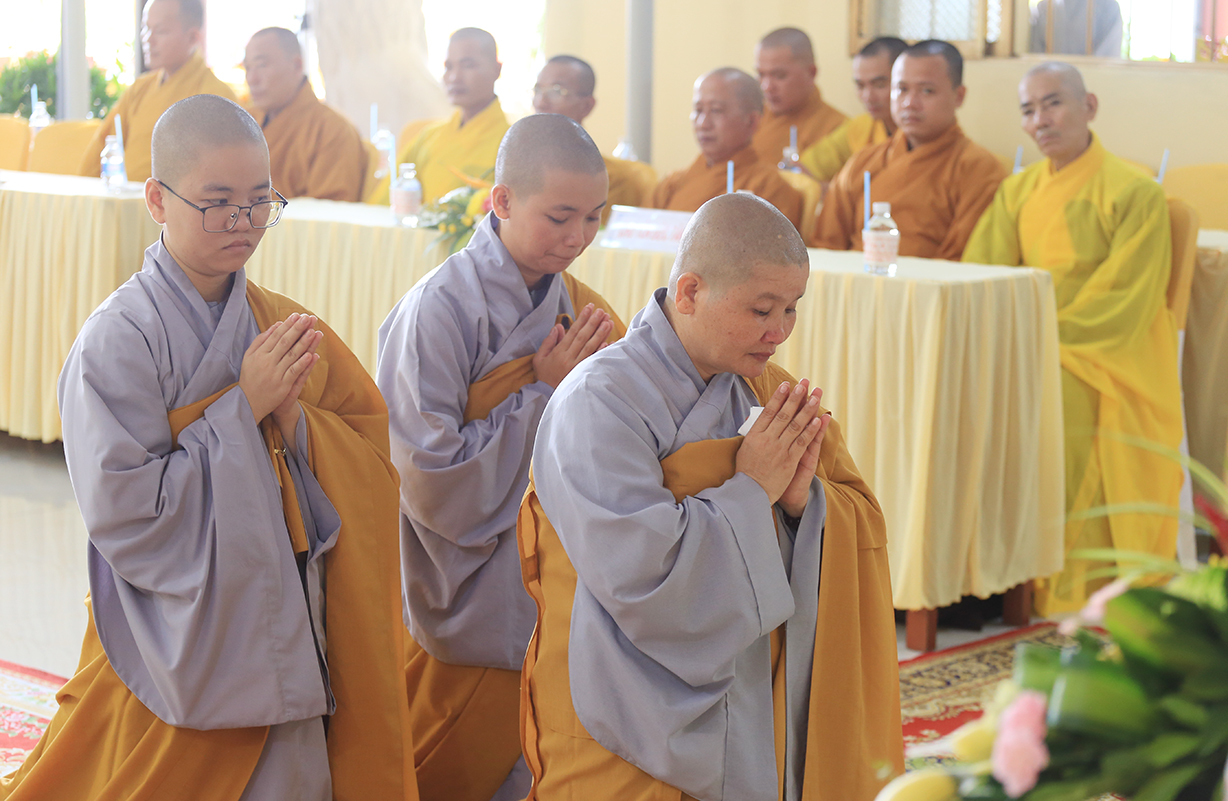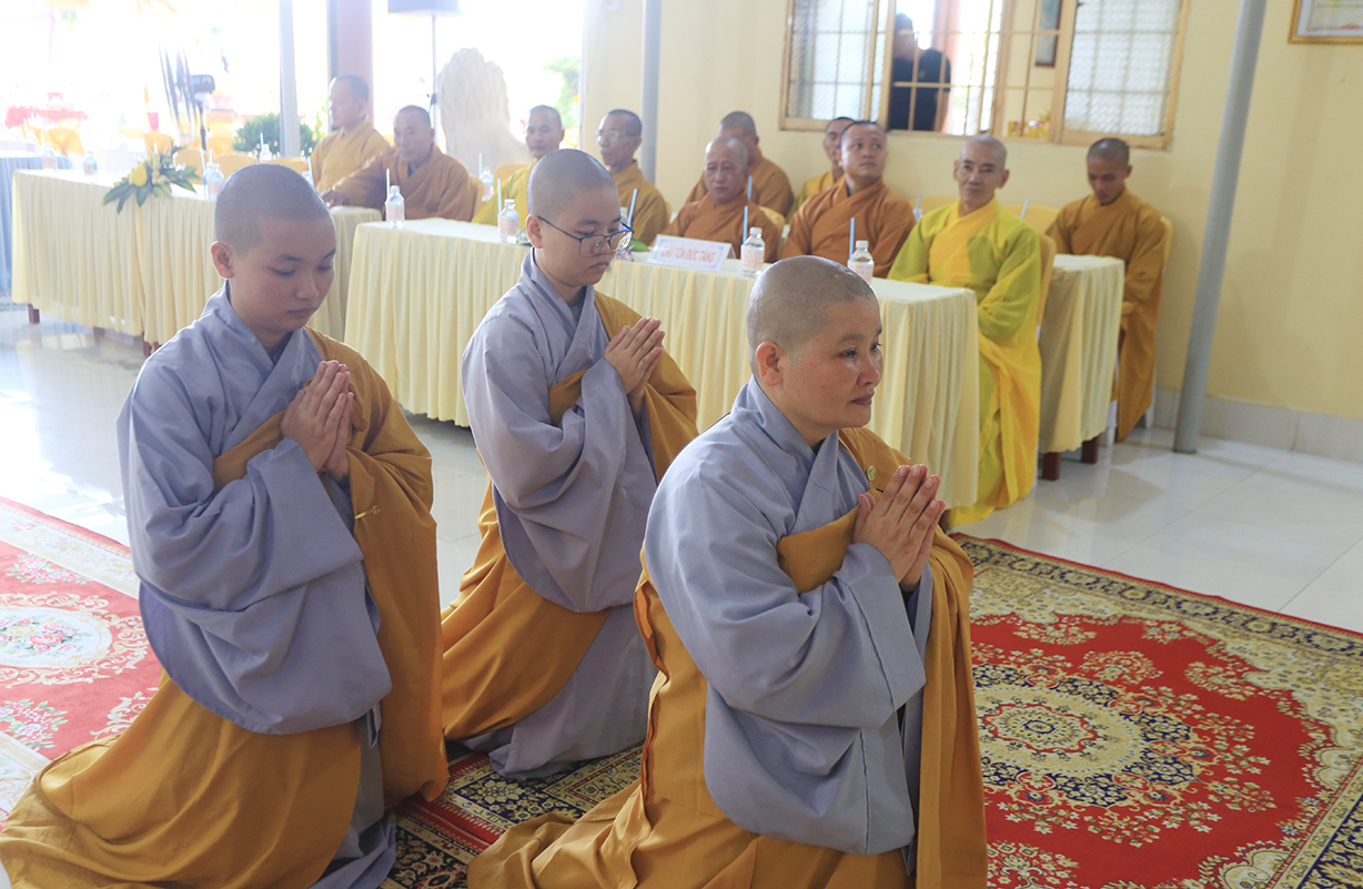 Cuối buổi lễ, Sư cô Thích nữ An Hà đã đảnh lễ niệm ân Chư tôn Hoà thượng chứng minh.