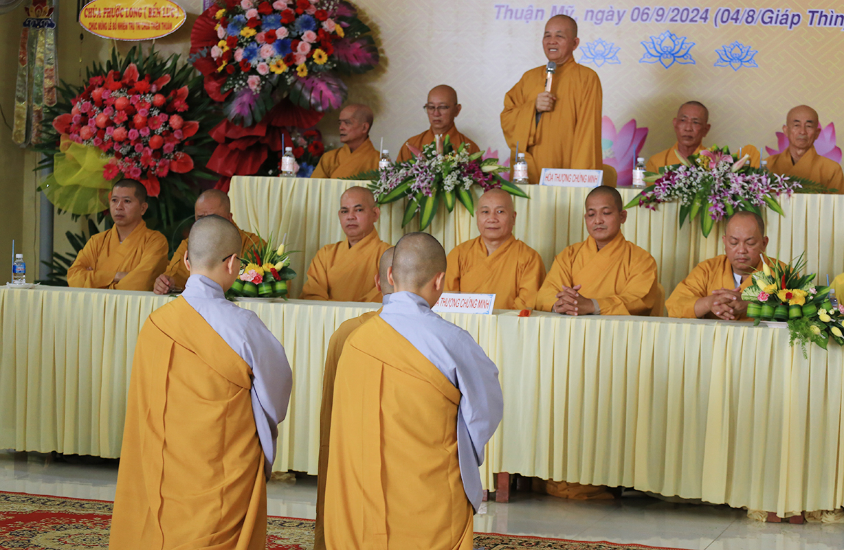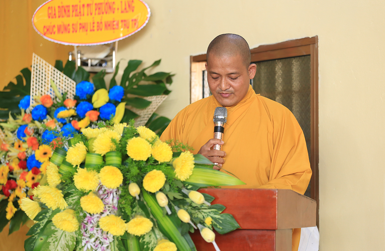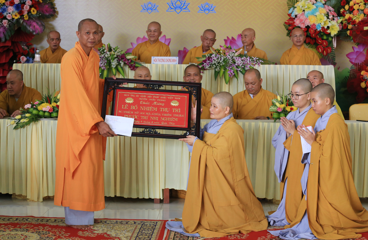 Đại đức Thích Lệ Duyên – Phó Trưởng ban kiêm Chánh thư ký BTS GHPGVN tỉnh Long An đã thay mặt Thường trực BTS GHPGVN tỉnh Long An tuyên đọc quyết định bổ nhiệm Sư cô Thích nữ An Hà giữ chức vụ Trụ trì Chùa Thiên Thuận.