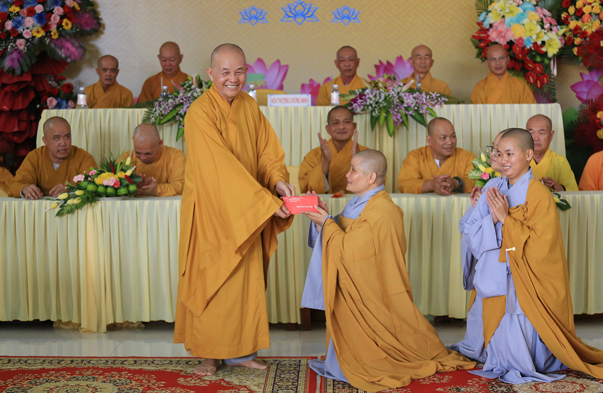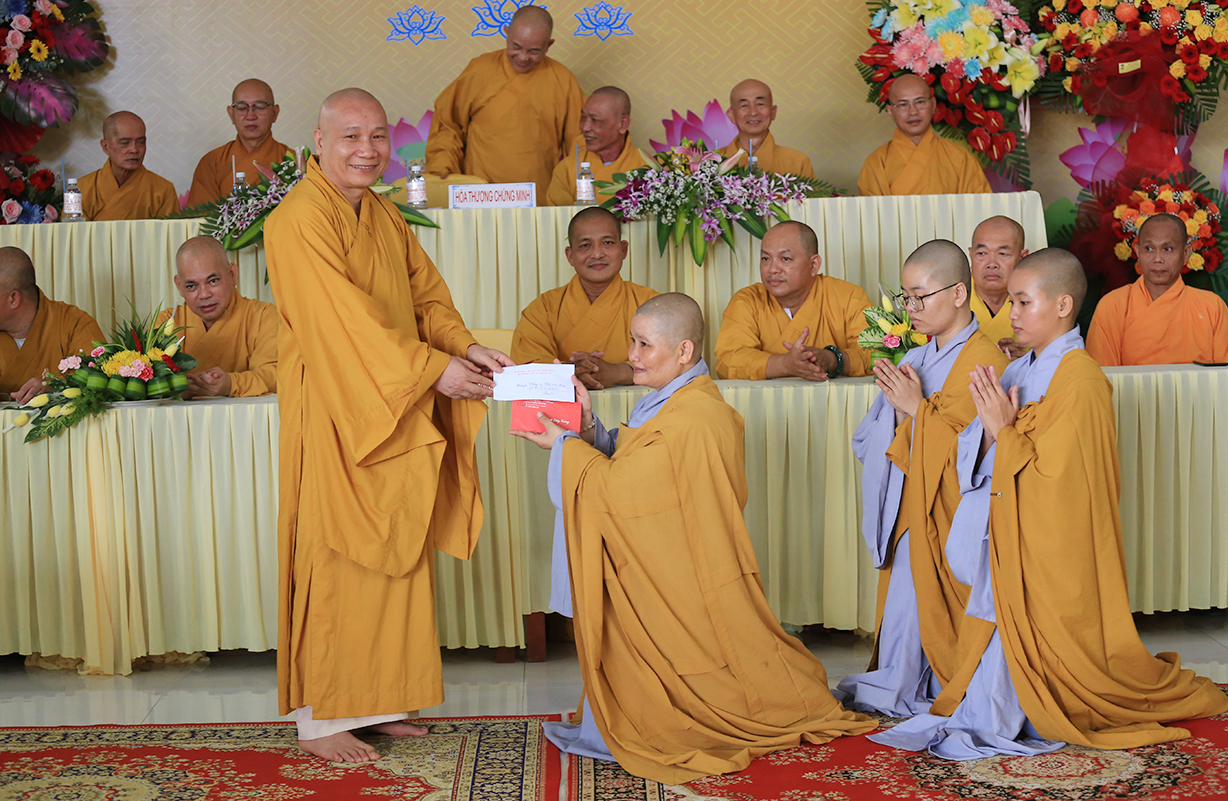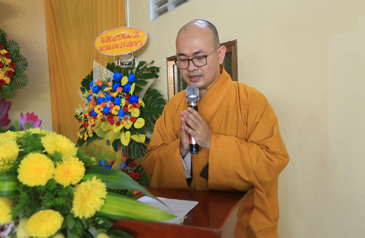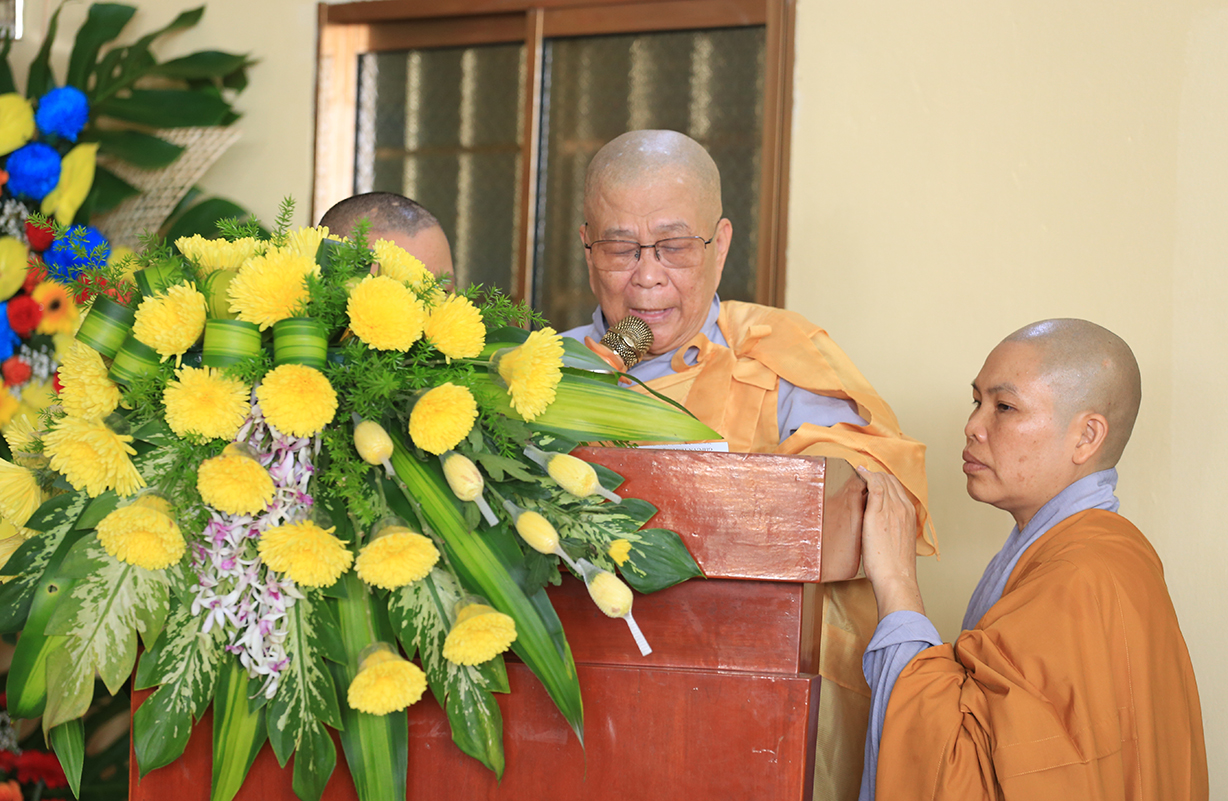 Đãi lao Chư tôn Hoà thượng chứng minh, HT. Thích Minh Thiện ban lời đạo từ tại buổi lễ. Hoà thượng mong Sư cô Tân Trụ trì cố gắng nỗ lực phụng sự Tam Bảo, Phải biết tri ân, báo ân Chư tổ bằng cách thừa hành Phật sự tốt giáo hội giáo phó, quản lý Tam bảo ngày càng phát triển “Hoằng Pháp vi gia vụ, lợi sanh vi bổn hoài” là trách nhiệm của người tu. Đối với tự thân và huynh đệ phải giữ gìn Giới, Định, Tuệ để phát triển tự thân, làm tròn nhiệm vụ, trách nhiệm đối với Đạo pháp và dân tộc.