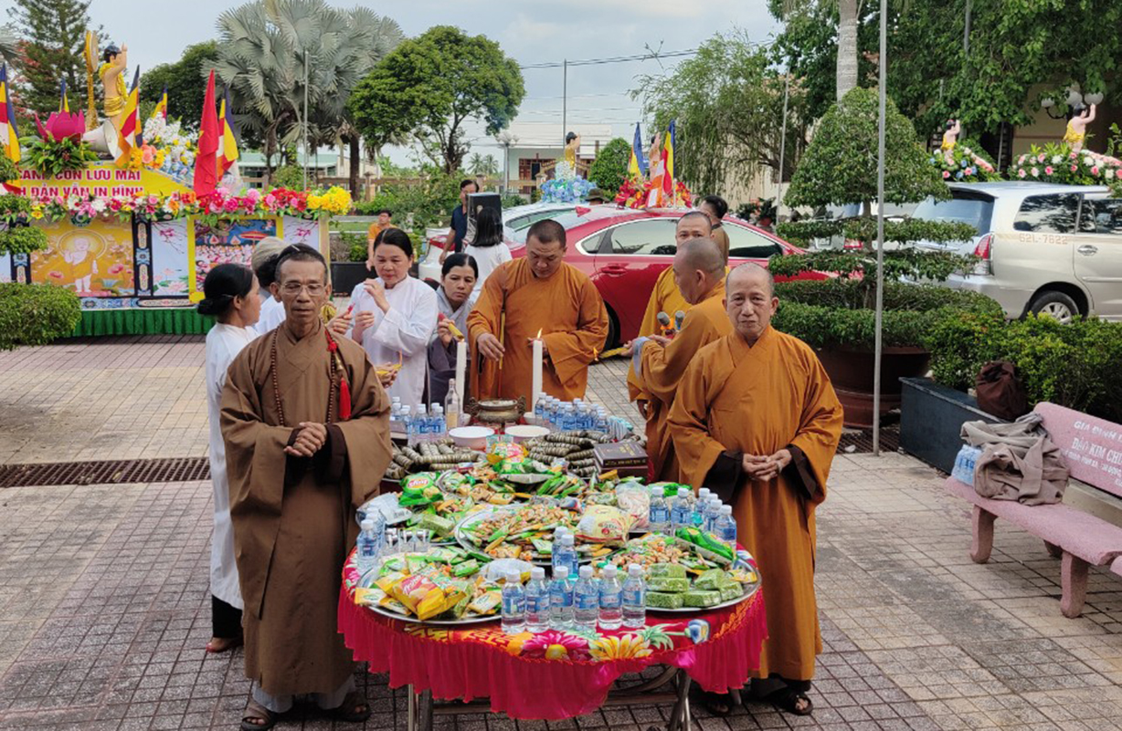 Tại đây, phái đoàn Phật giáo Châu Thành cùng với Quý Phật tử và thân nhân của các Anh hùng liệt sĩ với sự dẫn đầu của Đại Đức Thiện Danh đã đến dâng hoa và thắp hương tại Đài Tổ Quốc Ghi Công, lời trống hùng thiêng vang lên hòa cùng lời Tưởng Niệm, lời Kinh của Ban Nghi Lễ Phật Giáo tại Đền Liệt Sĩ trong Thời Khóa Mông Sơn Thí Thực như lời tri ân các Anh, các Chị, các Cô, các Chú đã ngã xuống vì nước quên thân, vì dân quên mình. Mảnh hình hài các Anh đã hòa quyện cùng hồn thiêng sông núi để Dân tộc đời đời nhớ ơn.