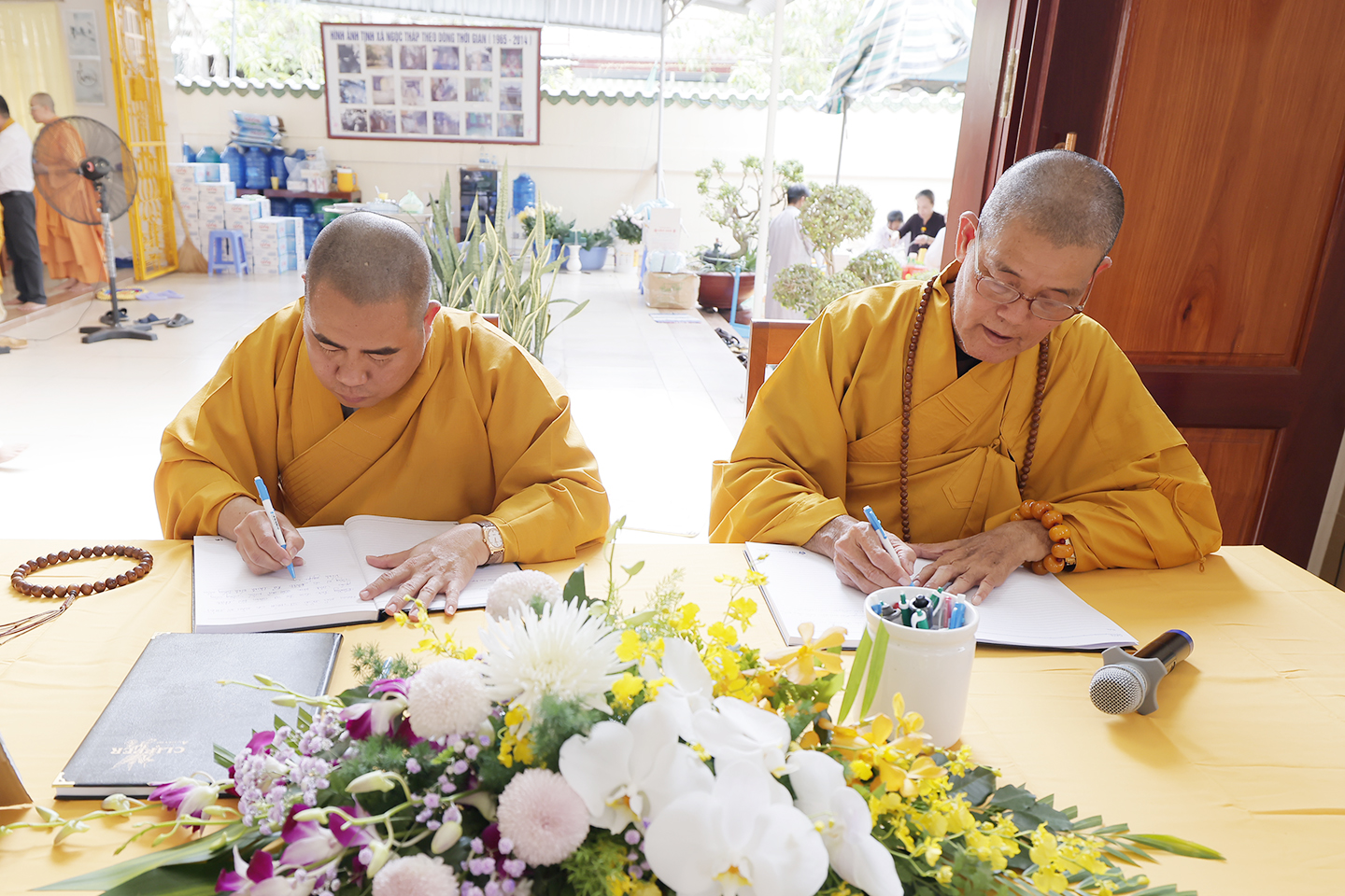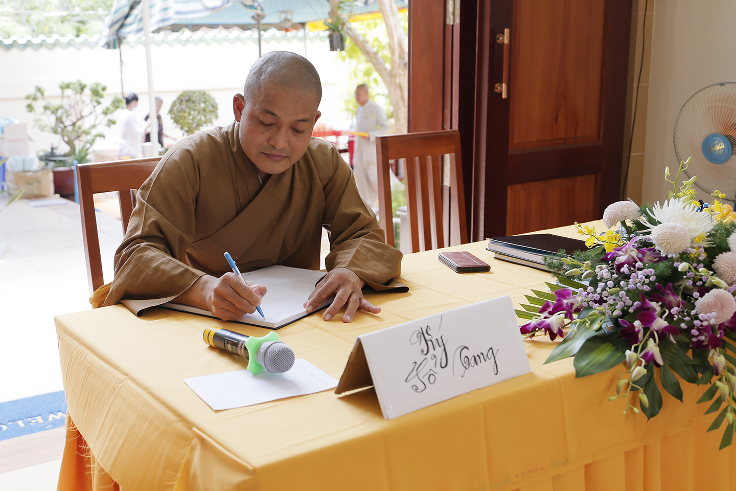 Với tấm chân tình cao cả ấy, phái đoàn hữu nhiễu kim quan cố Ni trưởng, sau đó đến bàn ký sổ tang, ghi lại đôi dòng lưu niệm tiễn biệt cố Ni trưởng Trụ trì Tịnh xá Ngọc Tháp.