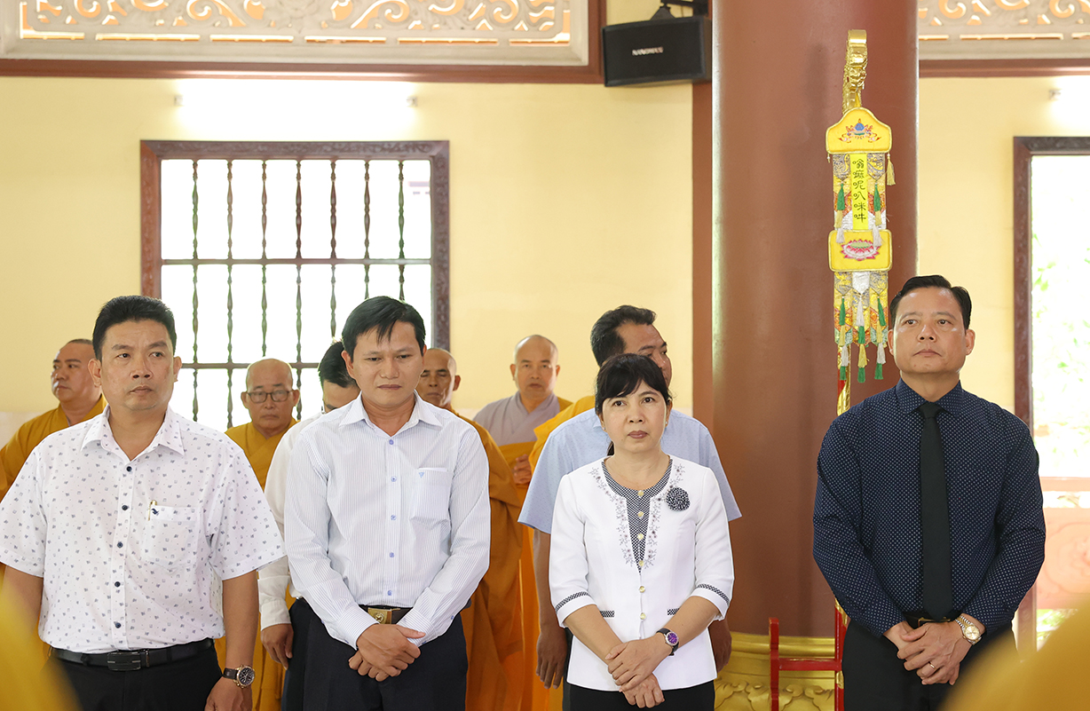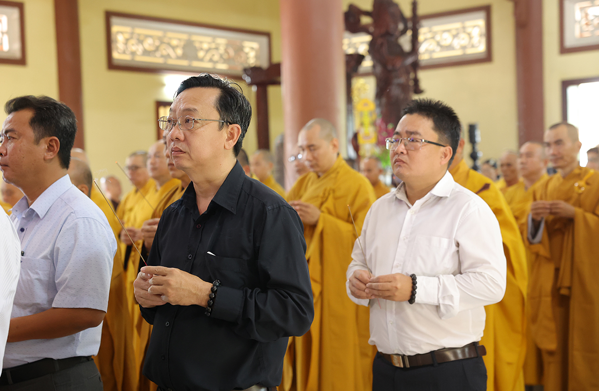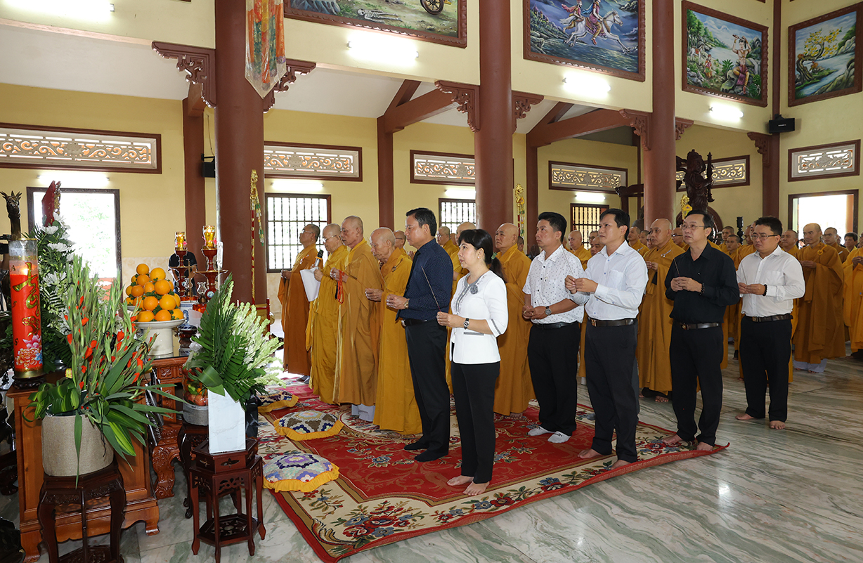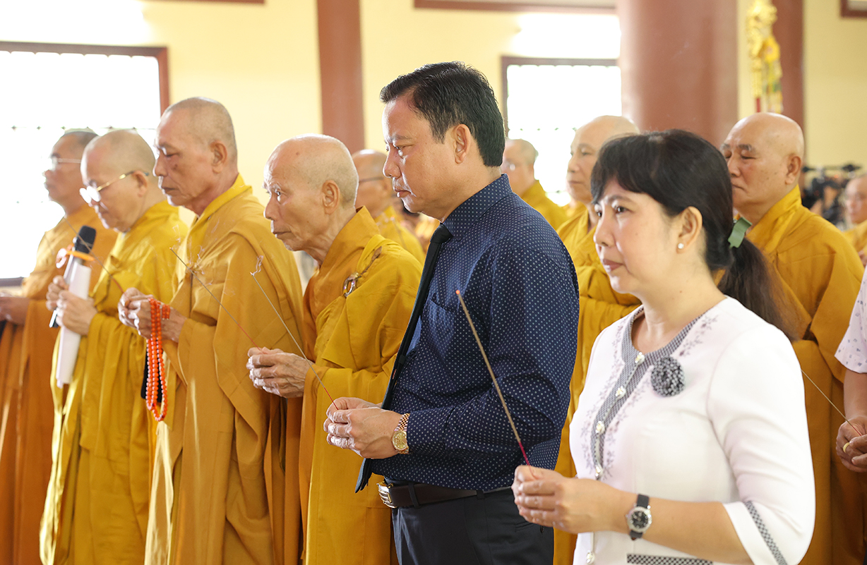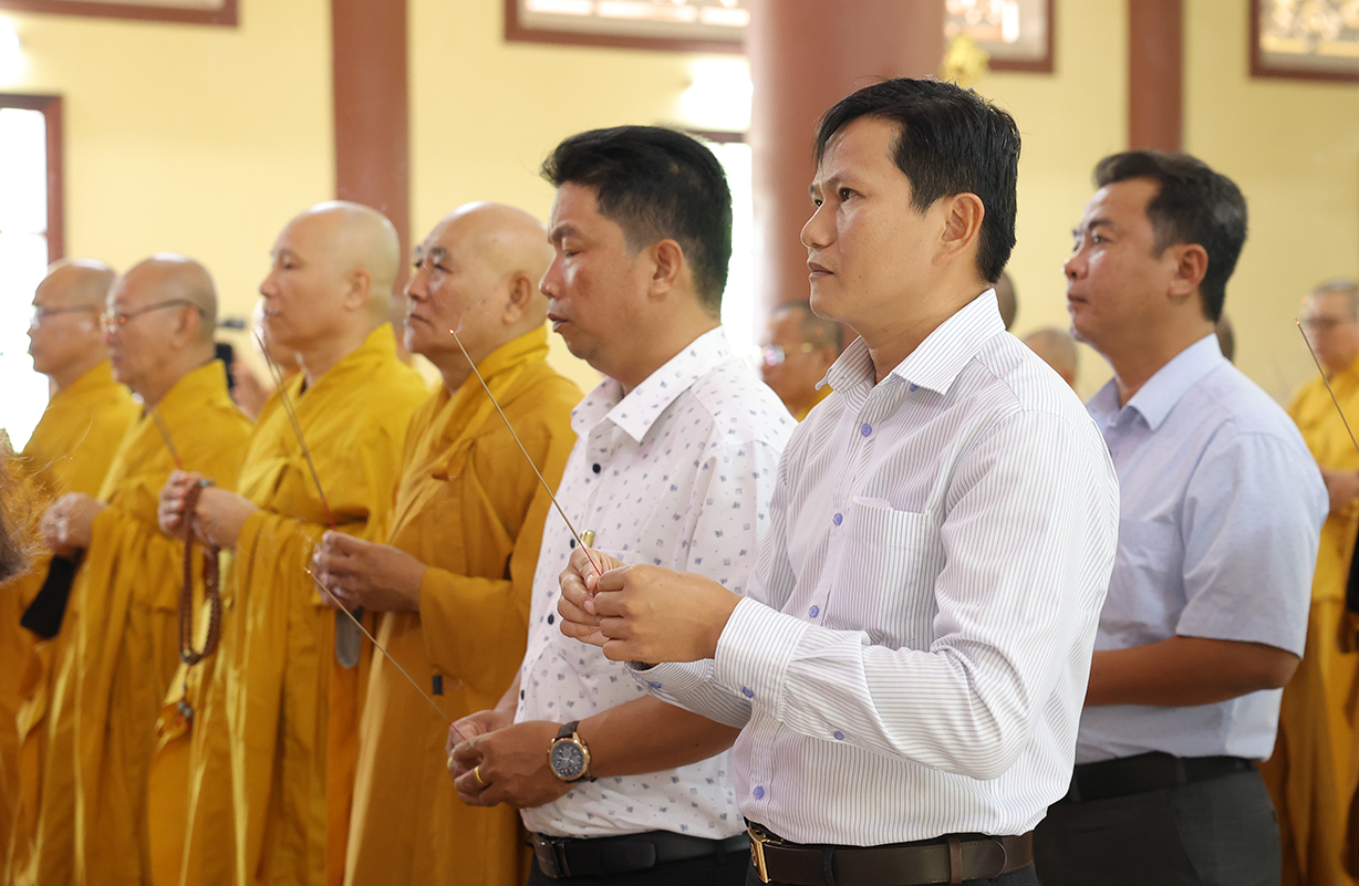 Tiếp đón, Chư tôn đưc và quý cấp lãnh đạo thực hiện nghi thức dâng hương tưởng niệm, tri ân công đức, tụng kinh cầu nguyện theo truyền thống của Phật giáo Việt Nam.