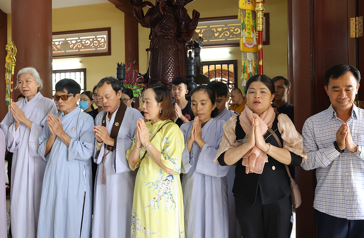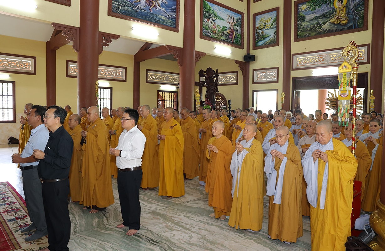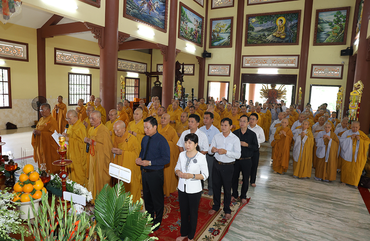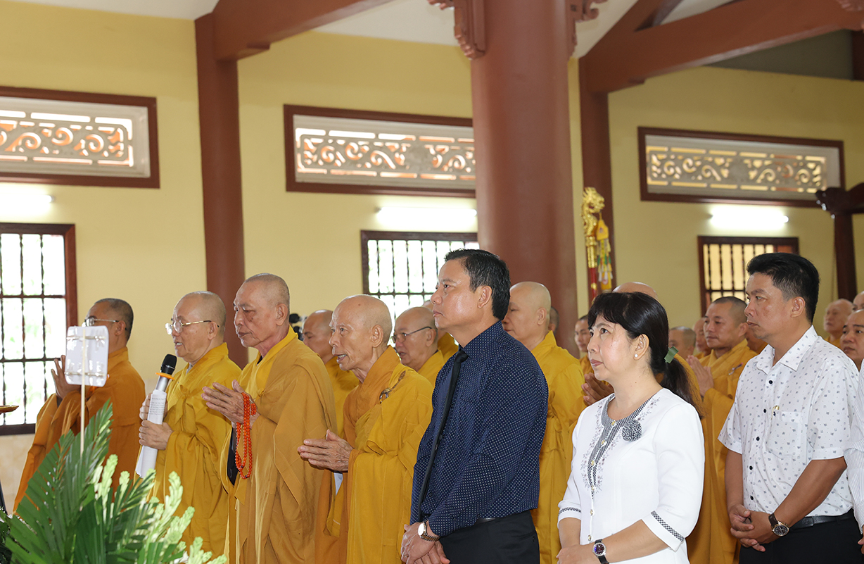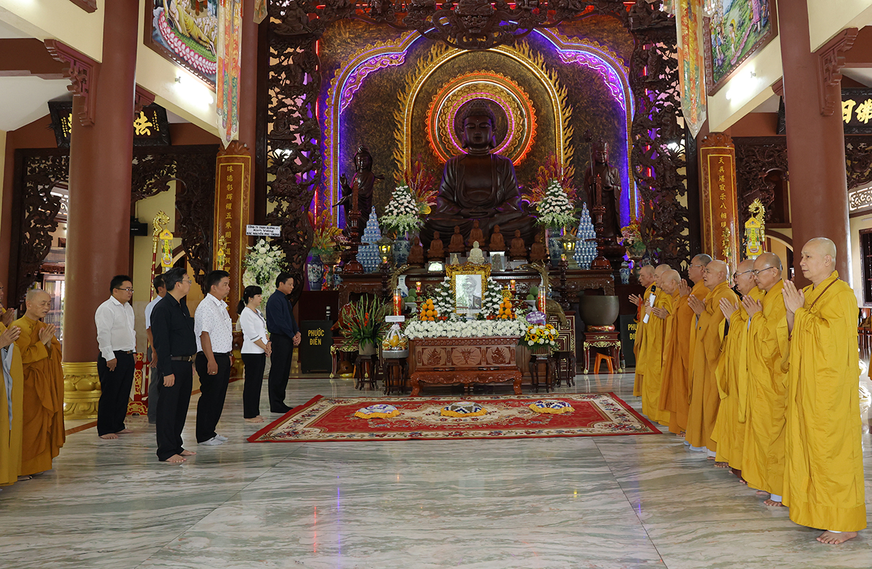 Tiếp đón, Chư tôn đưc và quý cấp lãnh đạo thực hiện nghi thức dâng hương tưởng niệm, tri ân công đức, tụng kinh cầu nguyện theo truyền thống của Phật giáo Việt Nam.