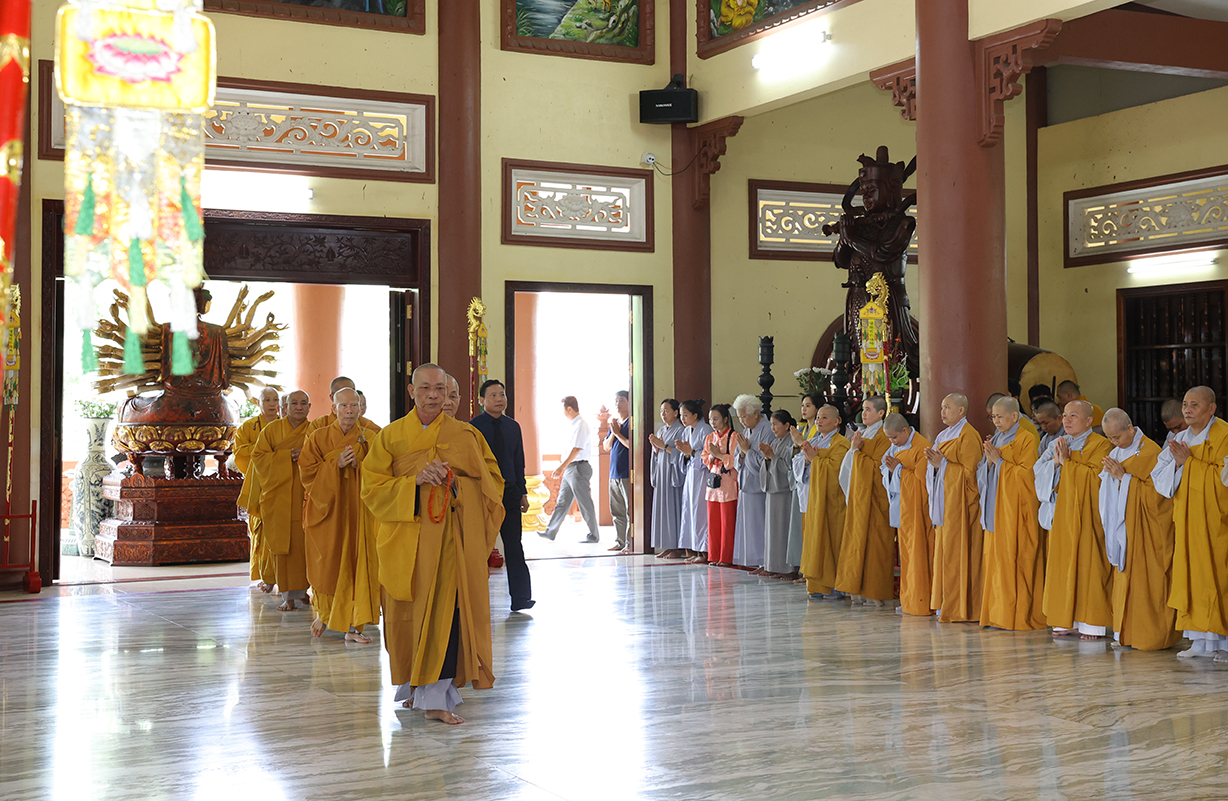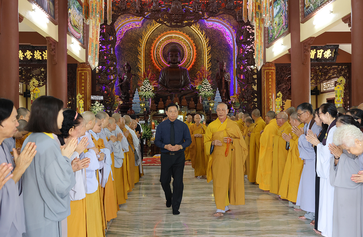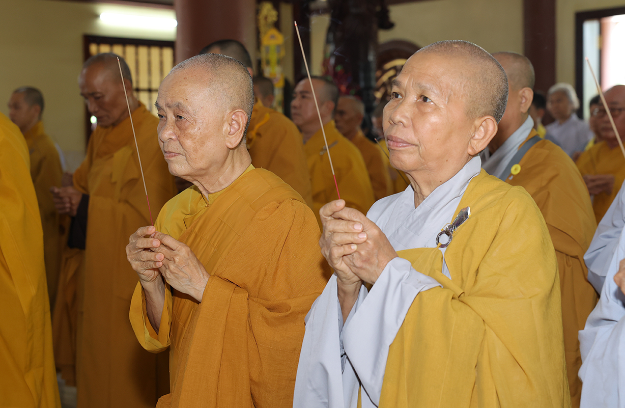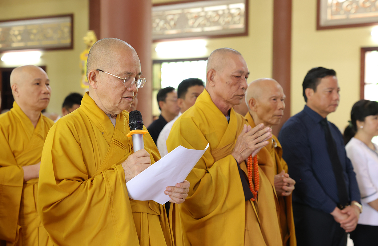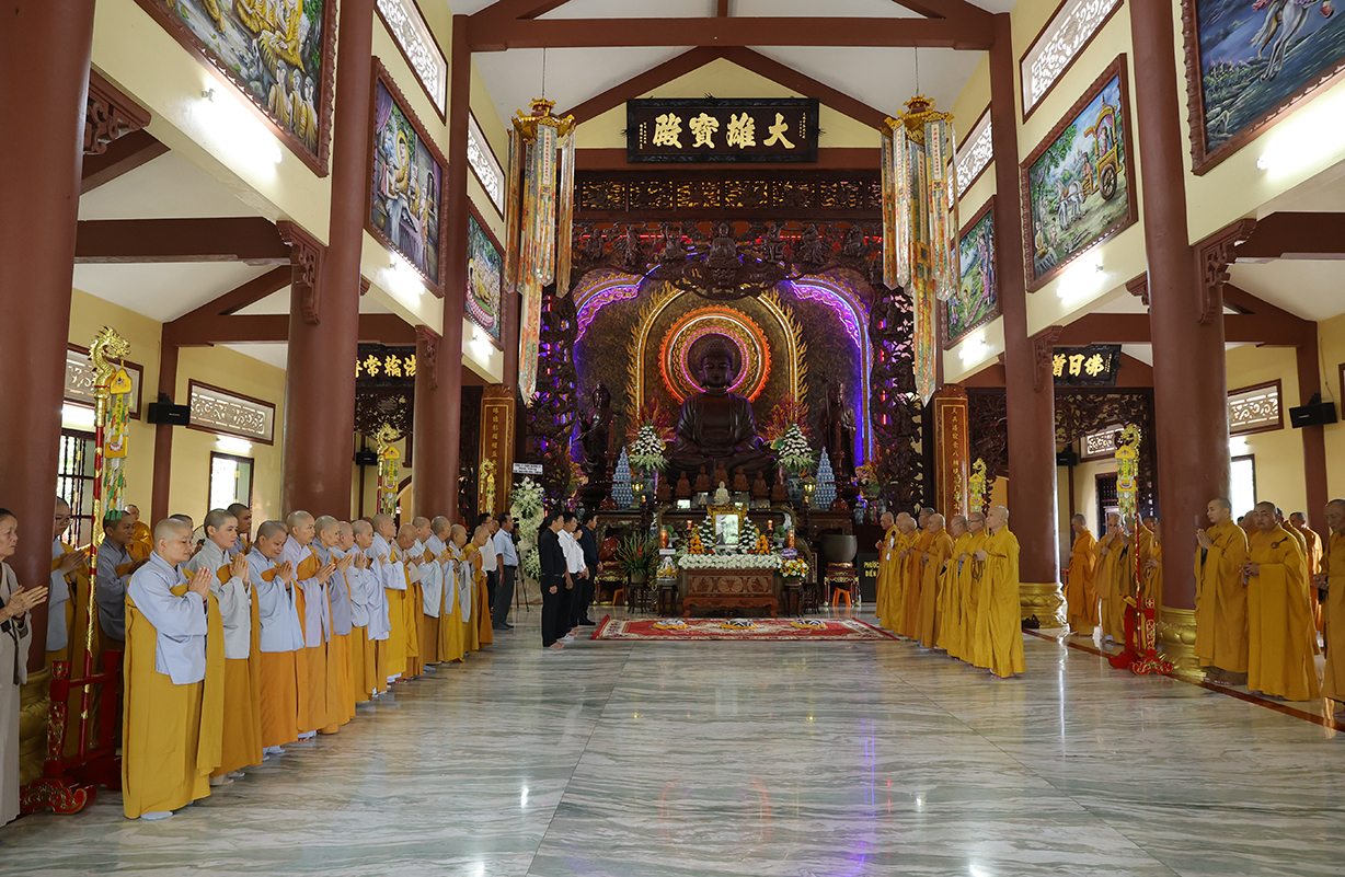 Tiếp đón, Chư tôn đưc và quý cấp lãnh đạo thực hiện nghi thức dâng hương tưởng niệm, tri ân công đức, tụng kinh cầu nguyện theo truyền thống của Phật giáo Việt Nam.