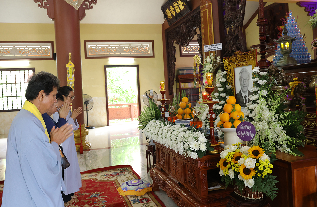 Từ tấm gương mẫu mực của Tổng Bí thư trong việc học tập và làm theo tư tưởng đạo đức, phong cách Hồ Chí Minh, Ban Trị sự Giáo hội Phật giáo Việt Nam tỉnh sẽ tiếp tục chia sẻ, động viên Tăng ni, Phật tử phát huy tinh thần “Hộ quốc an dân”, đồng hành cùng dân tộc trong khối đại đoàn kết, chăm lo công tác an sinh xã hội, vì cuộc sống bình yên, hạnh phúc của Nhân dân và xây dựng quê hương giàu đẹp.