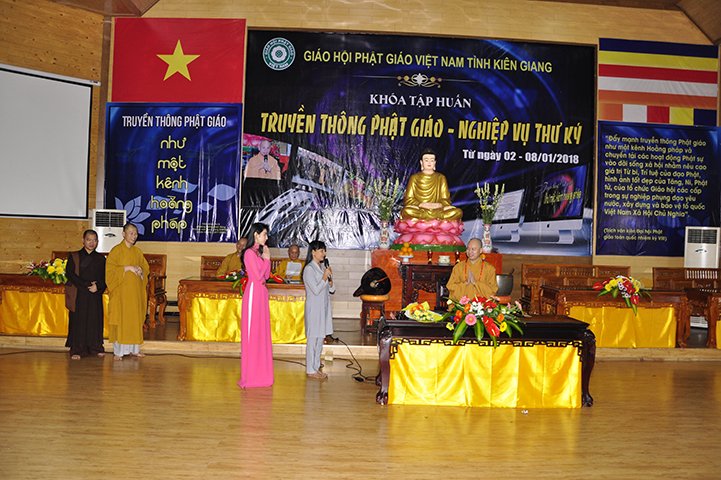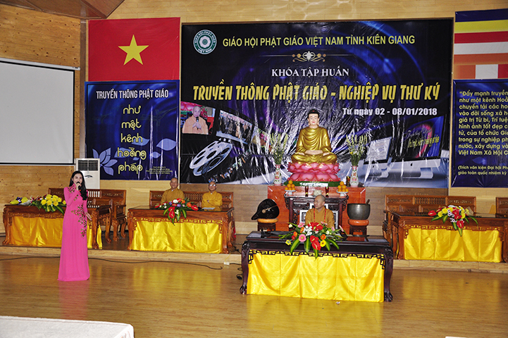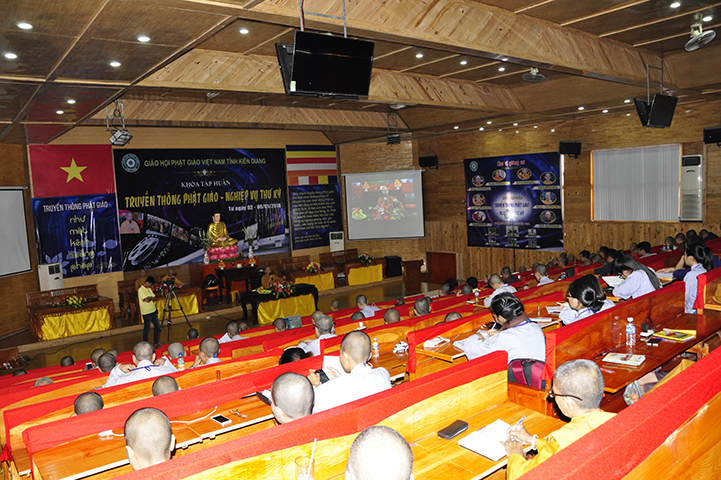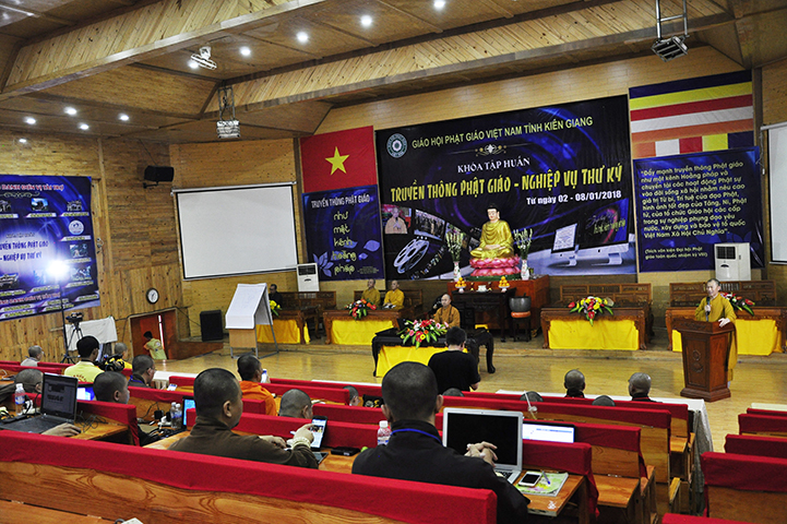 Thượng toạ đã có lời tán dương công đức TT TS Thích Minh Nhẫn, UV HĐTS, Phó trưởng ban hoằng pháp, Phó ban Thường trực BTS Phật giáo tỉnh Kiên Giang, Trưởng Ban Tổ chức đã tận tâm, nổ lực, cố gắng mở được khoá tập huấn này, và tỉnh Kiên Giang đã đi đầu tiên phong theo nghị quyết mục tiêu thứ 8 của Đại Hội về truyền thông Phật giáo, niềm vui của HĐTSTW GHPGVN được sự hưởng ứng đông đảo của các Ban trị Sự.