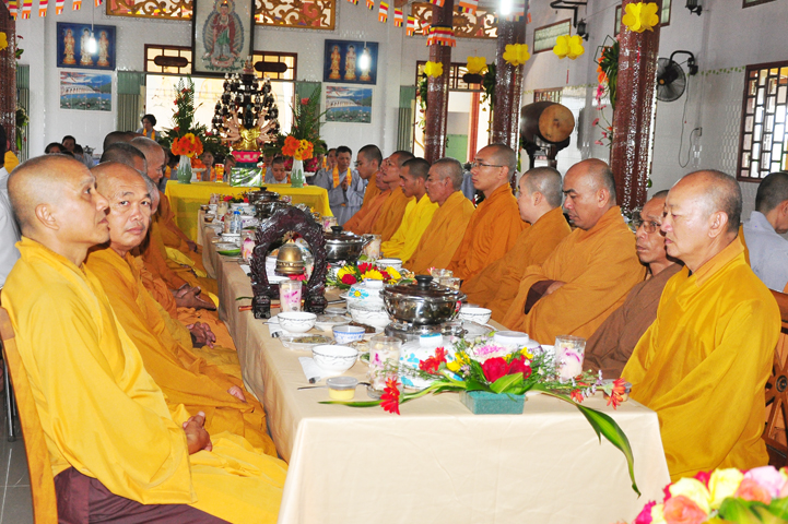 Chứng minh tham dự buổi lễ có Chư tôn đức giáo phẩm: HT. Thích Thiện Huệ- Chứng minh Ban trị sự GHPGVN tỉnh Long An; HT. Thích Thiện Tâm- Phó Ban trị sự GHPGVN tỉnh Long An; TT. Thích Quảng Tâm- Phó Ban trị sự GHPGVN tỉnh Long An; HT. THích Thiện Phú- Chứng minh Ban trị sự GHPGVN huyện Châu Thành, trụ trì chùa Long Hưng; TT. Thích Chơn Đạo- Giáo thọ Trường trung cấp Phật học tỉnh Long An; cùng Chư tôn đức Tăng Ni Giảng sư đoàn trong Ban Hoằng Pháp trung ương GHPGVN; Chư tôn đức thường trưc Ban trị sự tỉnh, huyện, thị, thành phố trong tỉnh về tham dự. Buổi lễ diễn ra trong không khí trang nghiêm.