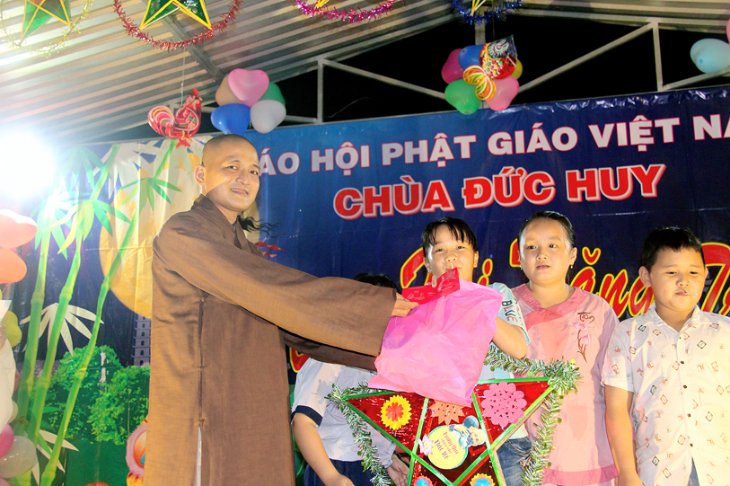 Đại đức  Thích Trí Huệ cho biết buổi sáng cùng ngày các em thiếu nhi từ các trường tiểu học trong xã Đức Lập Thượng về tham dự hội thi lồng đèn. Đại đức đã hướng dẫn đoàn  đến các điểm trường xã Hòa Khánh Nam; trường Tiểu học và mầm non xã Đức Lập Thượng tận tay  trao 1500 phần quà trung thu đến cháu thiếu nhi.