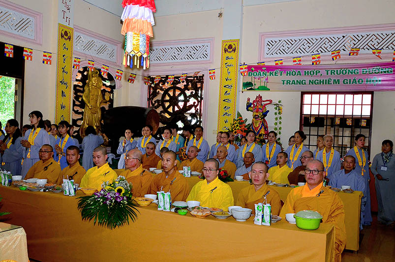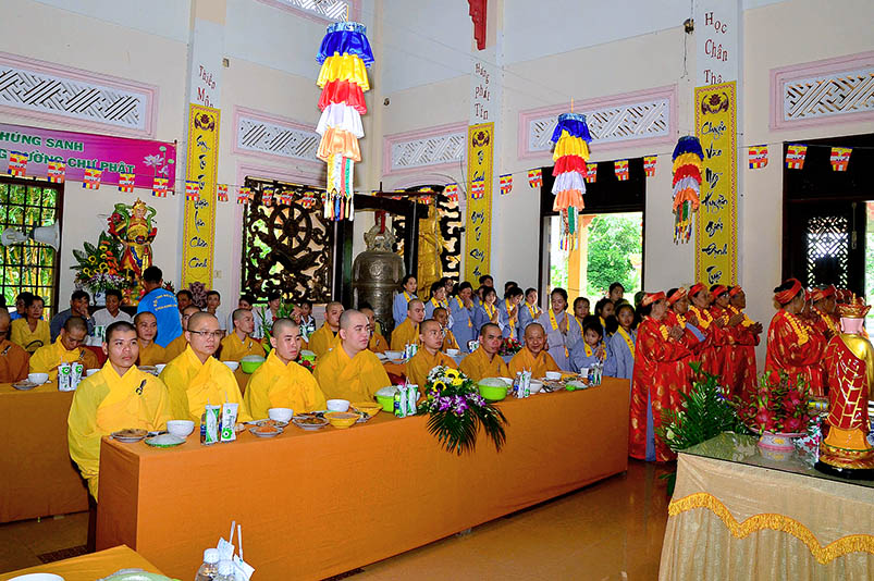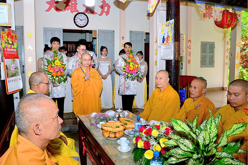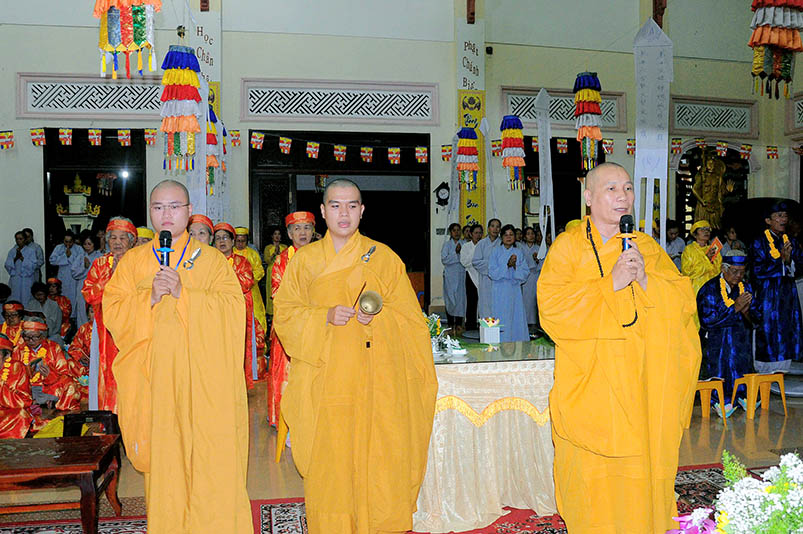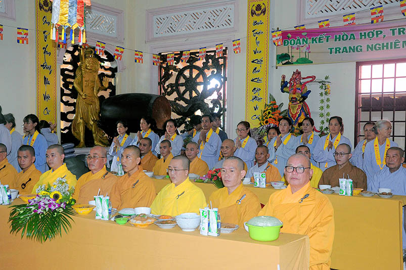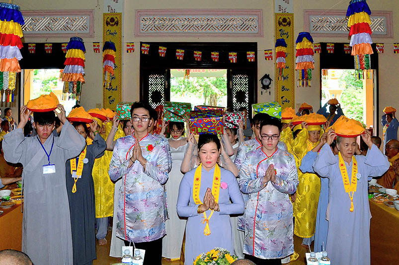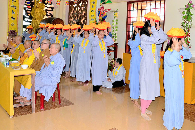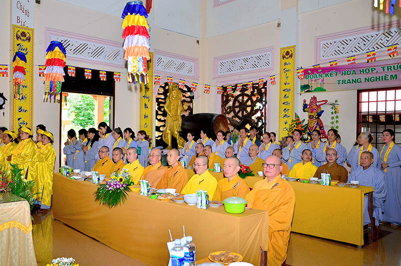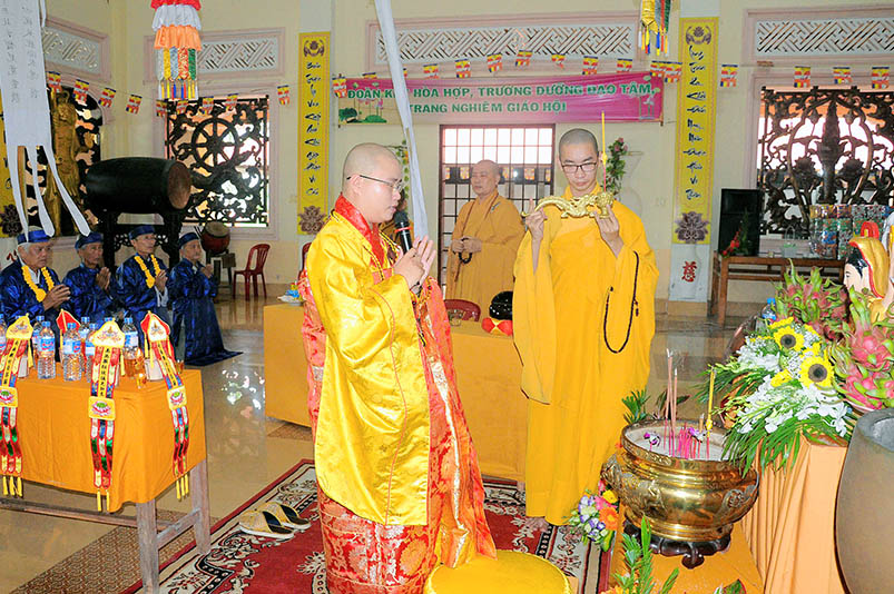 Buổi lễ với sự chứng minh của Đại đức Thích Đức Hoàng- Phó Ban Trị sự GHPGVN tỉnh Long An, trụ trì chùa Hưng Long cùng Chư tôn đức hành giả an cư hai trú xứ Thiên Châu, Thiên Khánh.