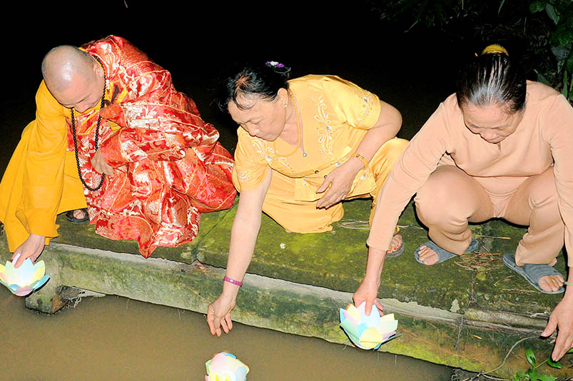 Đức Hòa: Đêm hoa đăng kính vía Đức Phật A Di Đà tại chùa Linh Nguyên