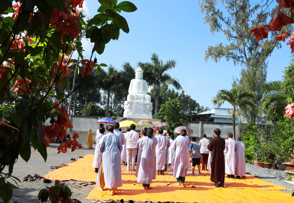 Tôn tượng Đức Phật Thích Ca Mâu Ni được chế tác từ chất liệu đá, với tư thế tọa thiền trên tòa sen có chiều cao 5m, nặng 25 tấn, đáp ứng nhu cầu lễ bái cho thập phương bá tánh và tạo cảnh quan khuôn viên tổ đình thêm trang trọng, tôn nghiêm./.