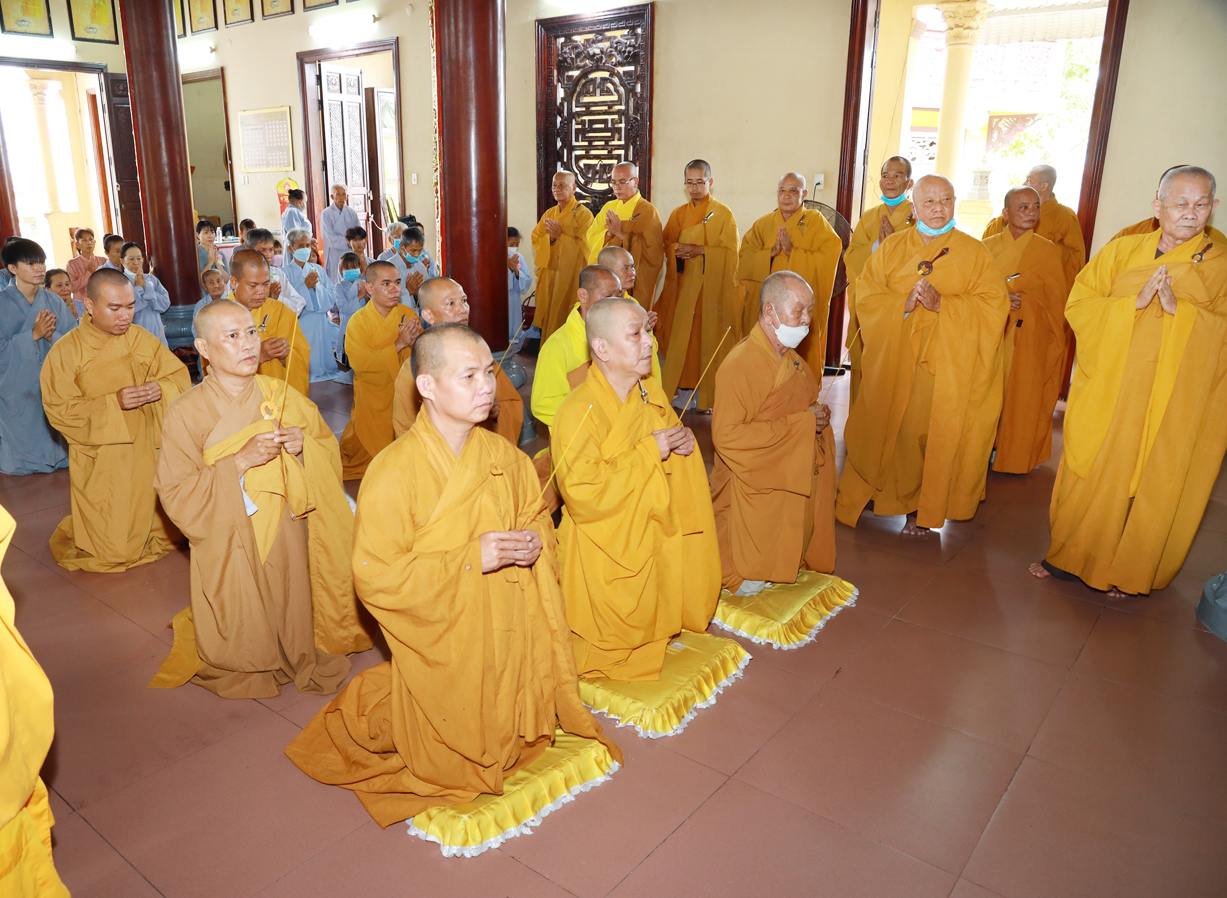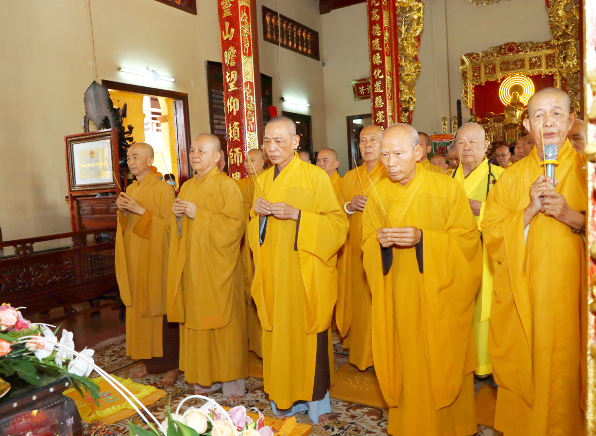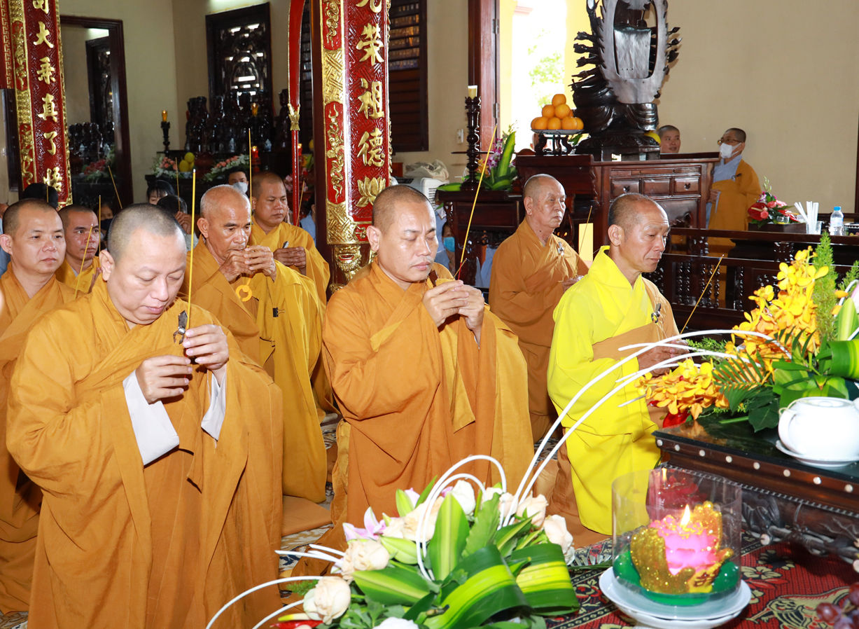 Mở đầu buổi lễ, Chư tôn đức quang lâm Giác linh đường dâng hương tưởng niệm cố Hòa thượng Thích Tắc Ngộ. Theo tiểu sử, Hòa thượng Thích Tắc Ngộ – Nguyên UV HĐTS, Nguyên Phó ban Nghi lễ TW, Nguyên Phó ban Trị sự kiêm Trưởng ban Nghi lễ GHPGVN tỉnh Long An, Nguyên Trụ trì Tổ đình Kim Cang. Hòa thượng sinh năm 1953, thế danh Nguyễn Thanh Tùng, pháp danh Lãng Giác, pháp tự Tắc Ngộ. Xuất thân trong gia đình trung nông, một lòng kính tin tam bảo tại xã Tân Trạch, huyện Cần Đước, tỉnh Long An. Năm 16 tuổi, quy y Tam bảo với Ni trưởng Đạt Thử tại chùa Pháp Đàn, về sau xuất gia với Hòa thượng Đạt Đồng tại chùa Tôn Thạnh. Năm 1970, thọ giới Sadi tại chùa Hội Long, năm 1972 thọ giới cụ túc tại chùa Ấn Quang. Năm 1977, tham học với nhiều bậc cao tăng thạc đức tại chùa Ấn Quang như: HT Huệ Hưng, HT Huyền Quang, HT Quảng Liên, HT Minh Châu,… Năm 1979 được mời đảm nhiệm Tổng giám thị Phật học viện Thiện Hòa. Năm 1981, sau khi Phật giáo thống nhất, Hòa thượng được mời đảm nhiệm phụ trách Ban Đại Diện Phật giáo liên phường của quận 10, về sau là Chánh thư ký Ban Đại diện Phật giáo Quận 10.