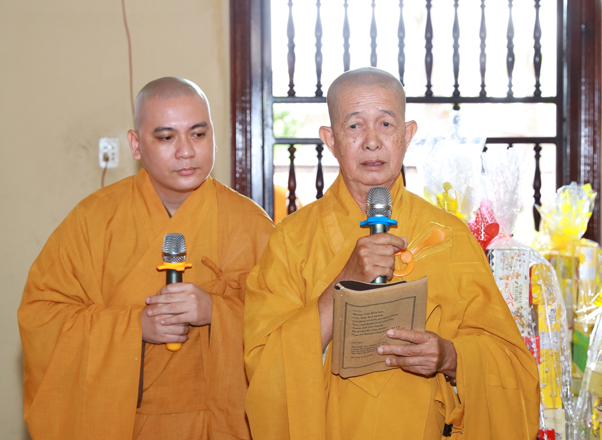 Trong giây phút thiêng liêng hoài cảm đầy xúc động ấy, Đại đức Thích An Nhựt – Trưởng ban Hướng dẫn Phật tử GHPGVN tỉnh Long An, Trưởng ban Trị sự GHPGVN huyện Thủ Thừa đã thay mặt môn đồ pháp quyến kính dâng lời tác bạch hoài niệm ân sư và cúng dường chư tôn đức.