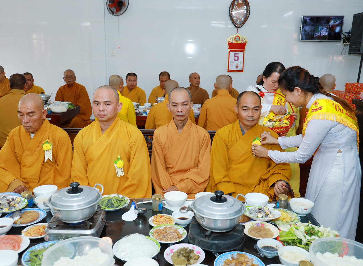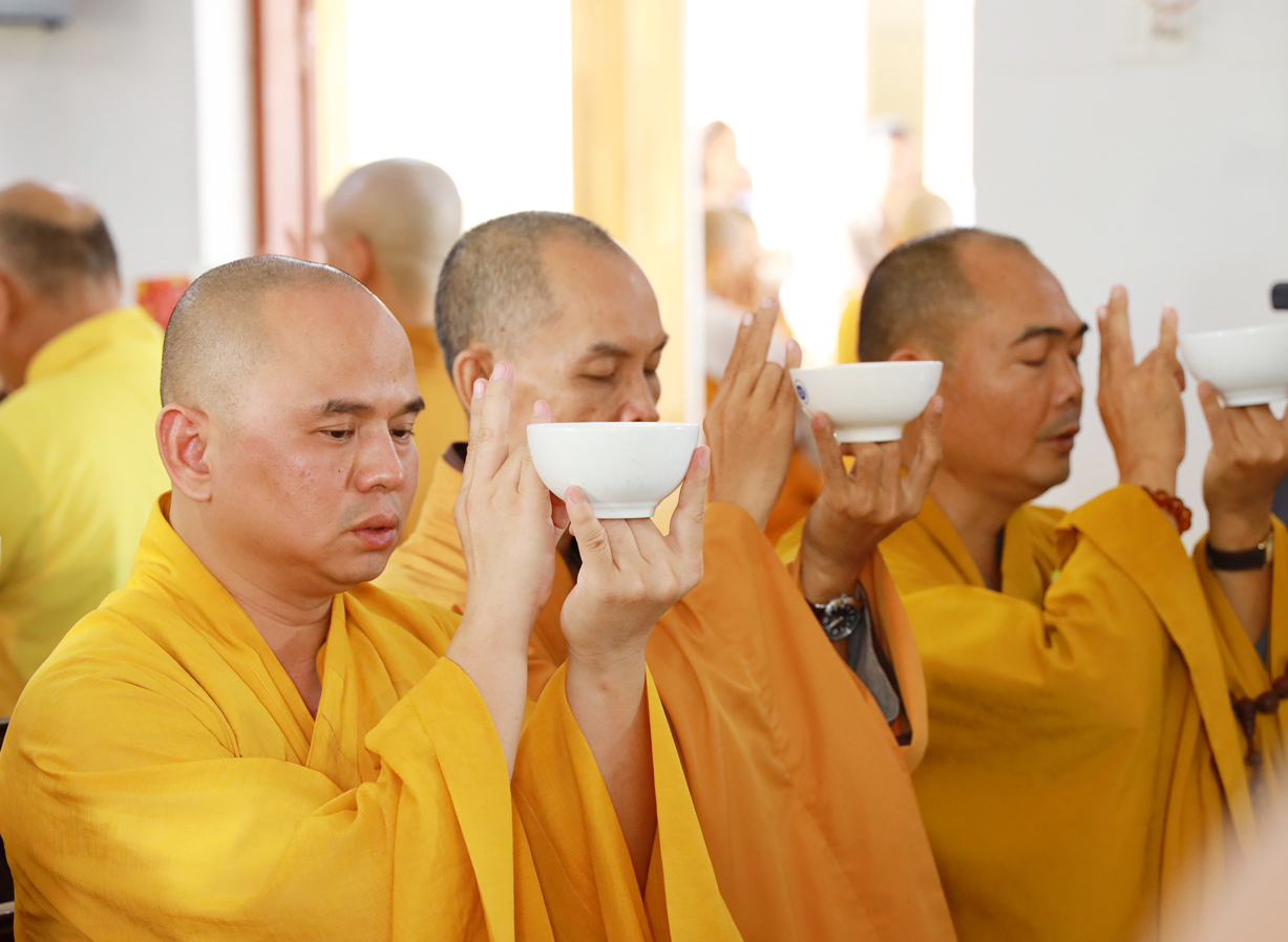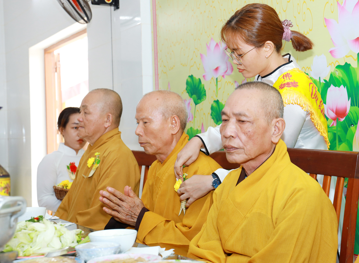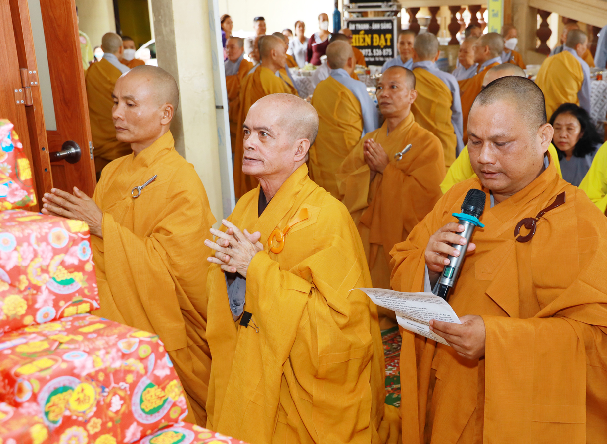 Sau nghi thức dâng hương tưởng niệm, nguyện cầu Giác Linh thượng phẩm sen vàng, sanh ngôi Bất thoái vào hàng Phật môn. Tiếp đó, Ban nghi lễ cung thỉnh quý Ngài quang lâm trai đường, tiến hành nghi thức Vu Lan Báo Hiếu, cài hoa hồng tưởng niệm bốn ân.