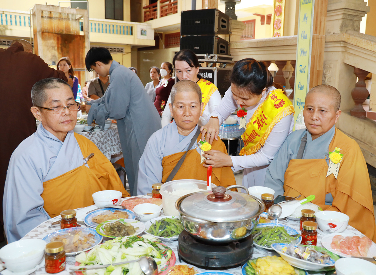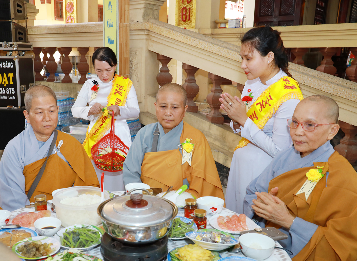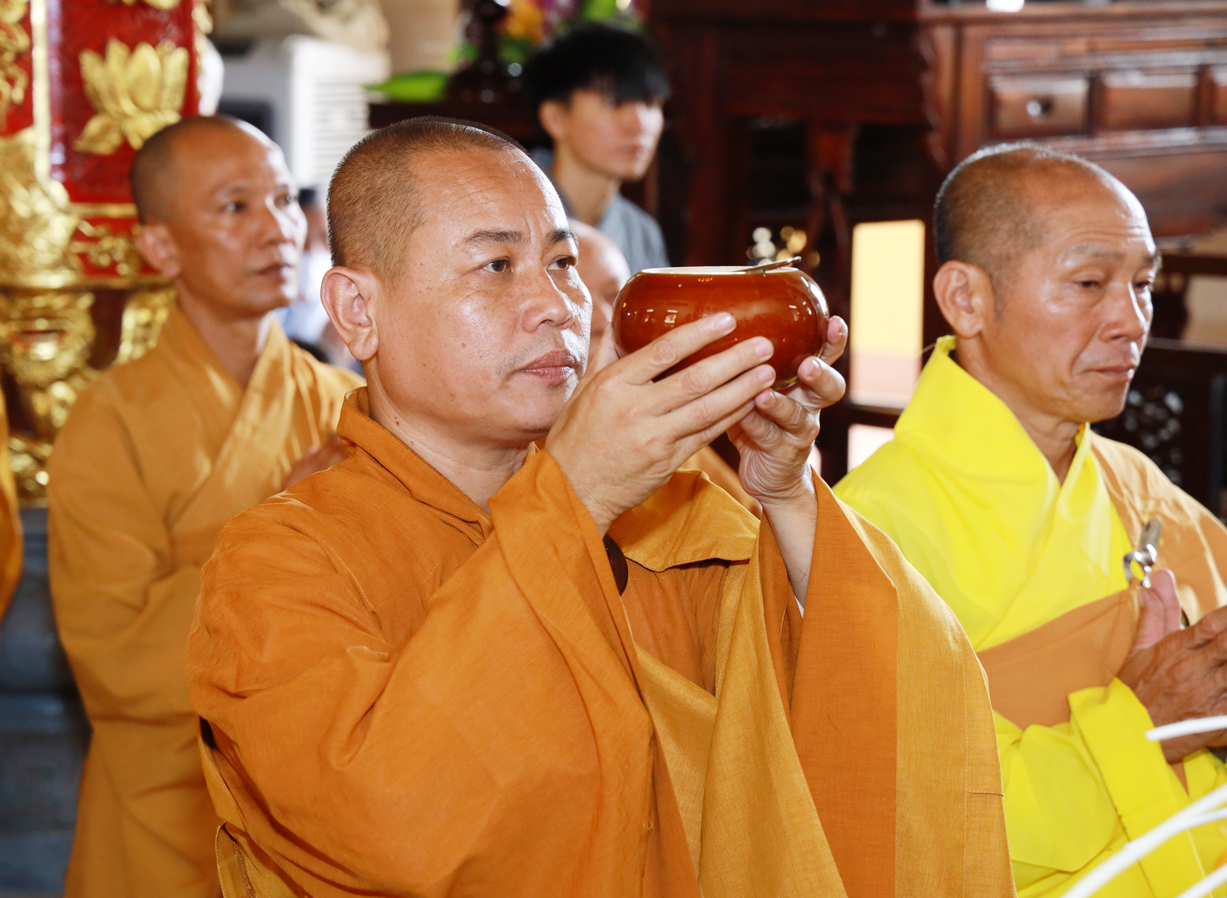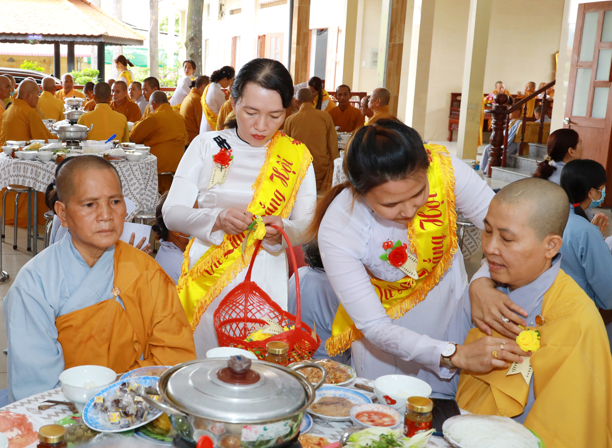 Sau nghi thức dâng hương tưởng niệm, nguyện cầu Giác Linh thượng phẩm sen vàng, sanh ngôi Bất thoái vào hàng Phật môn. Tiếp đó, Ban nghi lễ cung thỉnh quý Ngài quang lâm trai đường, tiến hành nghi thức Vu Lan Báo Hiếu, cài hoa hồng tưởng niệm bốn ân.