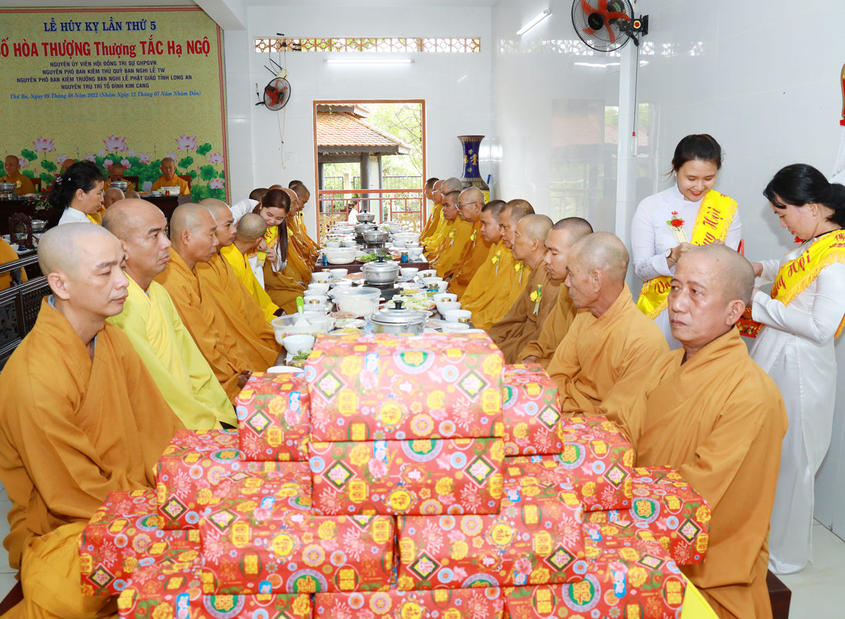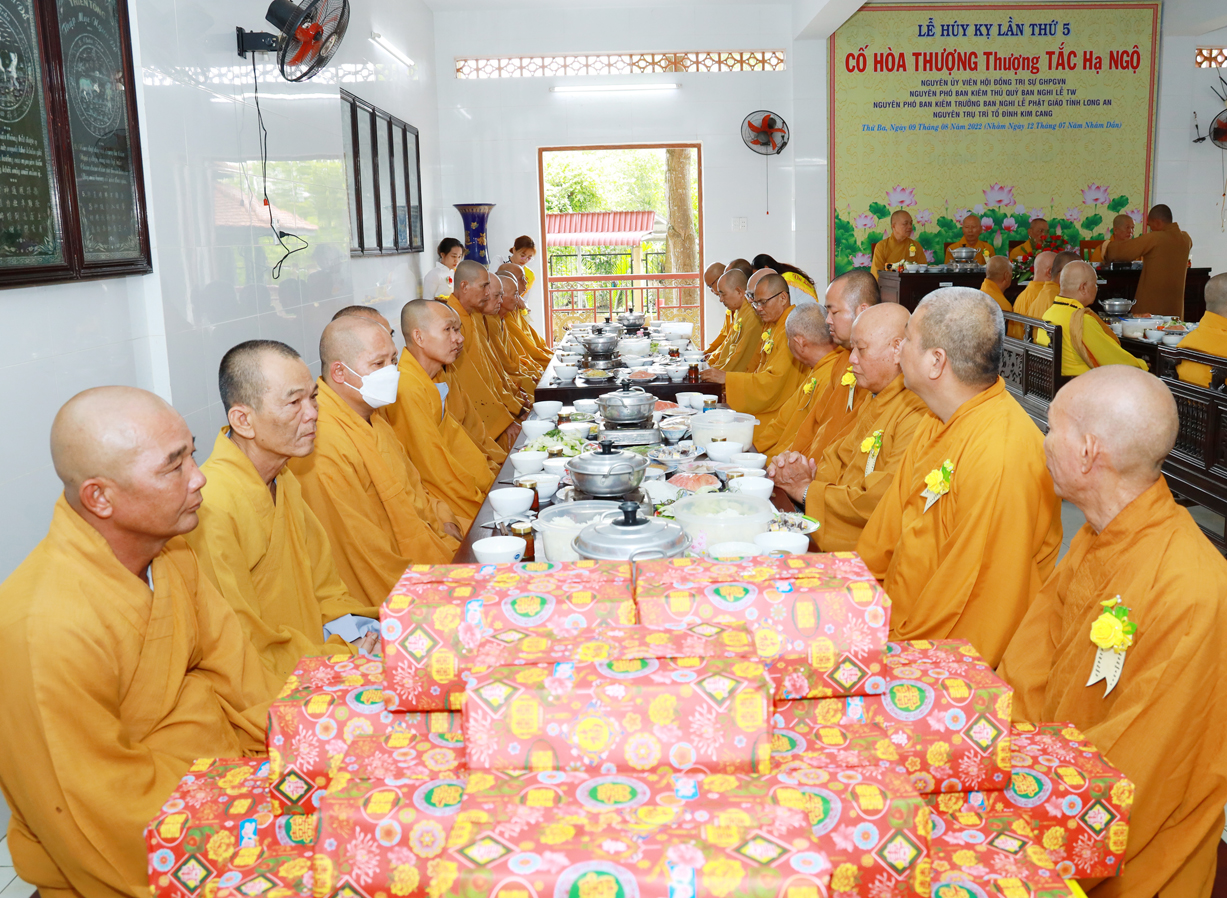 Sáng ngày 09 tháng 8 năm 2022 (nhằm ngày 12/7/Nhâm Dần) tại Văn phòng BTS GHPGVN huyện Thủ Thừa – Chùa Kim Cang, ấp Bình Cang 1, xã Bình Thành, huyện Thủ Thừa, BTS GHPGVN tỉnh Long An, BTS GHPGVN huyện Thủ Thừa kết hợp môn đồ pháp quyến long trọng tổ chức Lễ Húy Kỵ Lần Thứ 5 Cố Hòa Thượng Thích Tắc Ngộ