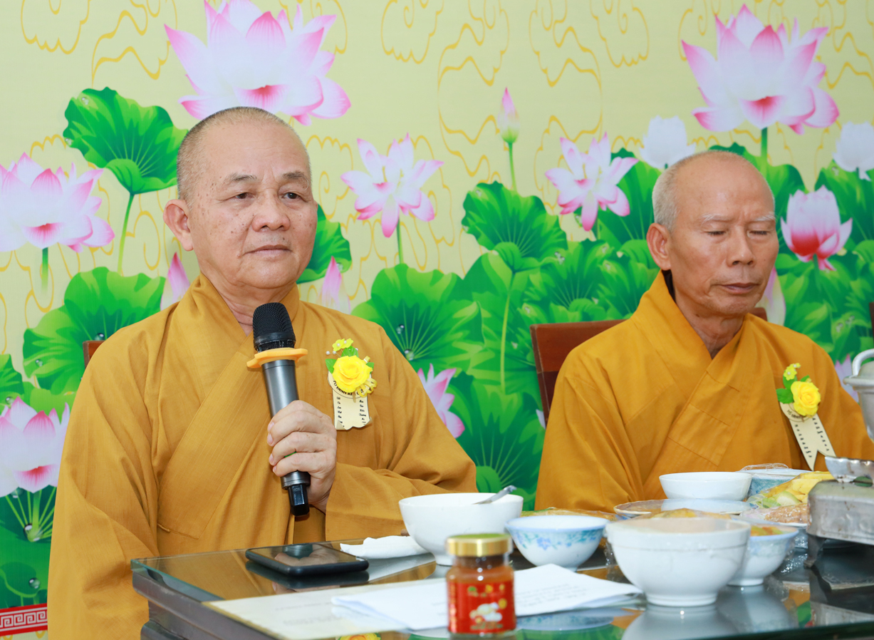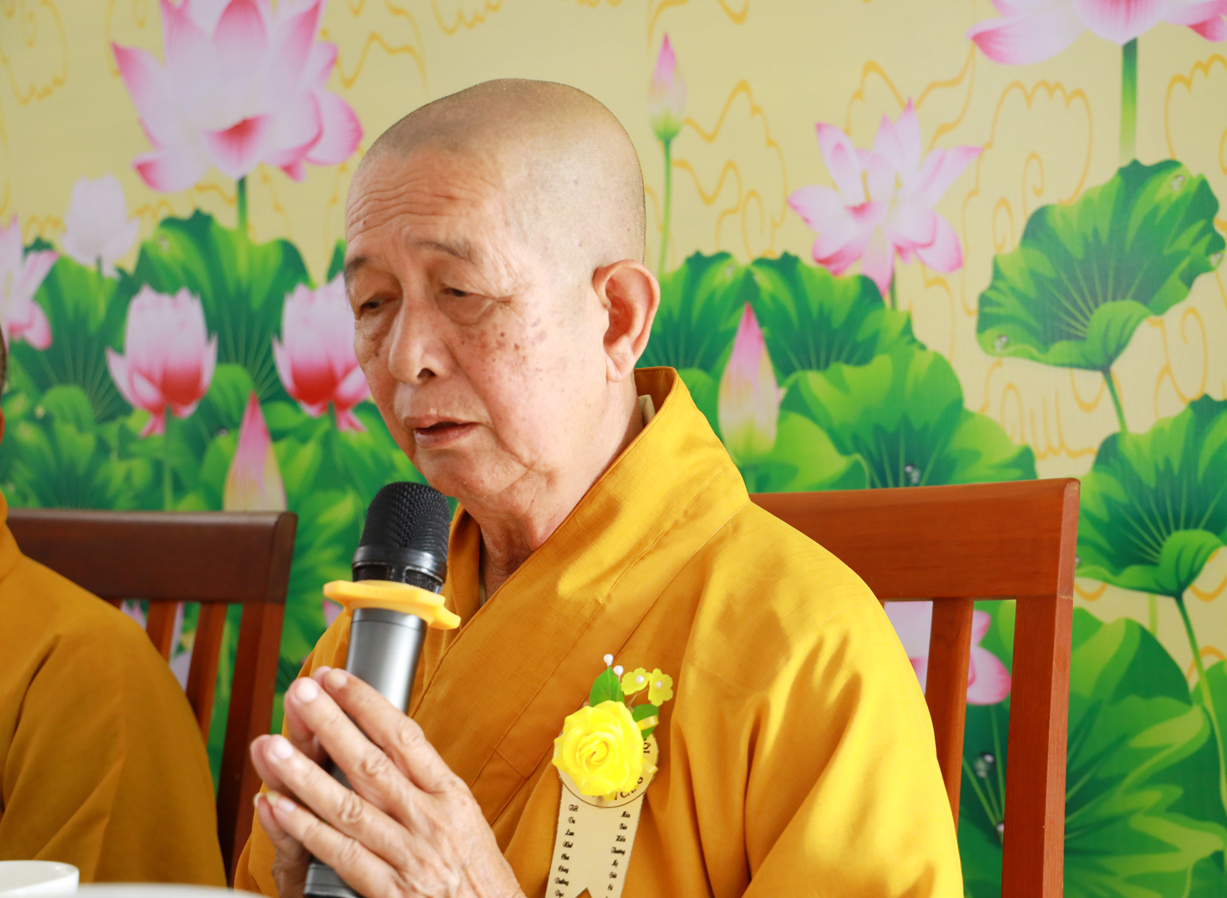 Đạo từ tại buổi lễ, Hòa thượng Thích Minh Thiện tán thán công đức và tinh thần hiếu hạnh của hàng môn đồ pháp quyến cùng quý đạo tràng Phật tử. Đã 5 mùa an cư kiết hạ trôi qua nơi Hạ trường Kim Cang vắng bóng Tôn sư – một vị tôn túc giáo phẩm đạo cao, đức trọng luôn hết lòng chăm lo Phật sự. Hòa thượng nhắc nhở hàng môn đồ pháp quyến việc thiết thực nhất để đền đáp công ơn Thầy Tổ, thể hiện đạo tâm đạo hạnh là cần phải đoàn kết, phát triển chăm lo sự nghiệp của Thầy mình, hãy sống theo tinh thần hoà hợp; sống đúng với “Lục hoà cộng trụ” như lời Phật dạy. Hòa thượng tán thán và ghi nhận công đức Chư Tăng và Phật tử Tổ đình Kim Cang đã tiếp nối hạnh nguyện của cố Hòa thượng thông qua việc phát tâm ủng hộ, tạo điều kiện để khóa Bồi Dưỡng Trụ Trì và Hành Chính Giáo Hội, Lễ Tổng Khai Giảng và Bế Giảng Khóa An Cư Kiết Hạ năm 2022 được thành công tốt đẹp. Cuối lời, Hòa thượng gửi lời kính chúc vạn sự an lạc kiết tường đến quý Phật tử hiện diện và tất cả gia đình. Kỳ nguyện chư hương linh đã quá vãng nơi oai thần tam bảo và sức chú nguyện của chư Tăng mà được sanh về cảnh giới an lành. Trước khi dứt lời, Hòa thượng cung thỉnh chư Tôn đức đồng niệm Phật chứng minh cho đạo tràng tứ chúng và chư tín chủ hiện tiền được viên tròn hiếu sự.