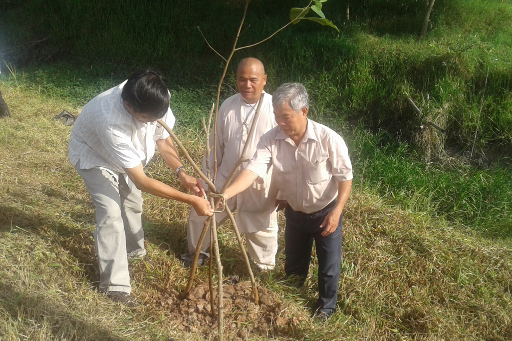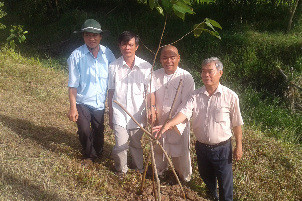 Ông Nguyễn Văn Thích – Bí thư Chi bộ ấp 4; Ông Lê Văn Hiếu – Trưởng ban quản lý ấp 4 Cùng hơn 50 Phật tử tham gia buổi lễ.