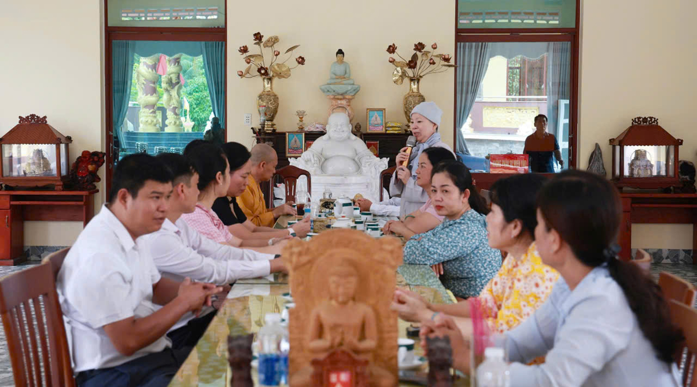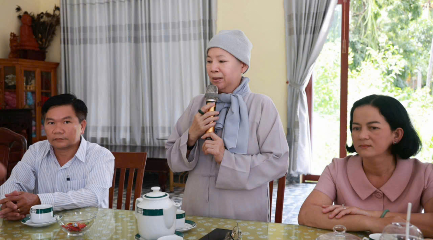 Tham dự buổi phát quà có: TT Thích Nghiêm Đạo- phó thư ký Chánh văn phòng BTSGHPGVN tỉnh Tây Ninh; Sư cô TN Hạnh Linh- Trụ trì chùa Linh Nghĩa Diệu Pháp.