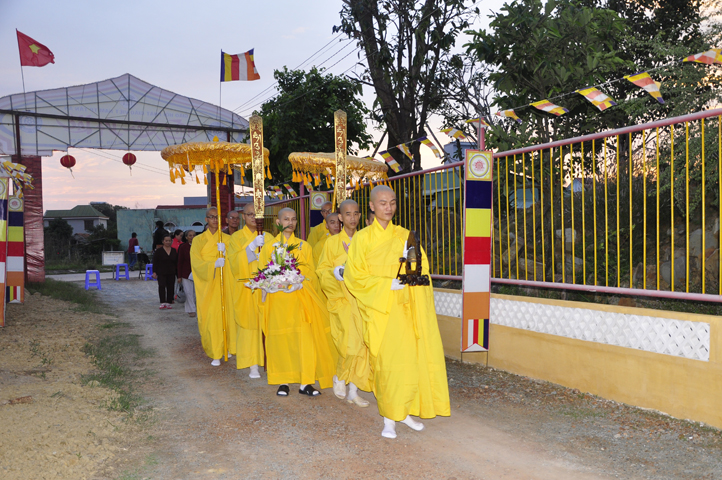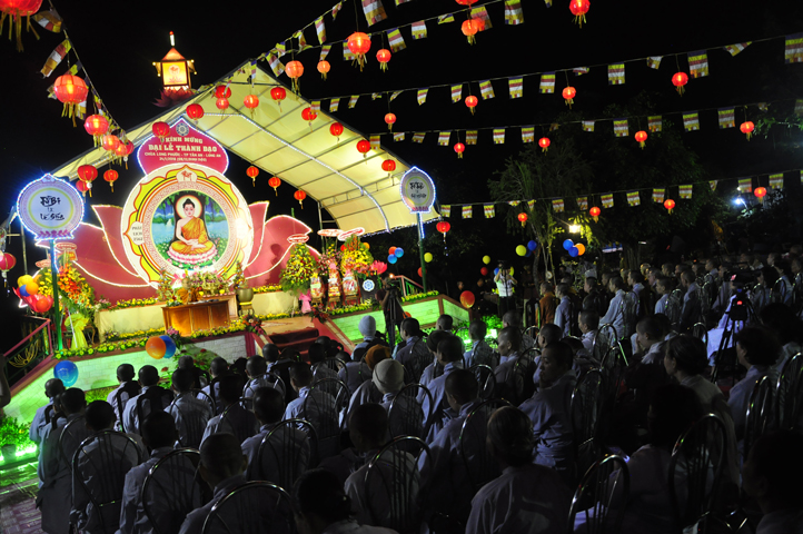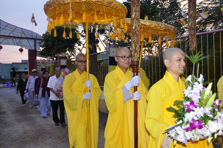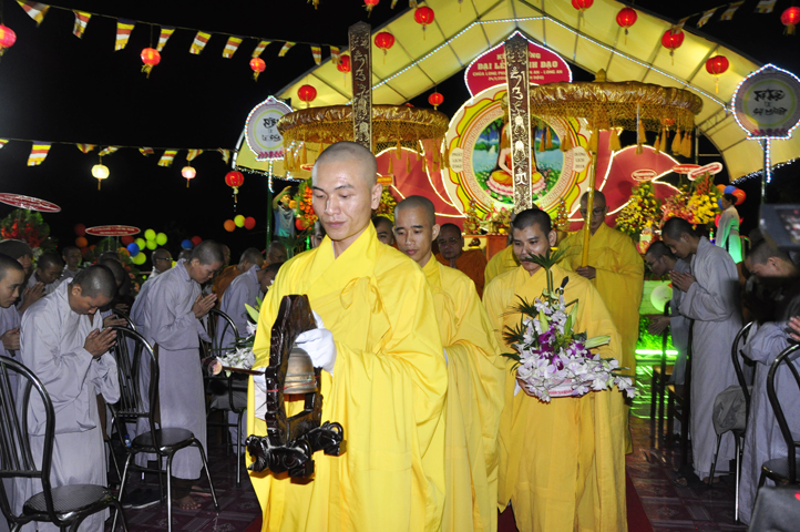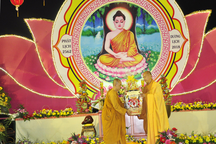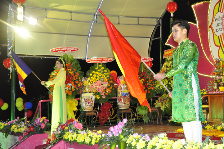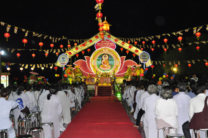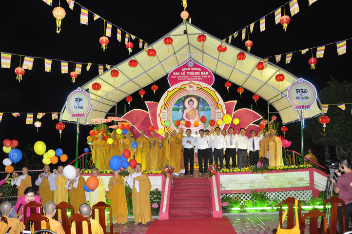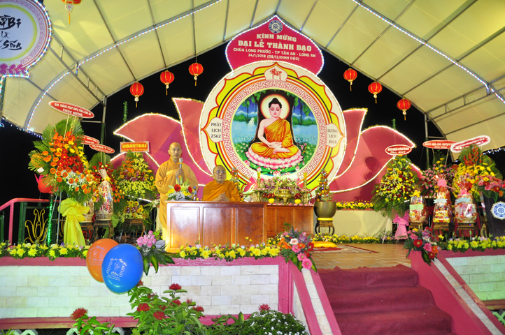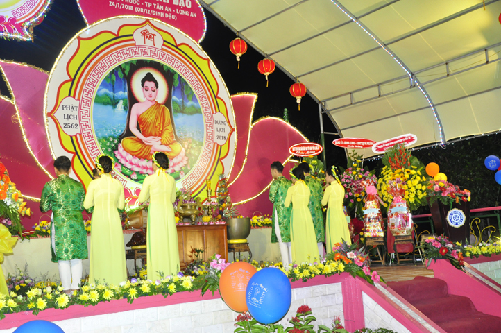 Sau khi pháp thoại kết thúc, đại lễ được tiến hành theo các nghi thức của Phật giáo. Thông qua diễn văn khai mạc của Đại Đức Thích Lệ Trí UV HĐTS TW GHPGVN, Phó BTS, Trưởng Ban giáo dục Tăng Ni GHPGVN tỉnh Long An, phó Ban thường trực BTS GHPGVN Thành phố Tân An Trưởng ban tổ chức, buổi lễ bắt đầu bằng tiết mục ” Dâng Lục Cúng” do các em Thanh thiếu niên Phật tử chùa Long Phước thực hiện, cầu nguyện thế giới hòa bình, quốc dân an lạc với phần thả bong bóng.