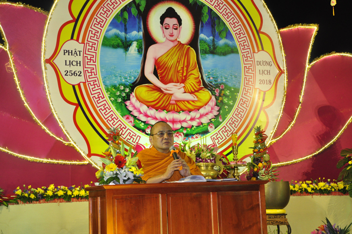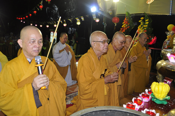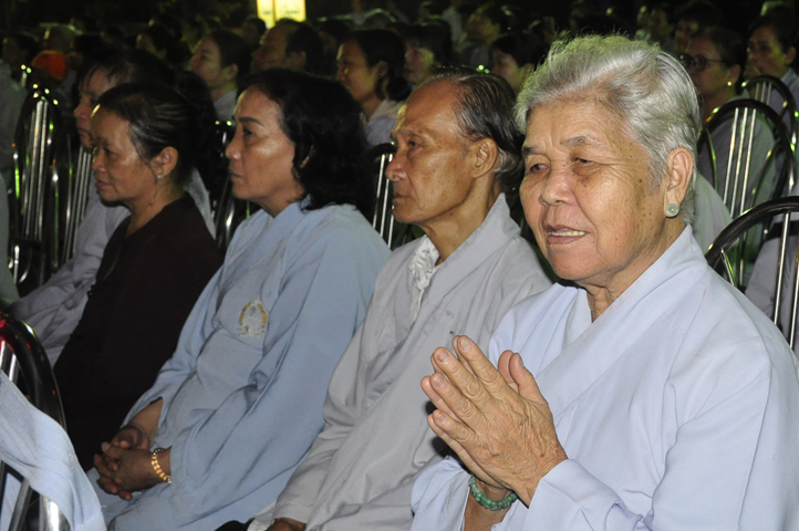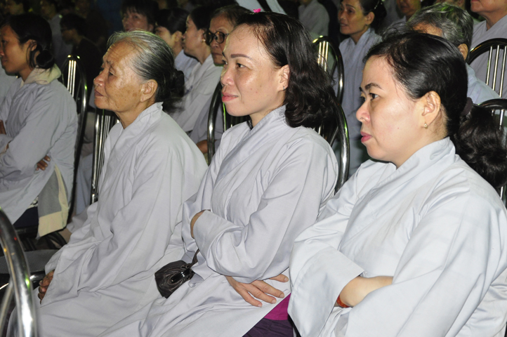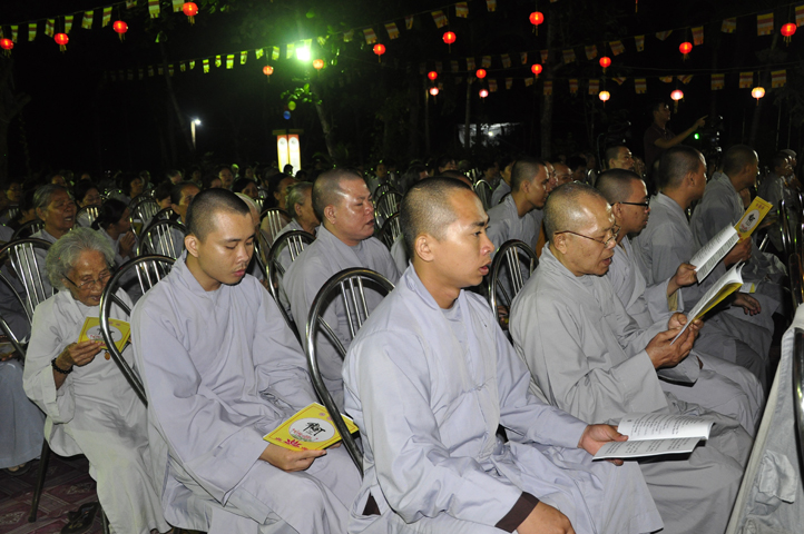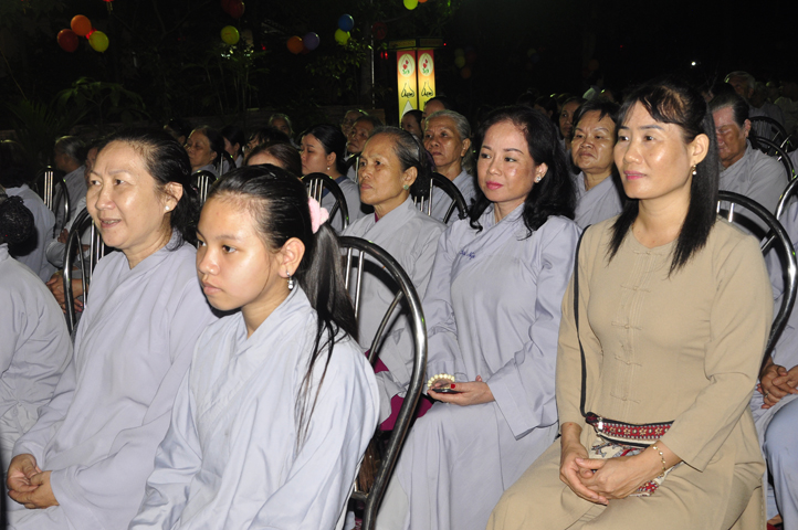 Buổi lễ bắt đầu lúc 18 giờ với thời pháp thoại cao quý của Hòa Thượng Thích Bửu Chánh – Phó Ban Hoằng pháp TW GHPGVN, chủ đề ” Niềm Vui Trong Ánh Đạo”. Hòa thượng đã chia sẽ những niềm vui trong Phật pháp đem lại lợi ích thiết thực cho người hành giả tu tập theo con đường mà Đức Từ Phụ sau khi thành đạo đã giác ngộ và chân lý ấy mãi lưu truyền hơn 2500 năm.