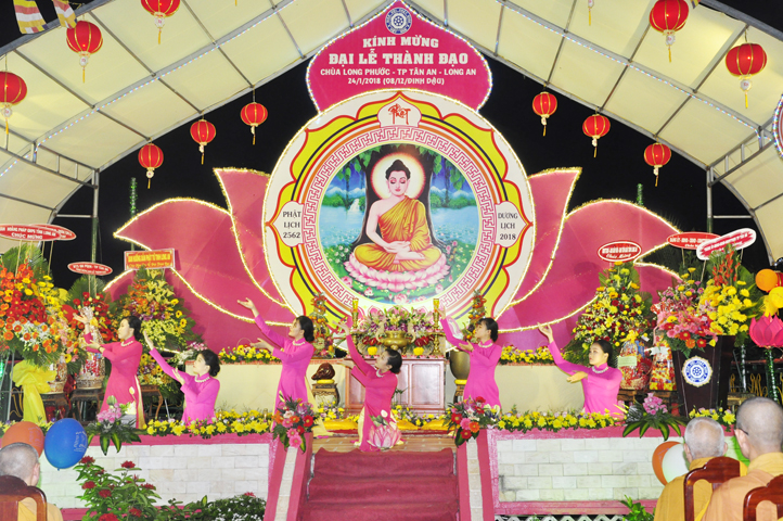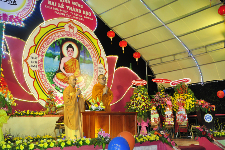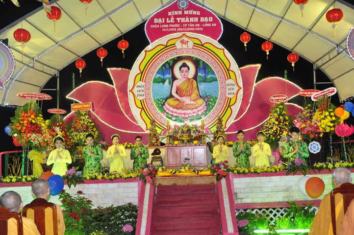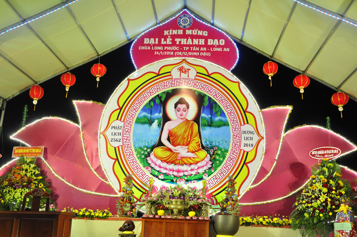 Kỷ niệm ngày Đức Từ Phụ Thích Ca Mâu Ni Phật Thành Đạo, Chùa Long Phước (P.3, Tp Tân An, Long An), đã trang nghiêm tổ chức Đại Lễ Thành Đạo ” Thắp Nến Tuệ Giác”, vào lúc 17 giờ, ngày 24/1/2018 (nhằm ngày 8/12/Đinh Dậu).